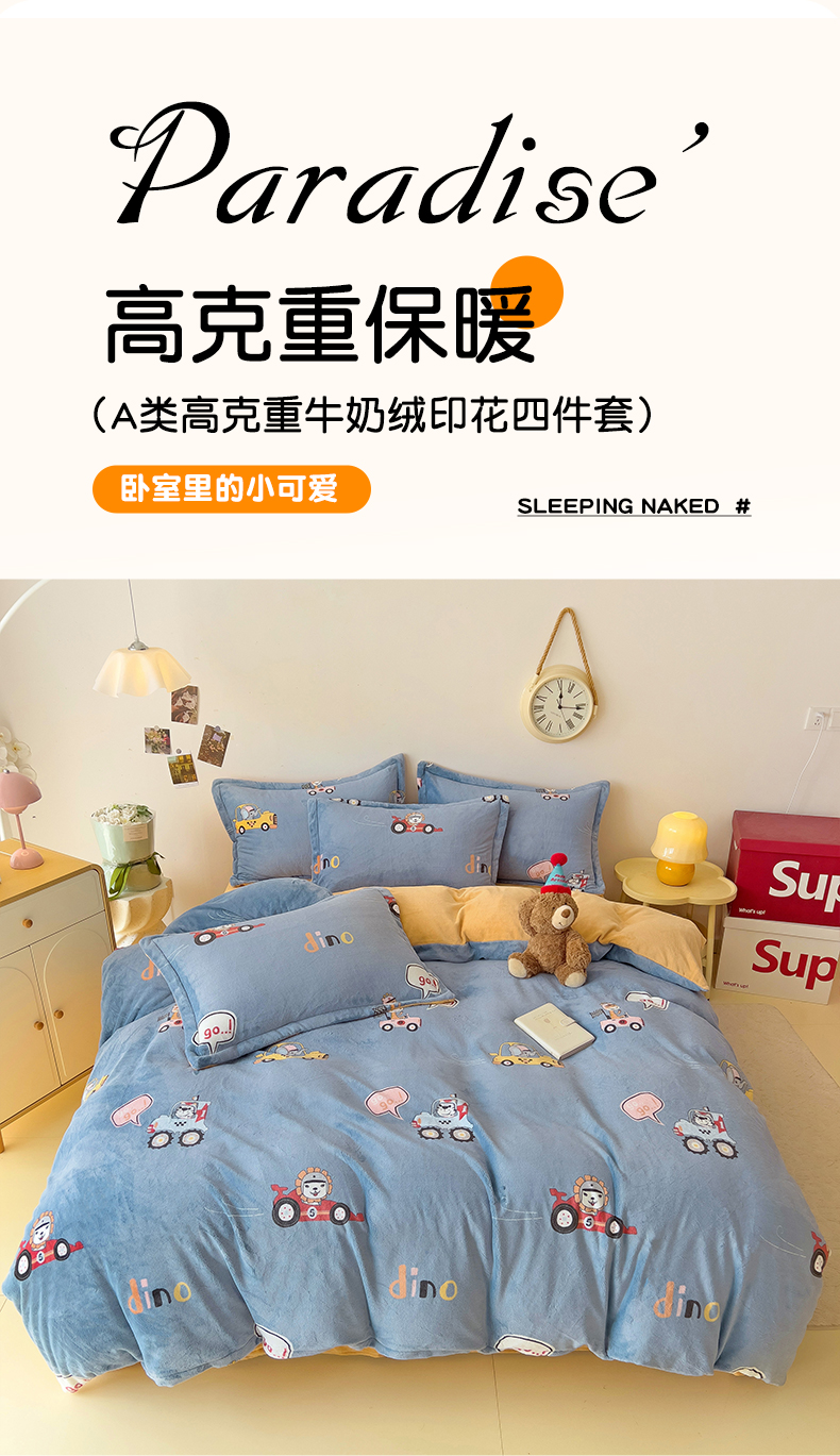 当前位置: 91家纺网 > 商品网购 > 床品套件 > 四件套 > 牛奶绒四件套 > 大柏树 2025新款A类高克重亲肤舒适牛奶绒印花四件套-四件套可定制 精灵乐园-蓝