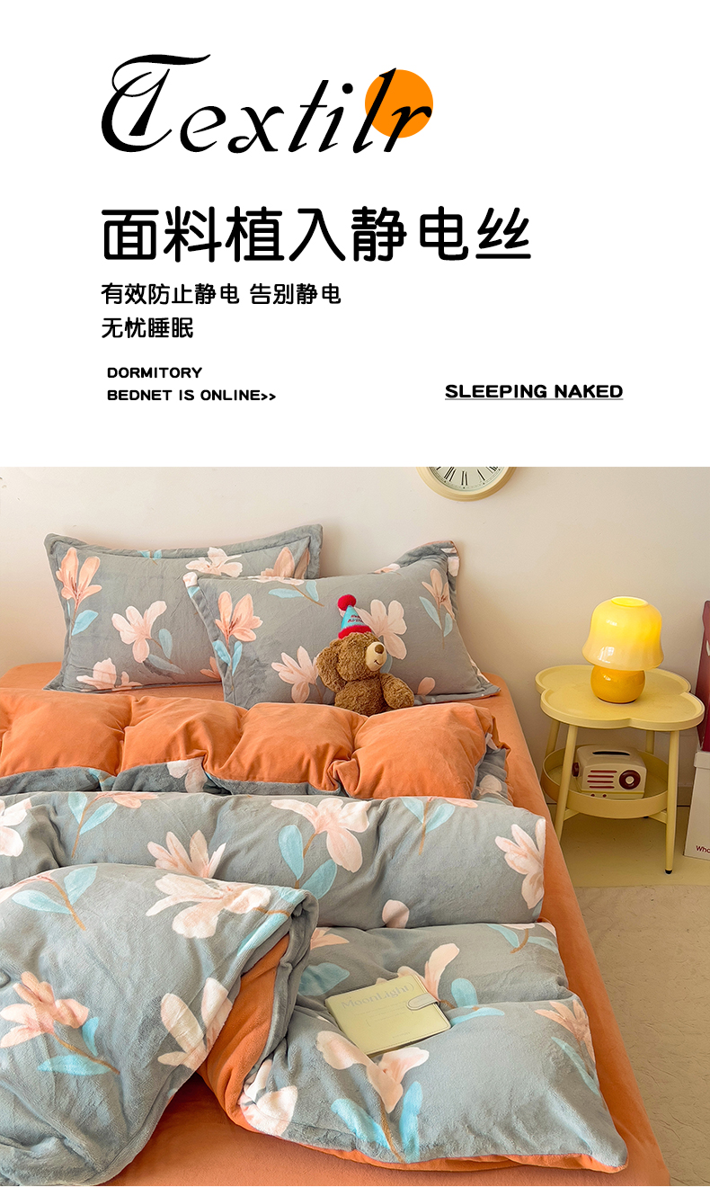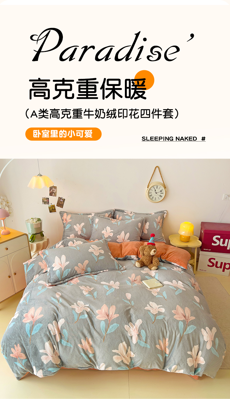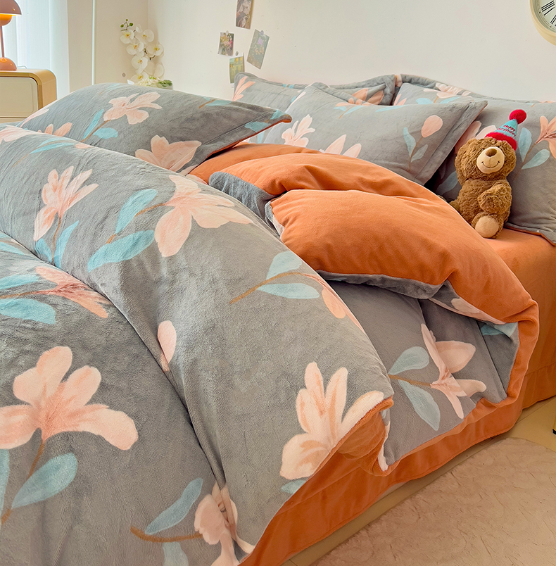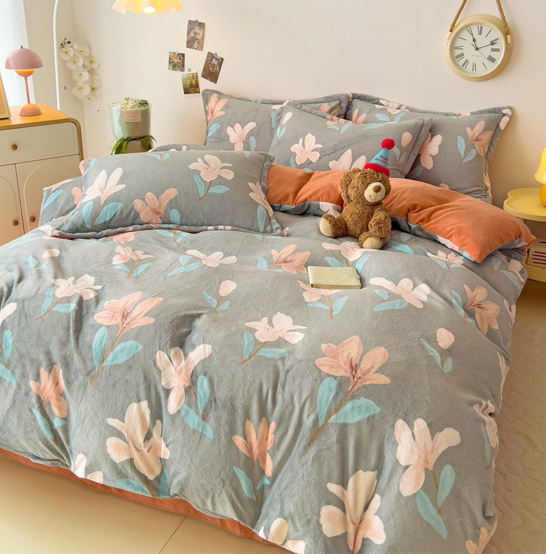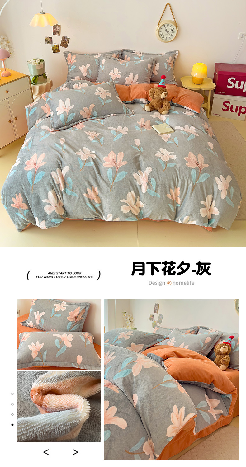 当前位置: 91家纺网 > 商品网购 > 床品套件 > 四件套 > 牛奶绒四件套 > 大柏树 2025新款A类高克重亲肤舒适牛奶绒印花四件套-四件套可定制 月下花夕-灰