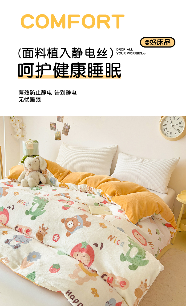 当前位置: 91家纺网 > 商品网购 > 床上用品 > 被套 > 大柏树 2025新款A类高克重亲肤舒适牛奶绒印花四件套-单被套可定制 布拉乐园