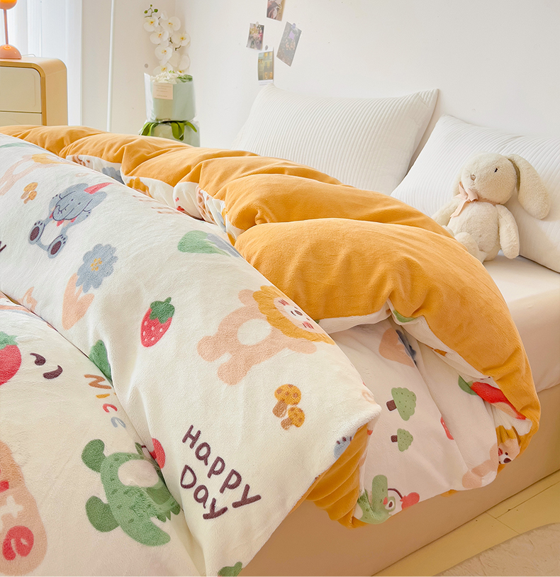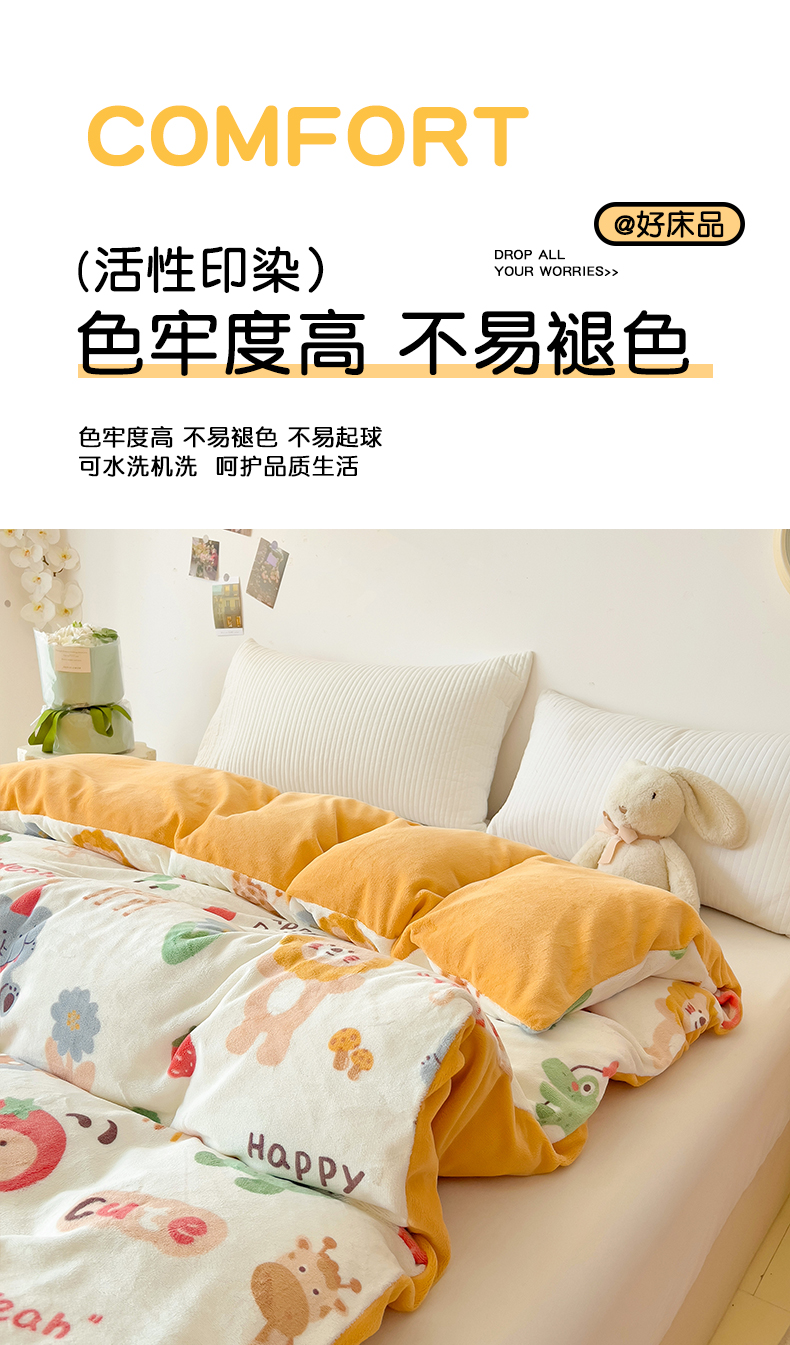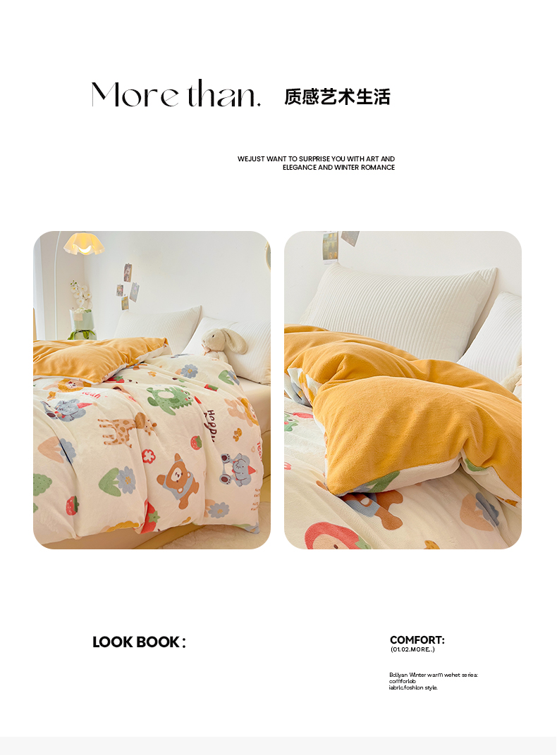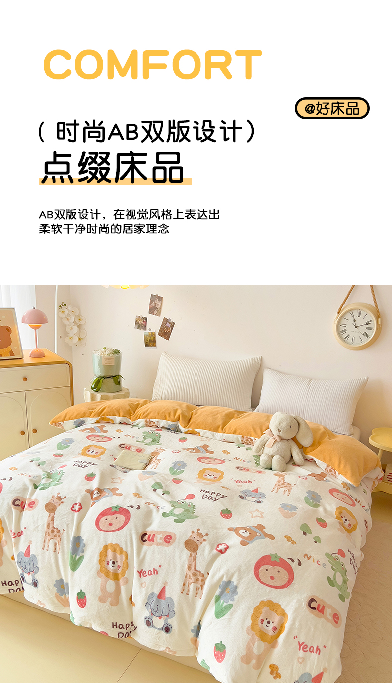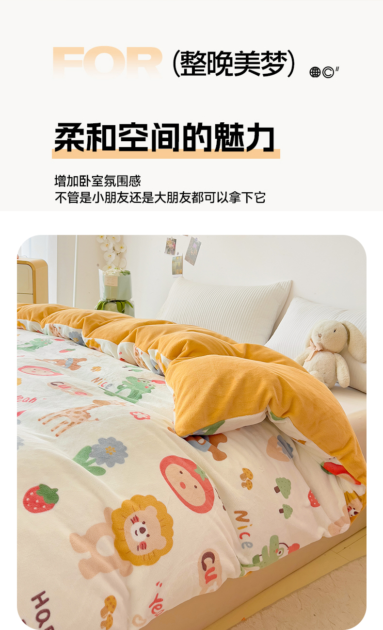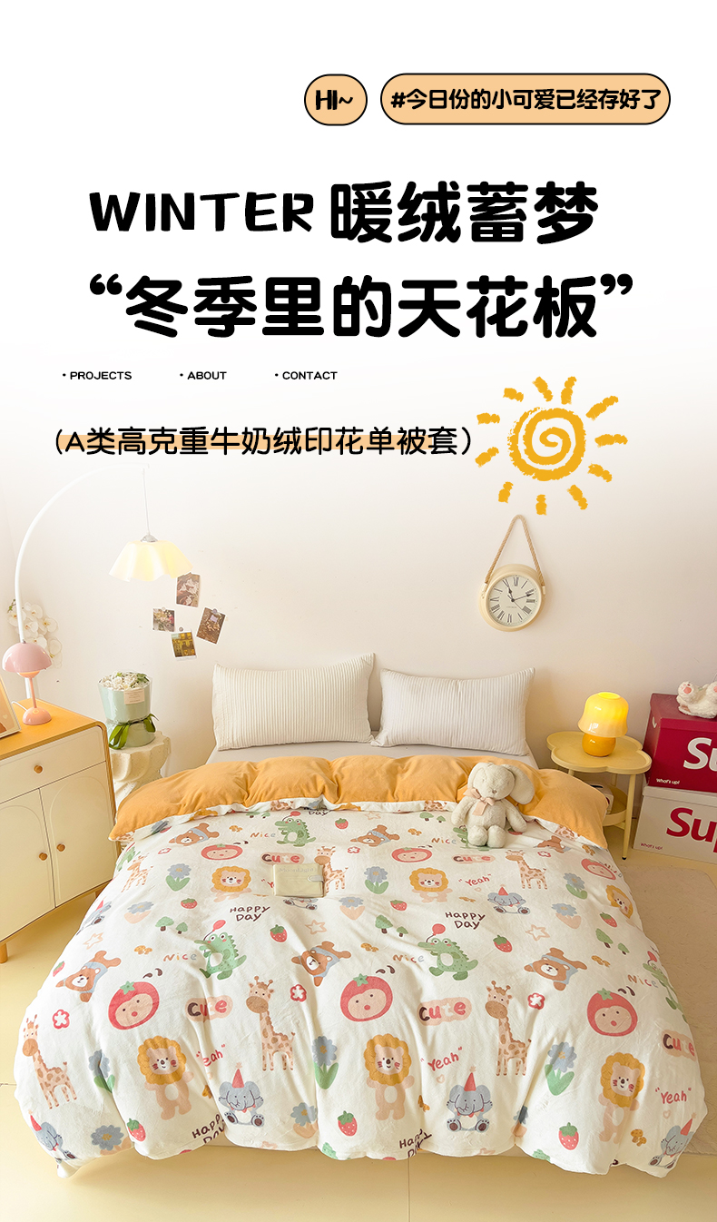 • 91家纺网 家纺一手货源 找家纺 大柏树 2025新款A类高克重亲肤舒适牛奶绒印花四件套-单被套可定制 布拉乐园