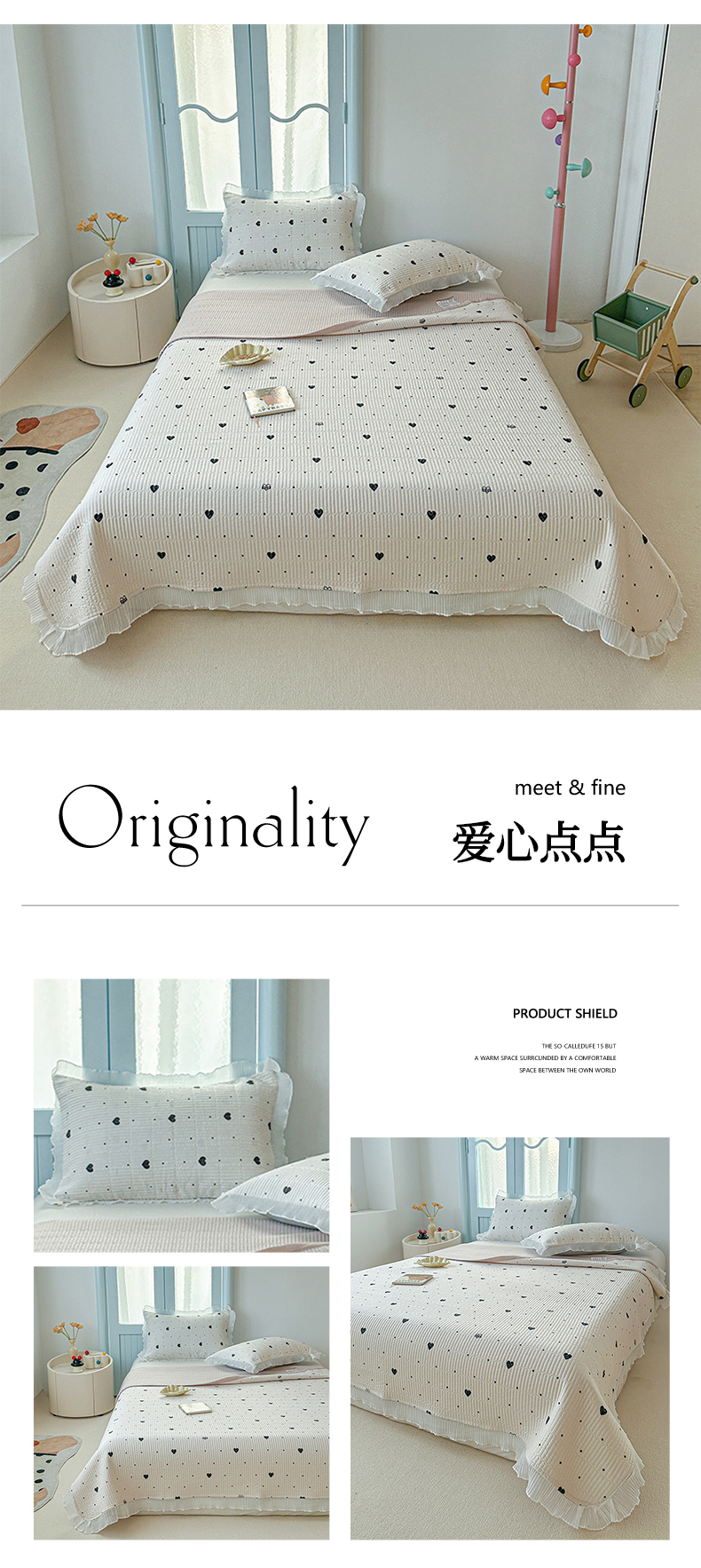 商品名称:源舜家纺 2025新款水洗双层纱床盖 爱心点点