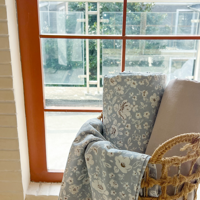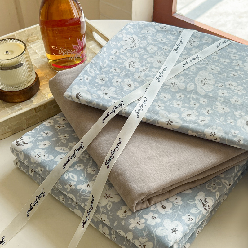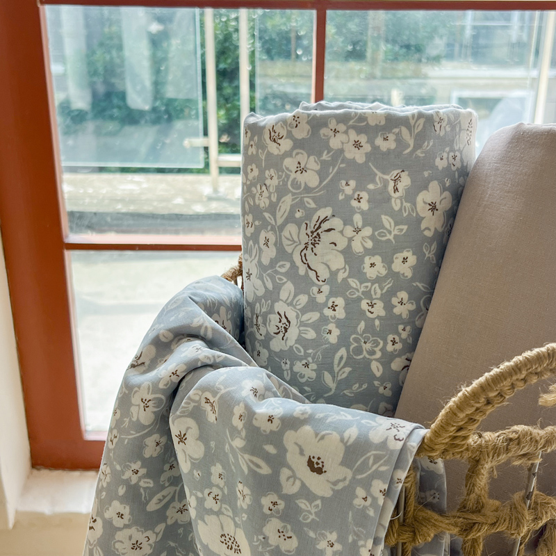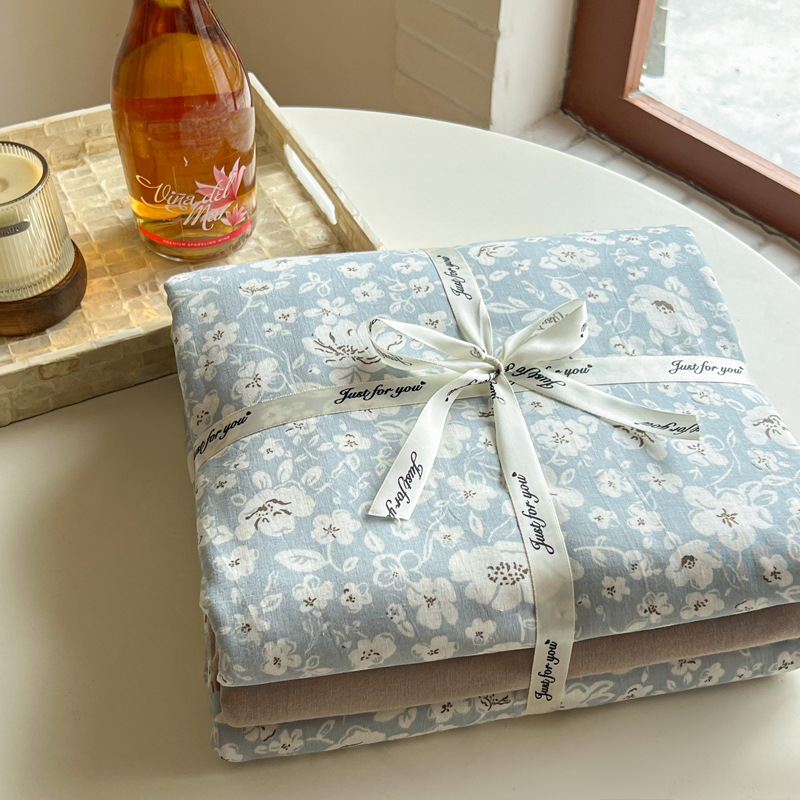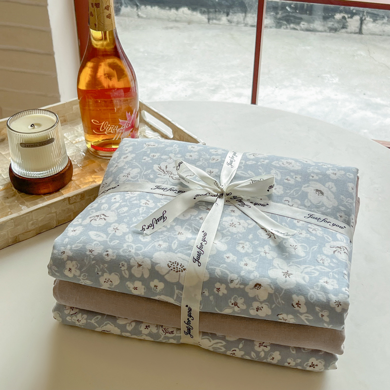 商品名称:一比一家纺 2025新款全棉母婴级抗菌有氧全棉双层纱亲肤全棉小清新印花三件套四件套 木槿花-兰