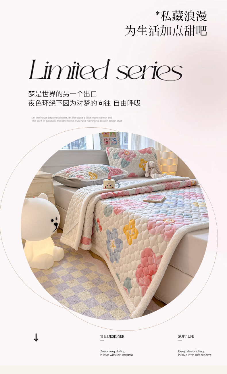 当前位置: 91家纺网 > 商品网购 > 床品套件 > 四件套 > 其它四件套 > 慕尚家纺 2025牛奶绒床盖床褥被套三件套四件套 床垫-菲娜