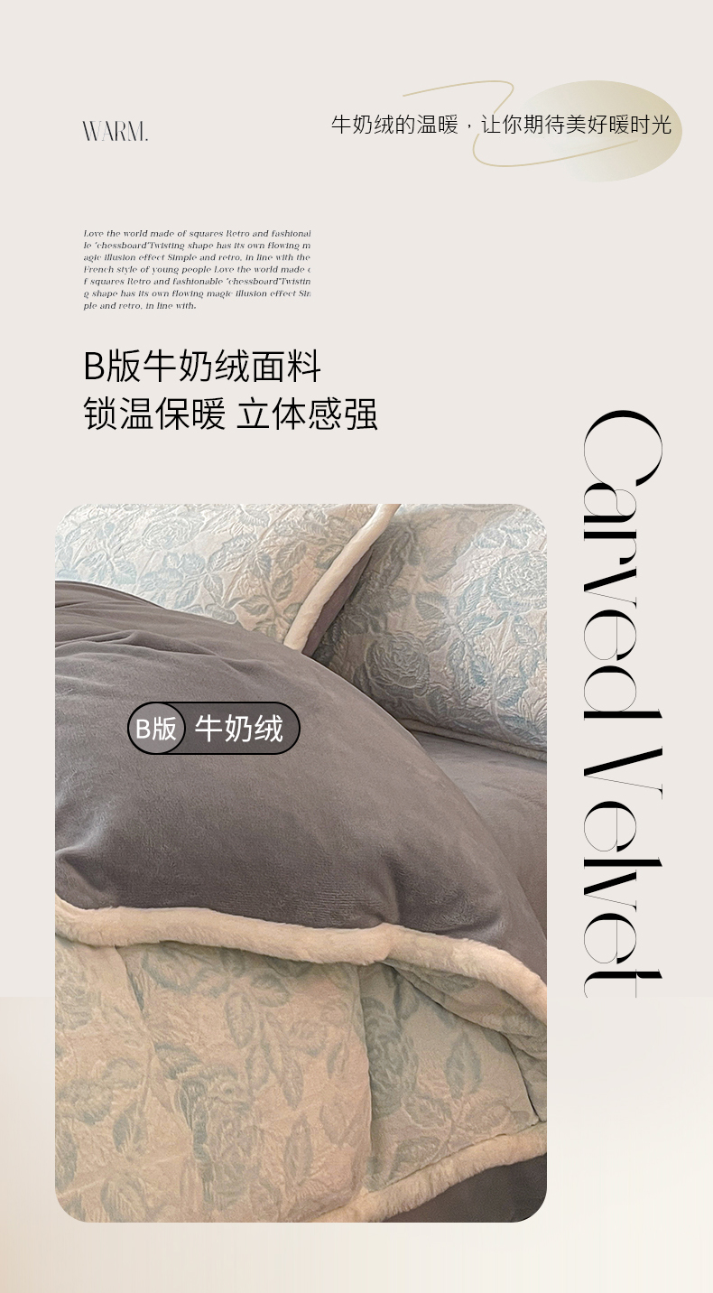 (总)极简 2024新款加厚保暖高克重立体雕花牛奶绒四件套,艾琳-咖,蝶舞-粉,蝶舞-绿,花溪-咖,麦穗-灰,麦穗-咖,麦穗-绿,漫可-粉,玫瑰-灰,玫瑰-咖,玫瑰-蓝,米莱-蝶恋粉,觅园-灰,薇薇安-粉,薇薇安-灰