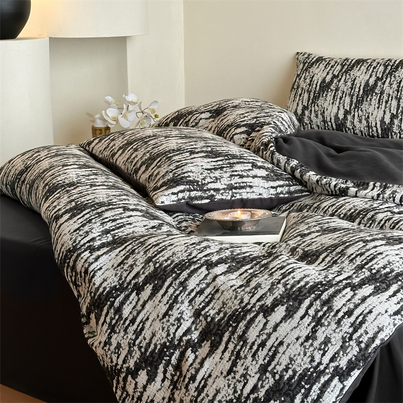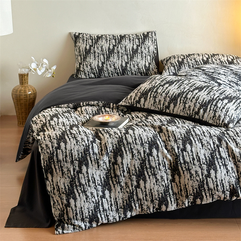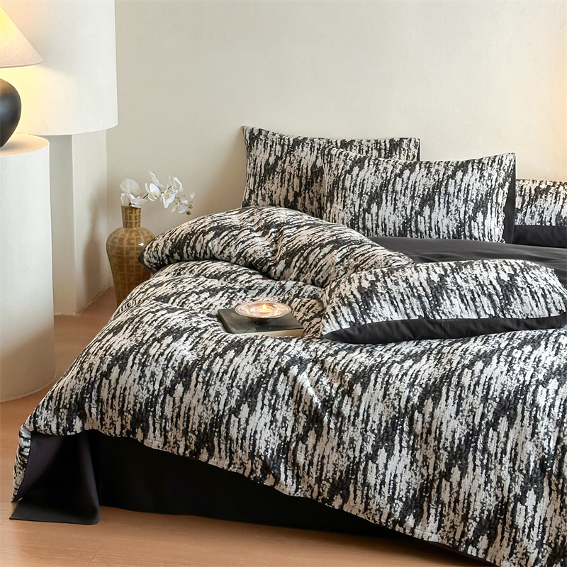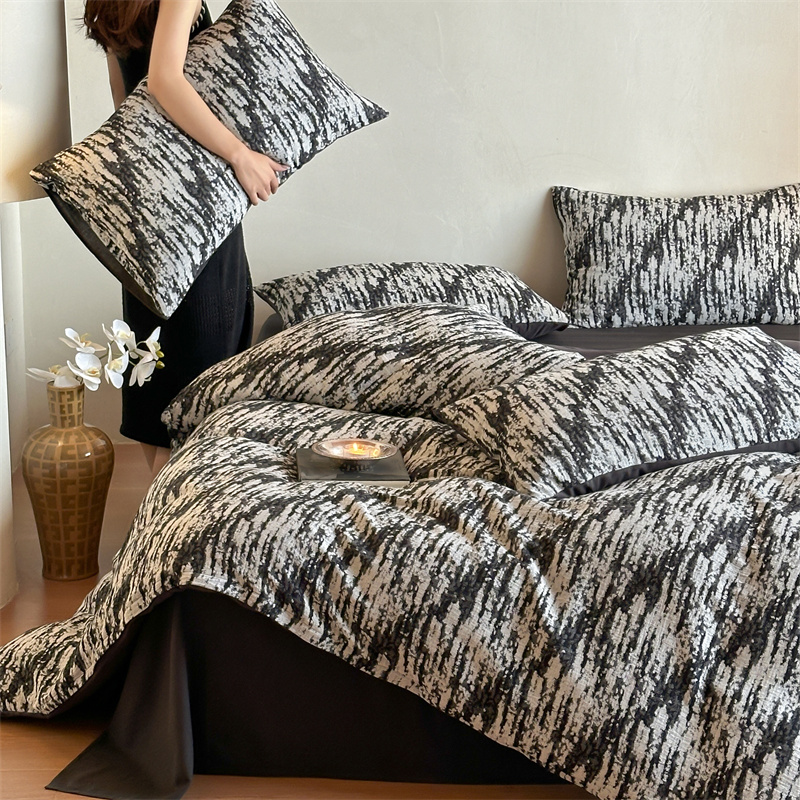 梦享生活家居 2024新款双层纱黑灰提花系列四件套 清墨