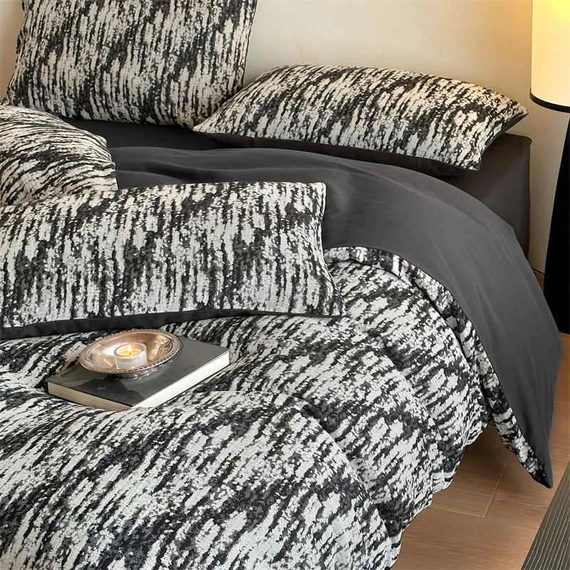 (总)梦享生活家居 2025新款全棉肌理纹提花四件套,灰黑色