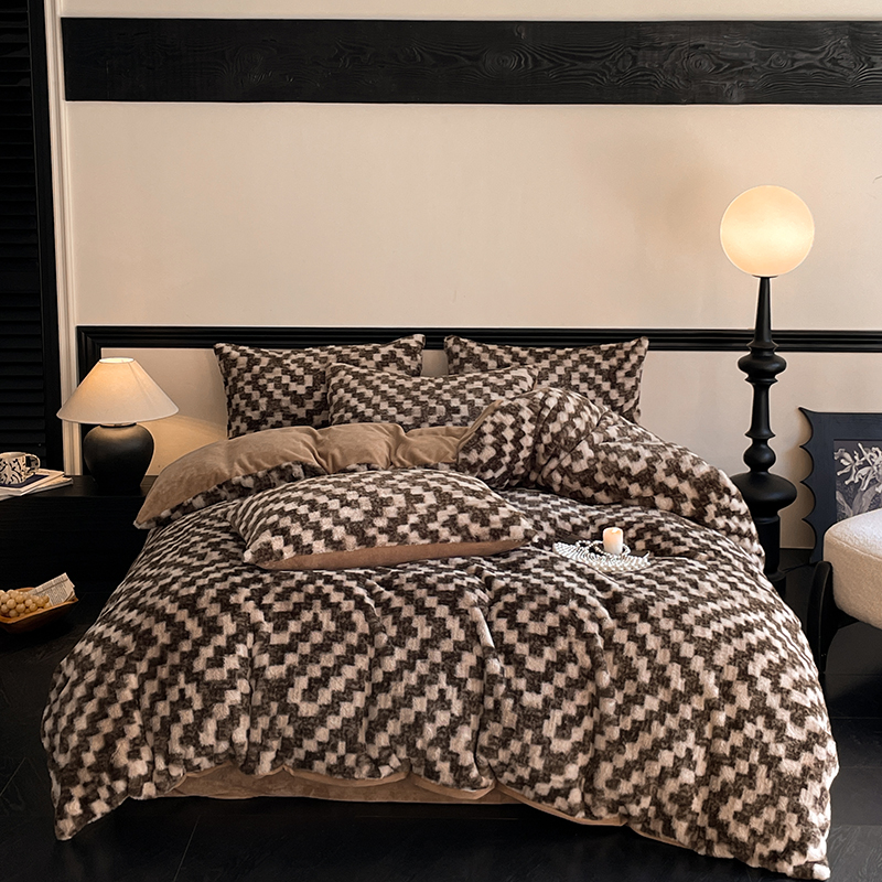 798家纺 2025新款兔毛印花四件套美拉德系列 美拉德-连枝咖