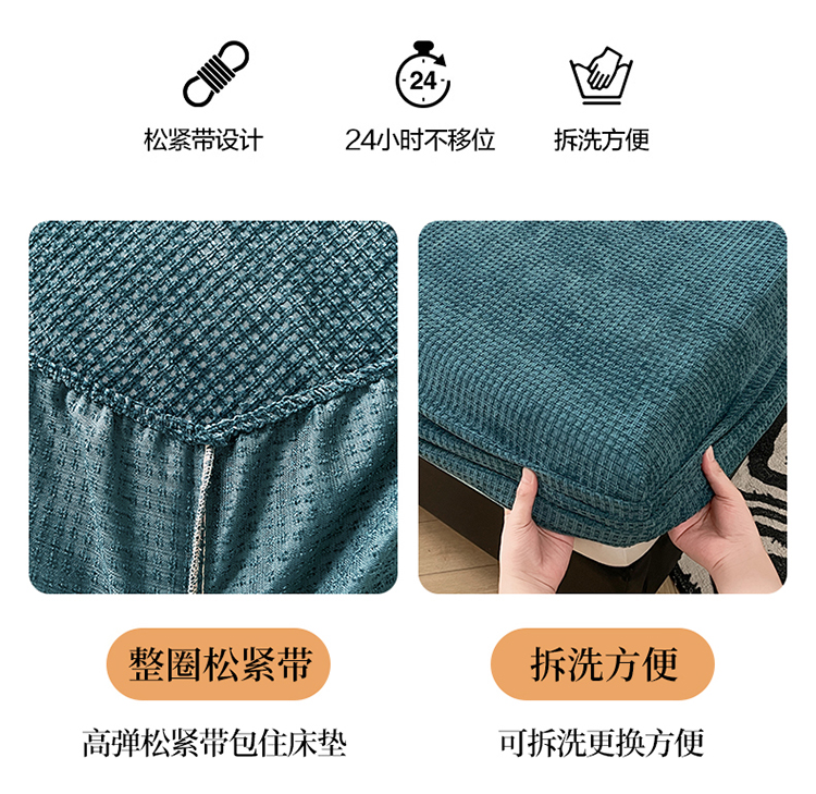 (总)伊人坊 2025新款A类全棉水洗棉六面全包夹棉床笠床垫保护套拉链床笠,云朵白,浅米驼,青果绿,时尚灰,天空蓝,樱花粉
