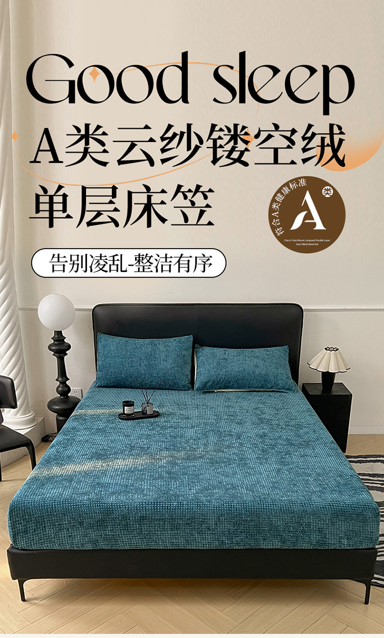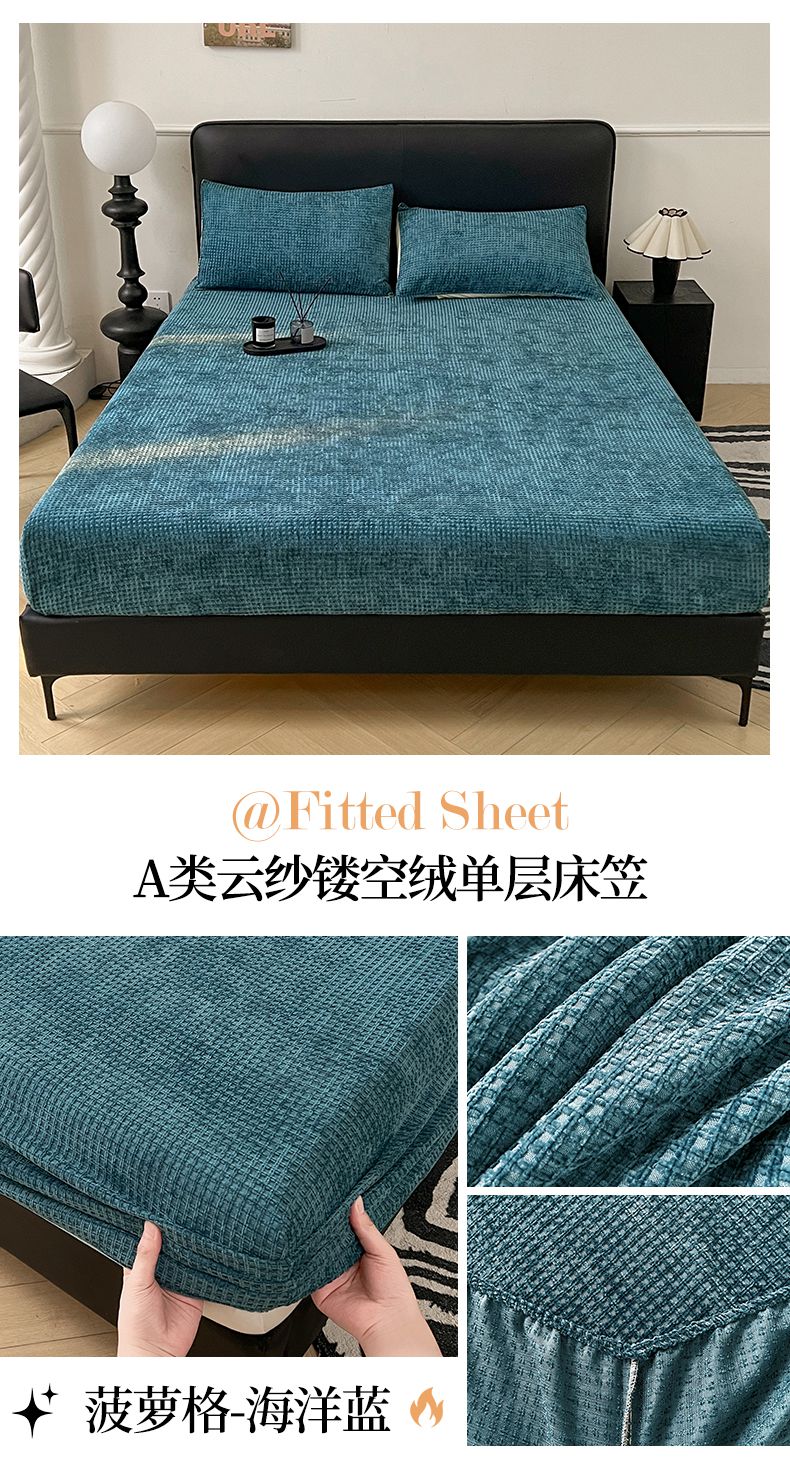 商品名称:2024新款A类云纱镂空绒床笠-菠萝格 菠萝格-海洋蓝