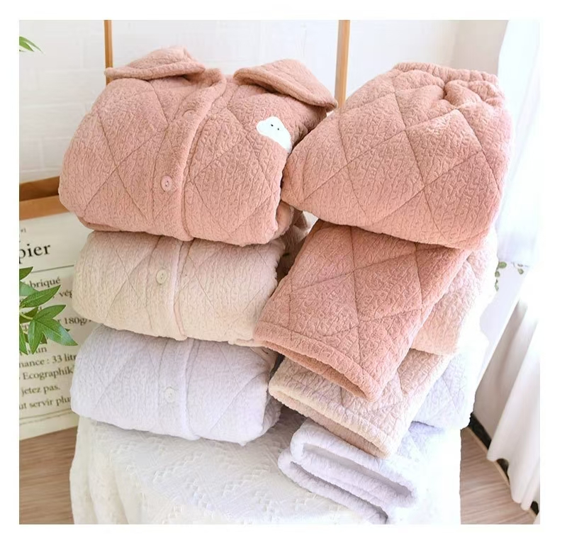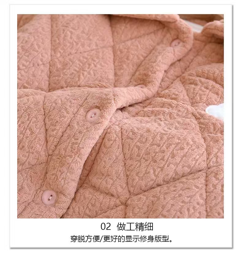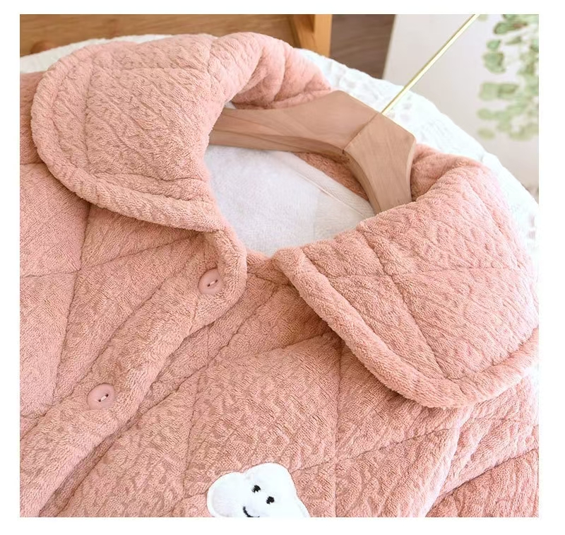 (总)洛兰沙家居馆 2024新款清新睡衣女秋冬三层夹棉珊瑚绒加厚保暖两件套女士可外穿加绒家居服,粉色,灰色,白色,玉色