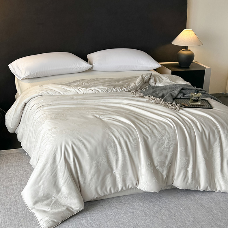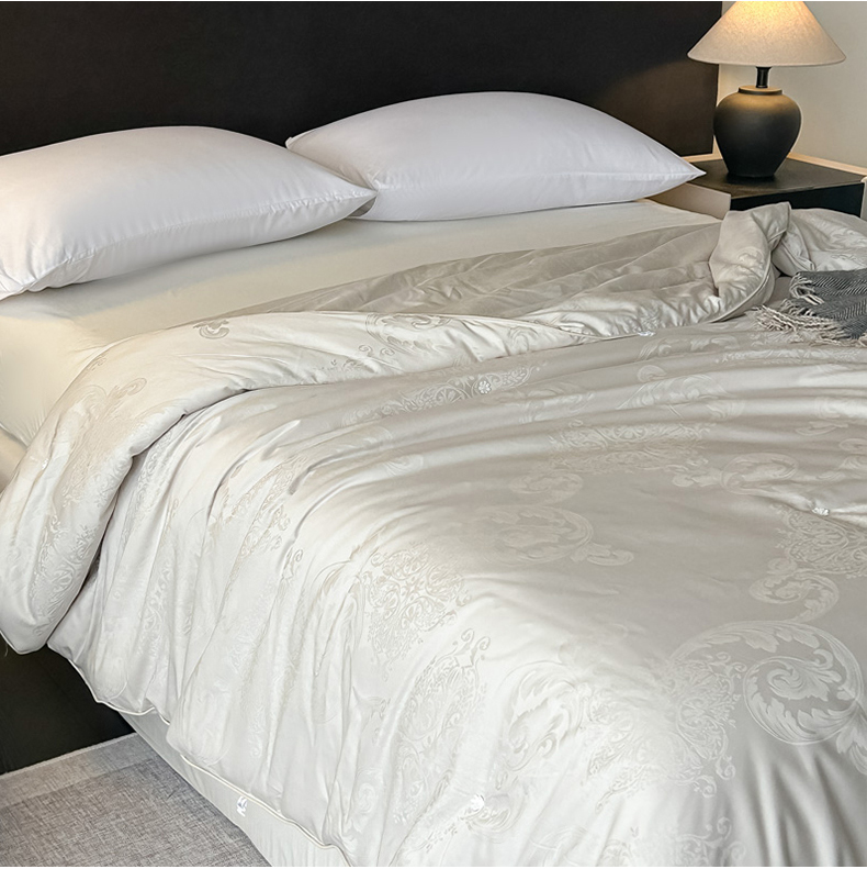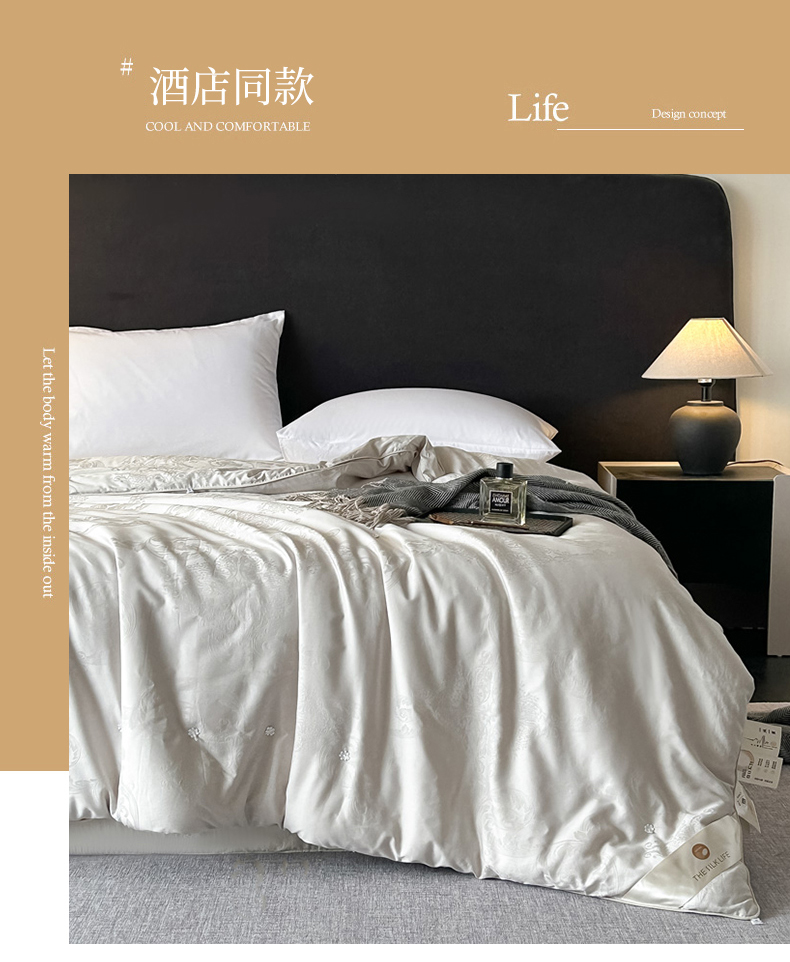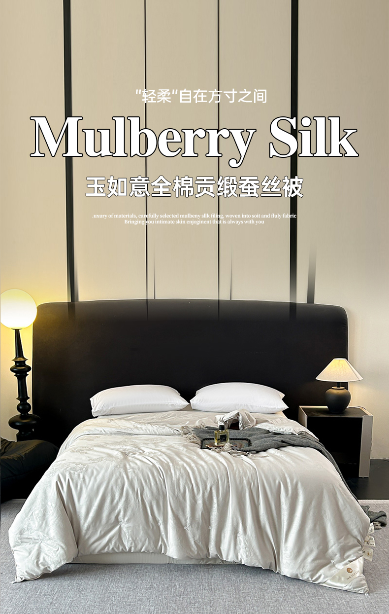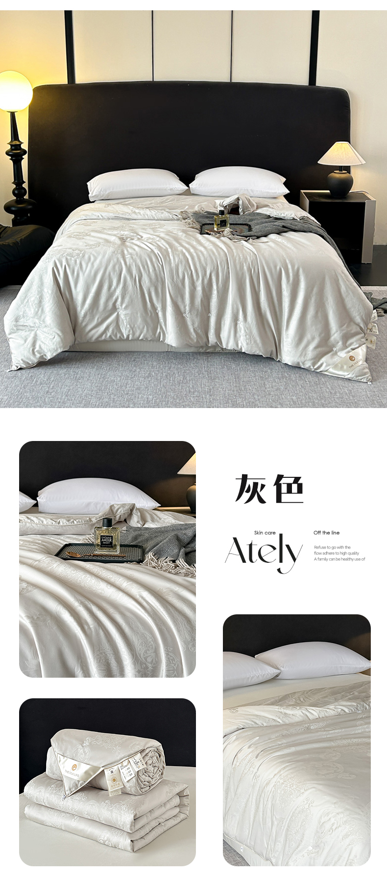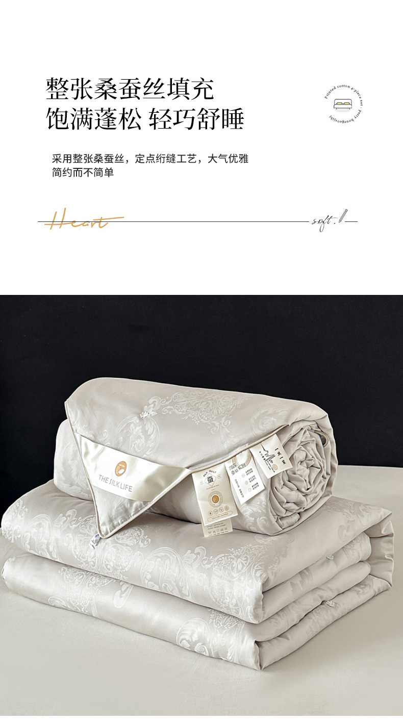 商品名称:龙图家纺 2024新款80支全棉贡缎蚕丝被-玉如意 玉如意-灰色