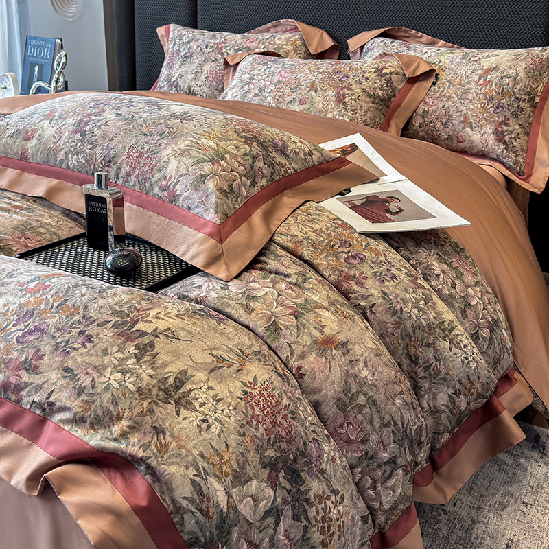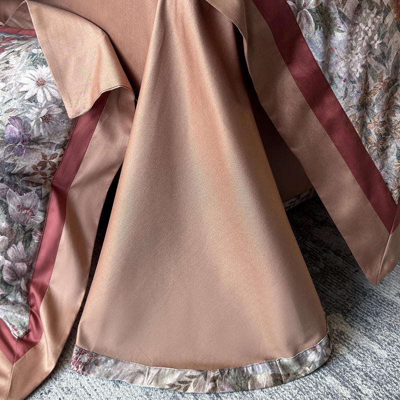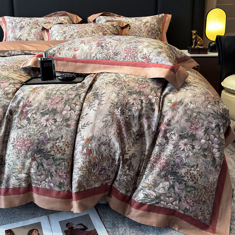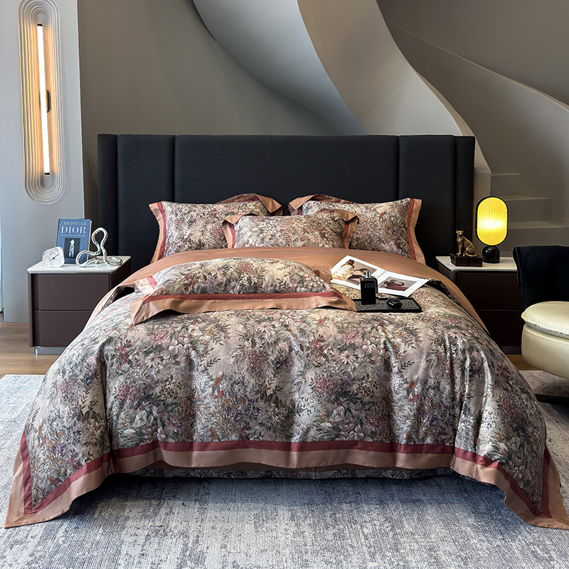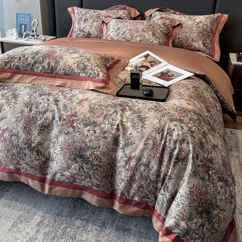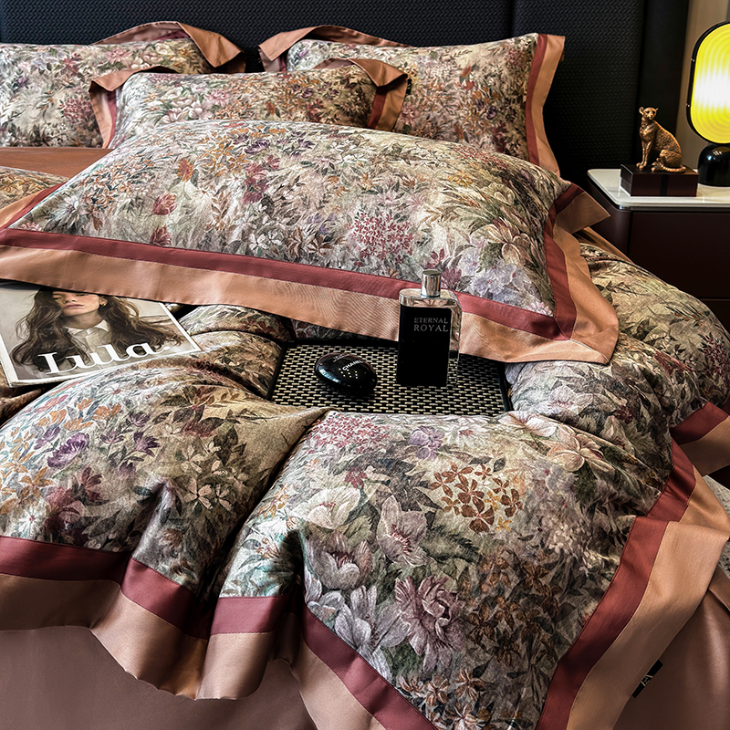 东方名伶 2025新款莱赛尔兰精天丝棉数码印花宽边四件套 深绯秘境,深绯秘境