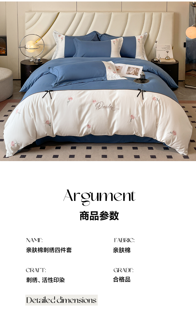商品名称:遇见家居生活馆 2024新款亲肤棉刺绣四件套-蝶恋花 蝶恋花-宾利蓝