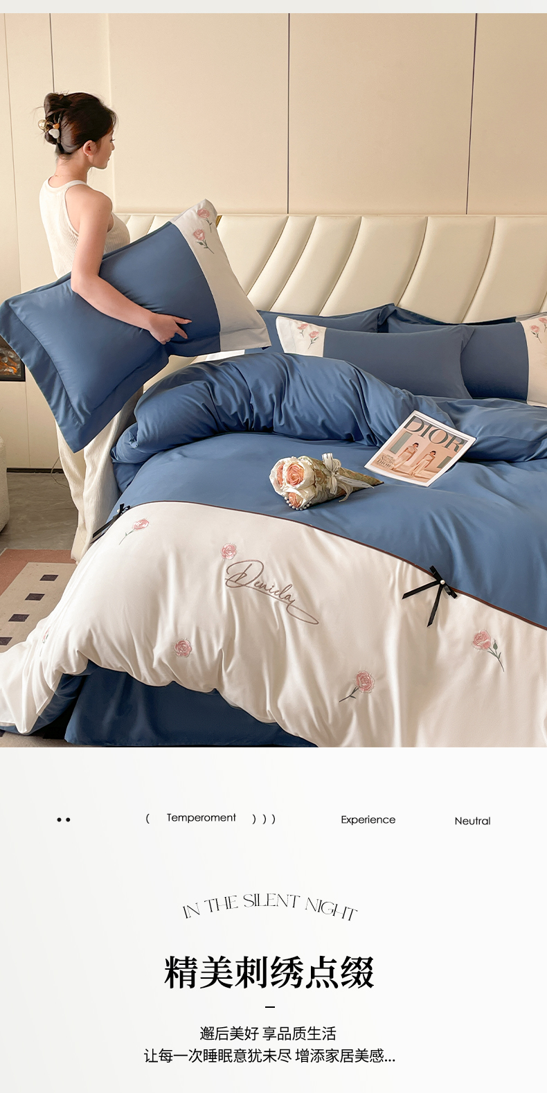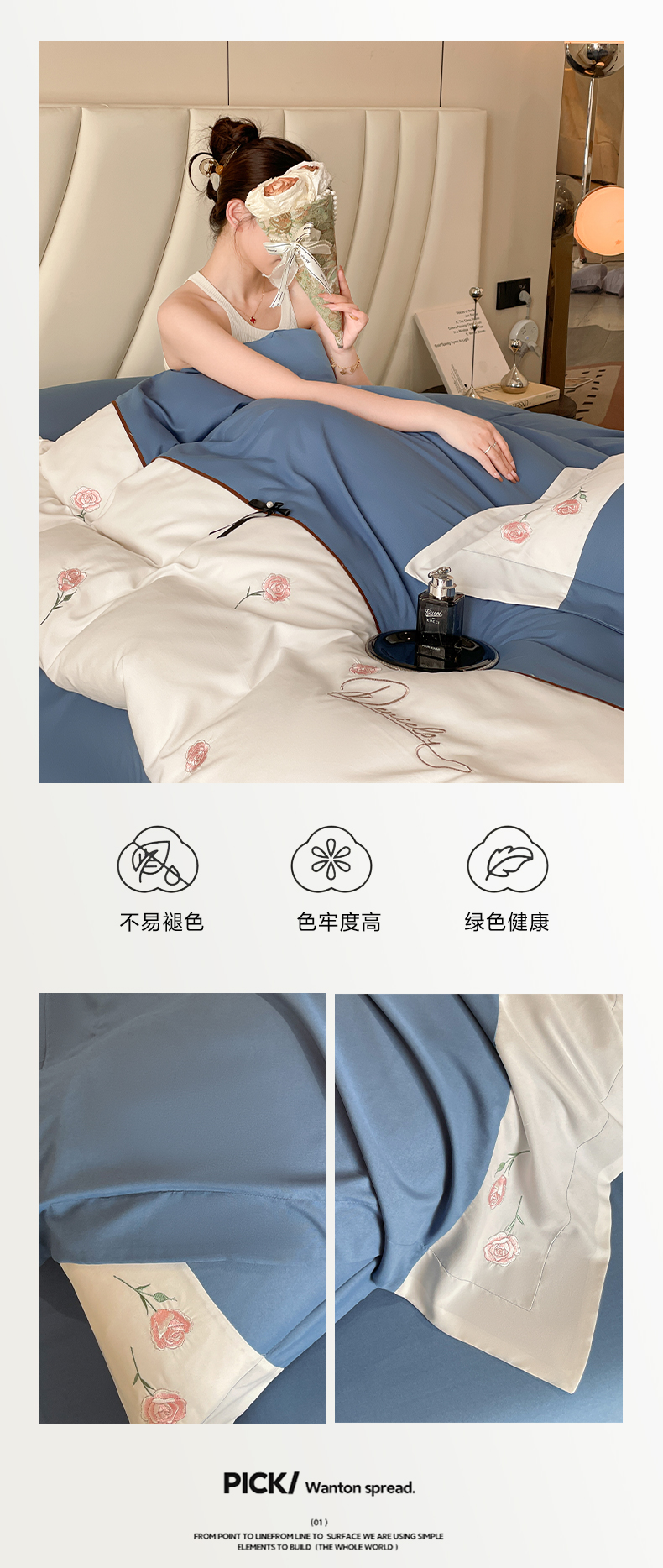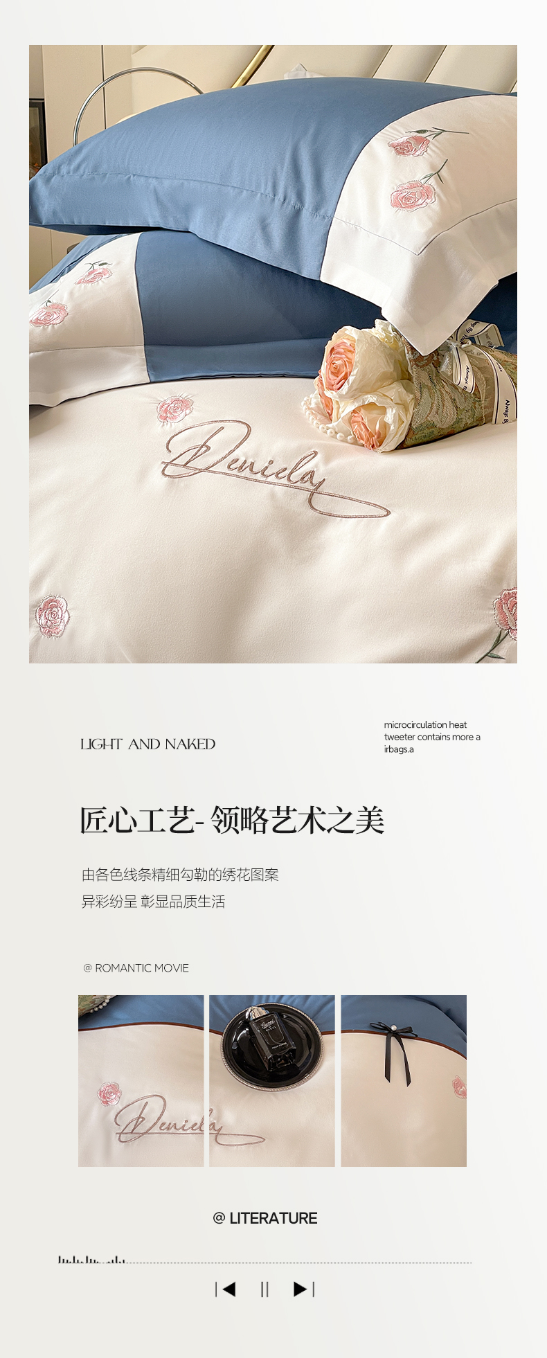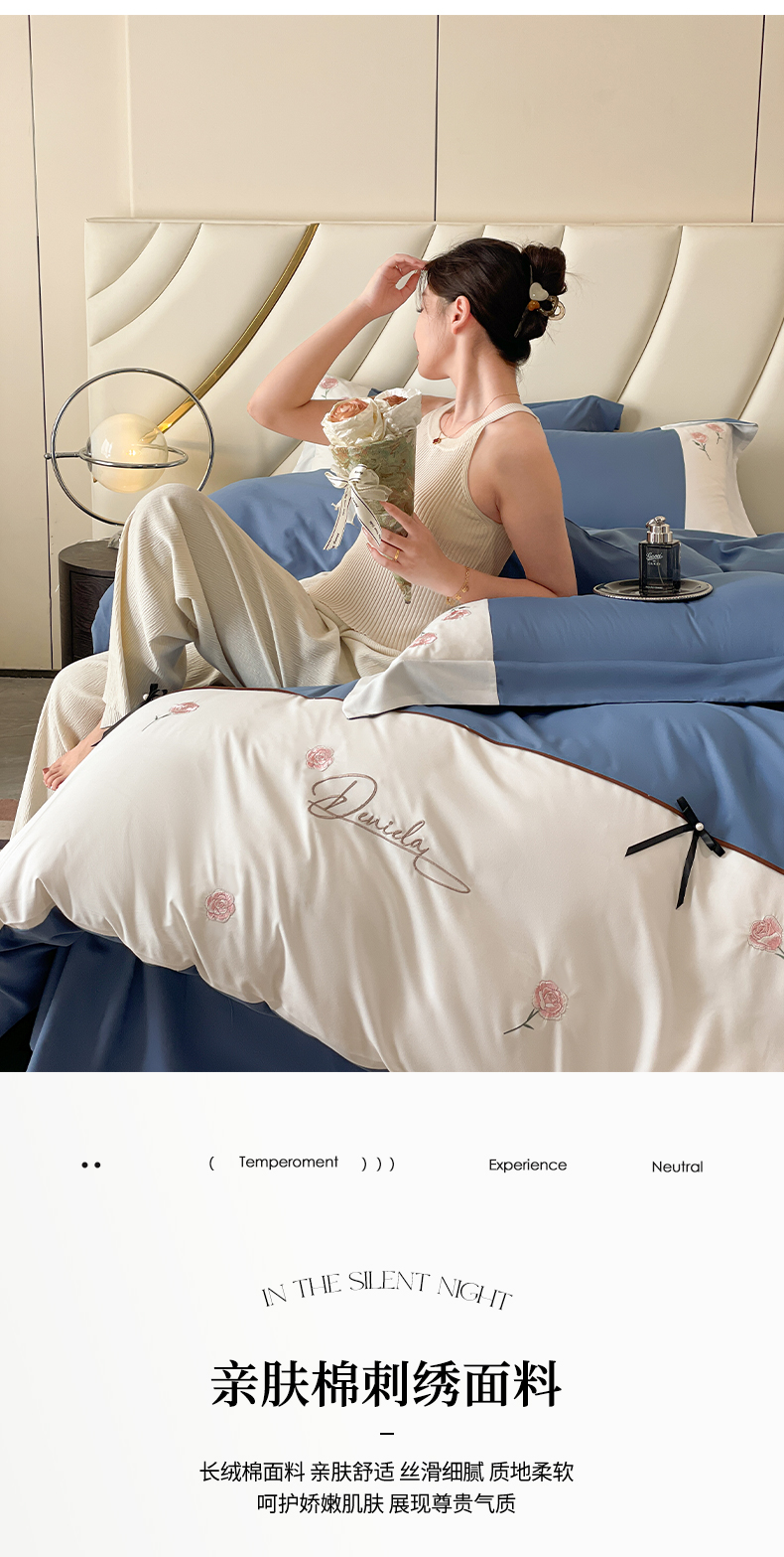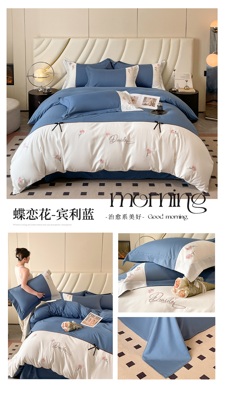 遇见家居生活馆 2024新款亲肤棉刺绣四件套-蝶恋花 蝶恋花-宾利蓝
