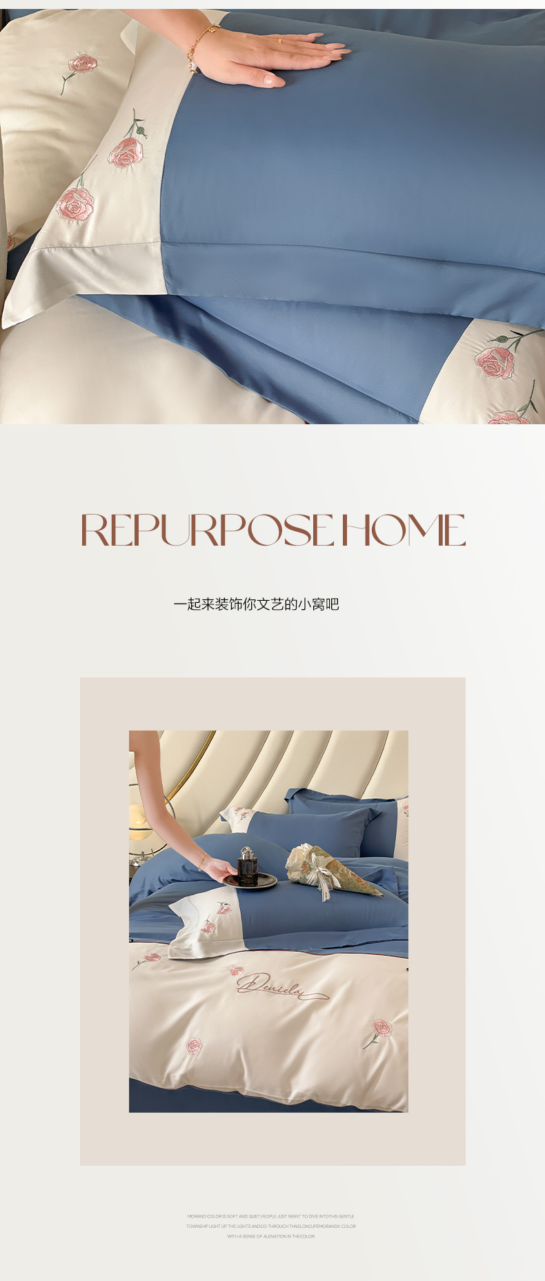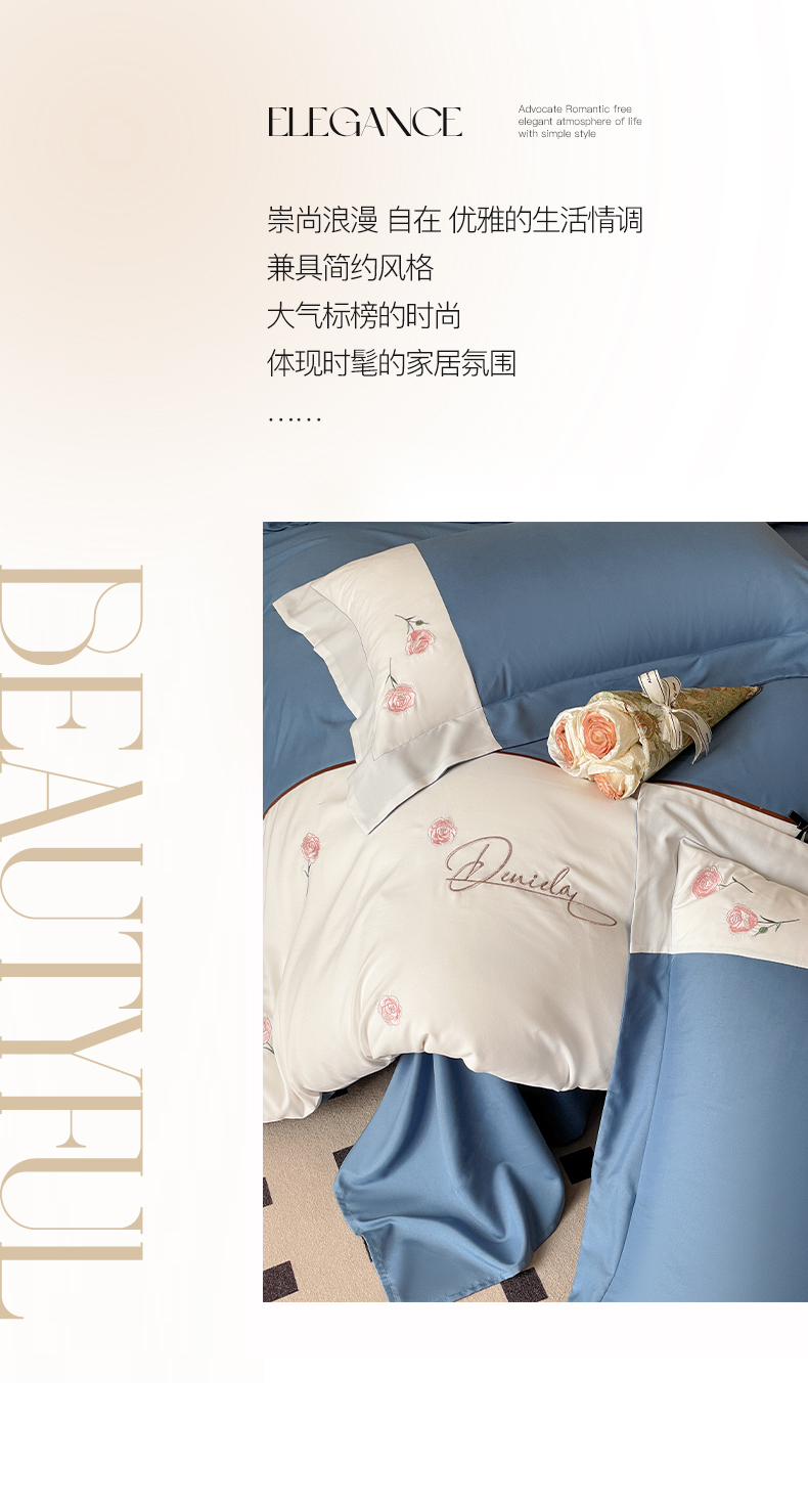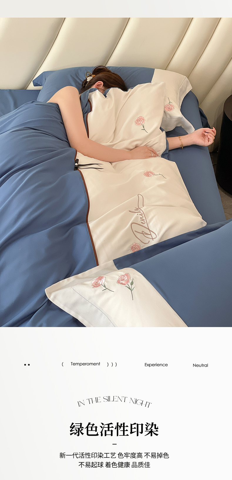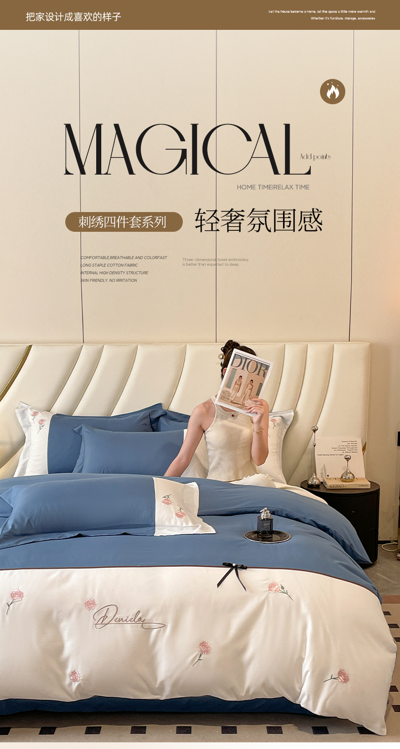 遇见家居生活馆 2024新款亲肤棉刺绣四件套-蝶恋花 蝶恋花-宾利蓝
