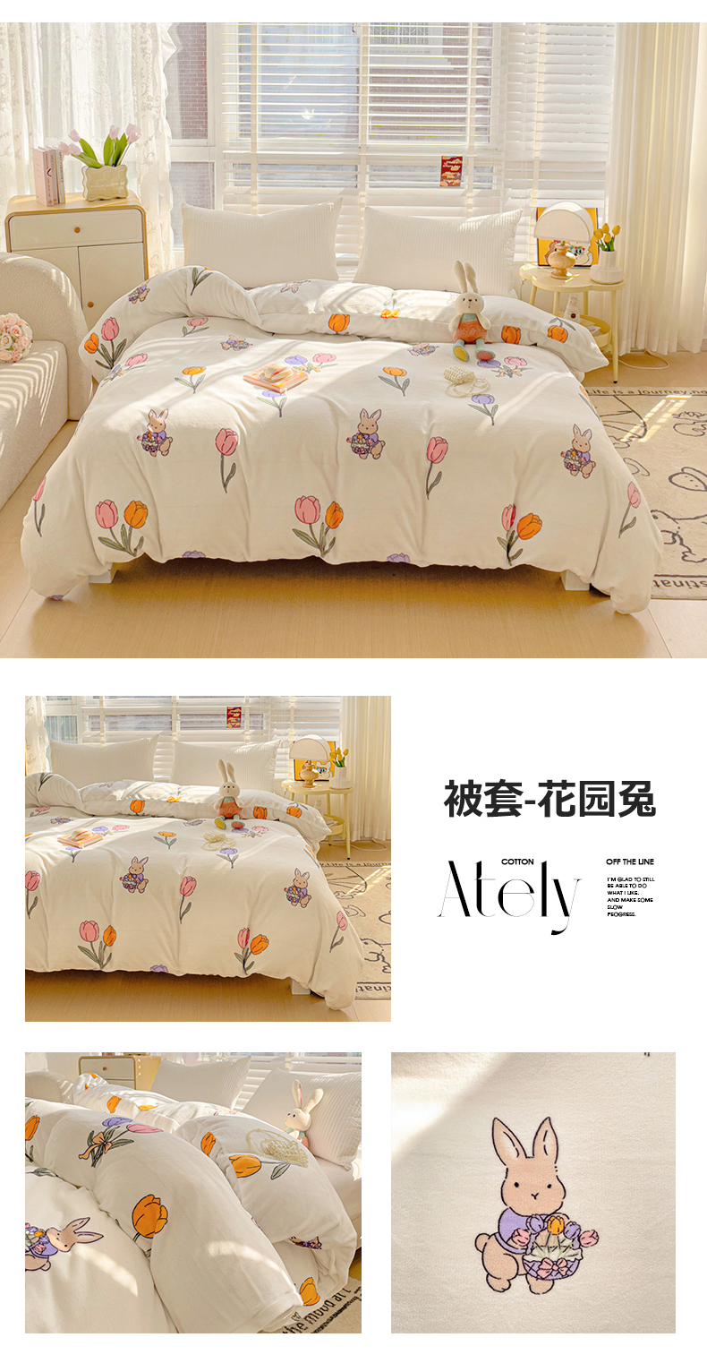 雅萱家纺 2024新款牛奶绒单被套 被套-花园兔