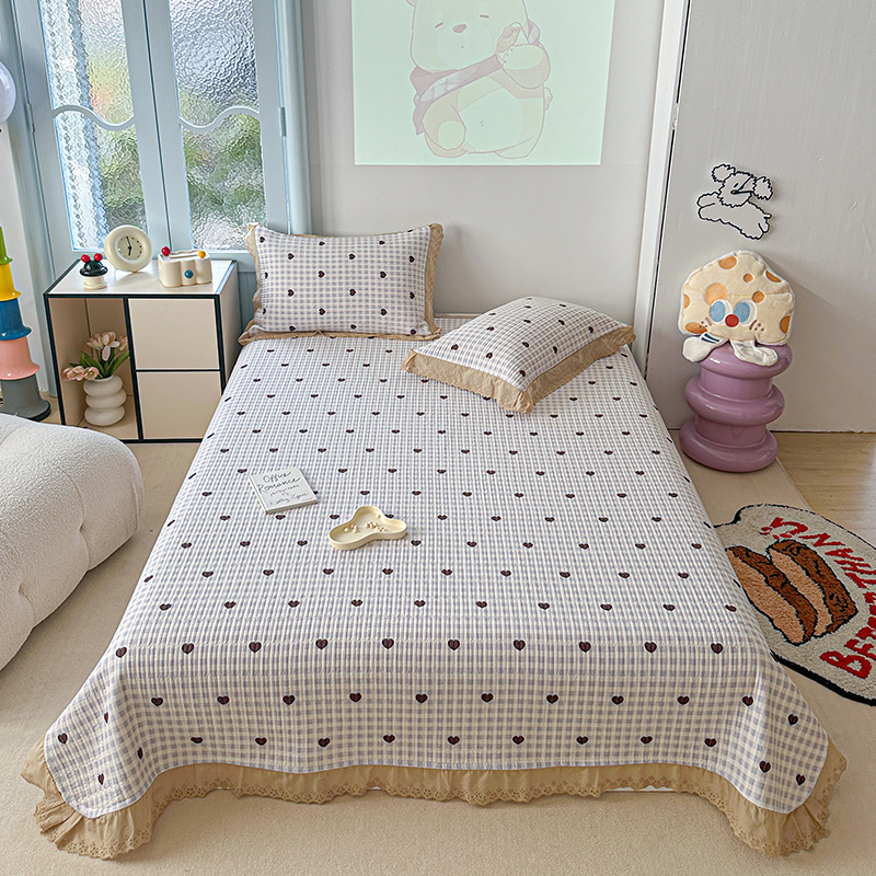 商品名称:源舜 2025新款云感皱皱纱法式床盖三件套 爱心泡泡