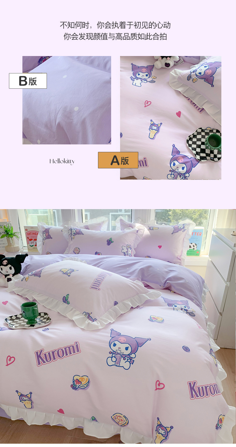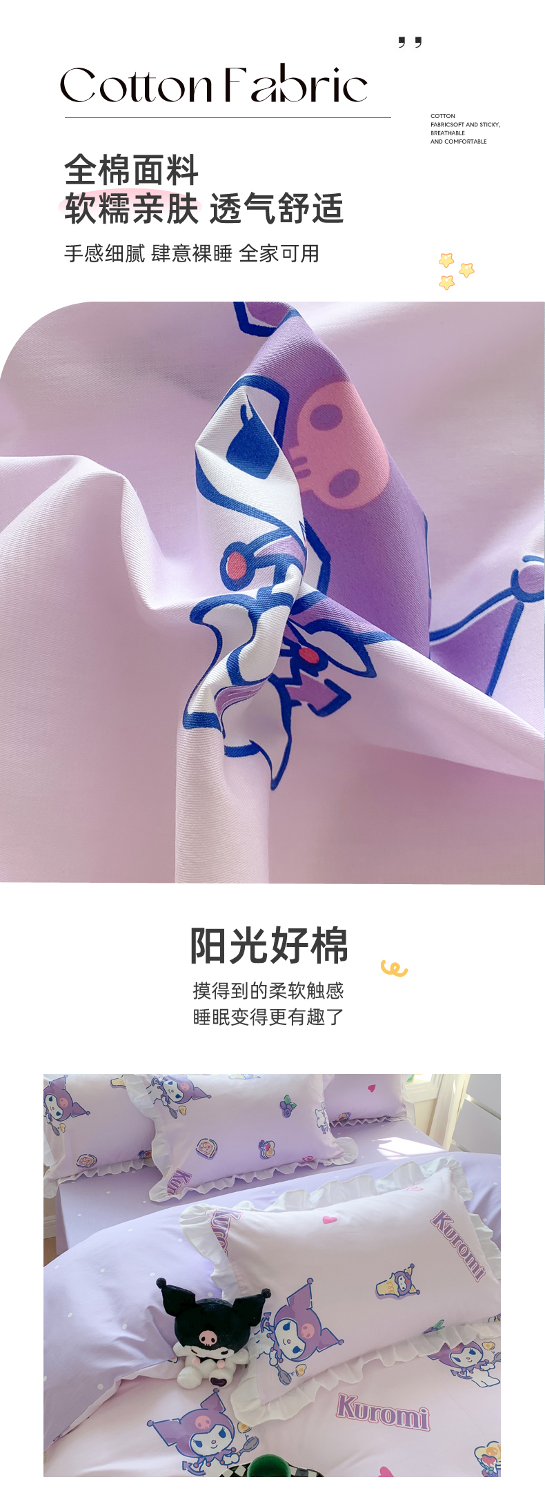 当前位置: 91家纺网 > 商品网购 > 床品套件 > 四件套 > 全棉普通四件套 > 玉元坊 2025新款三丽鸥系列白花边被套纯棉全棉床裙三件套四件套-库洛米白花边款式 甜甜库洛米【花边款】