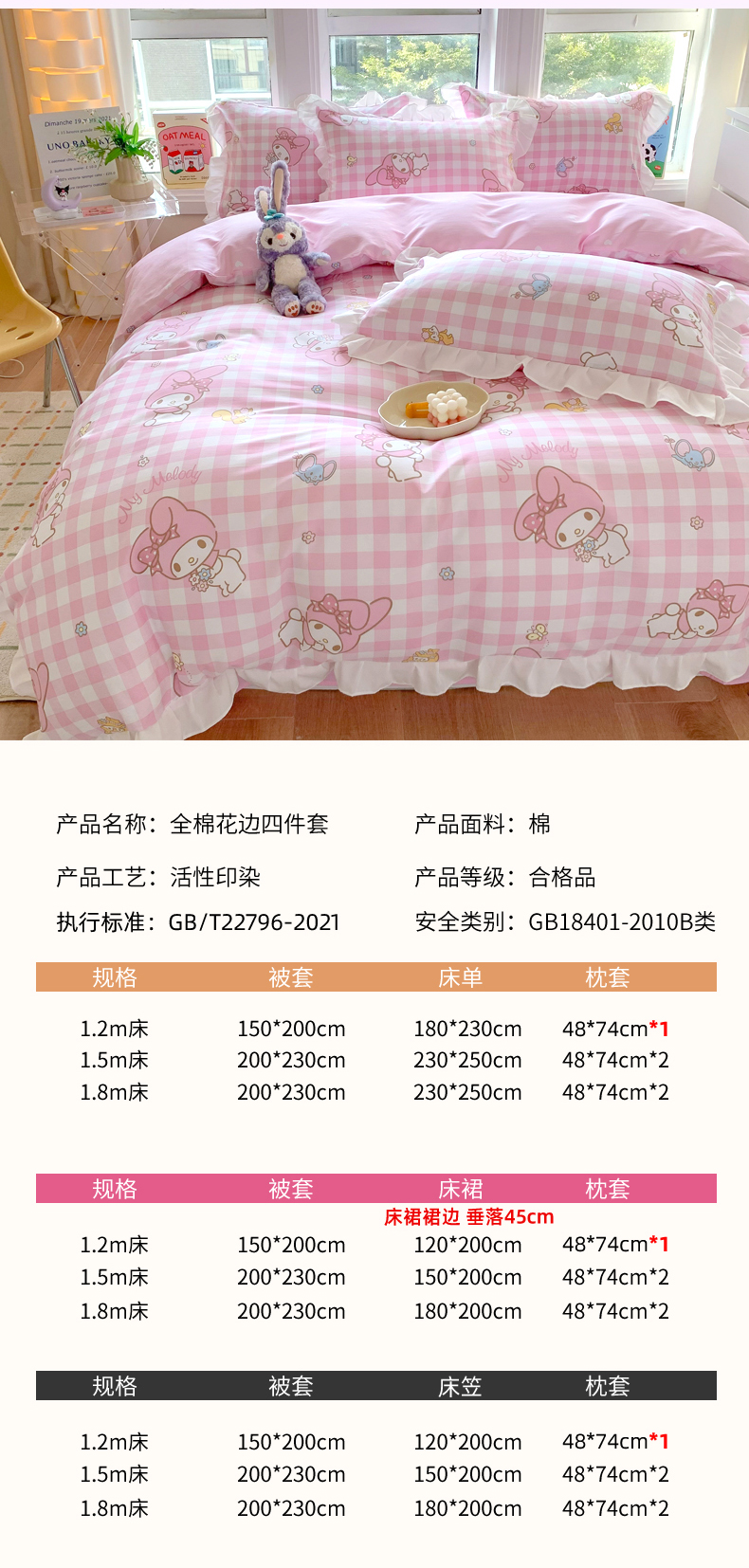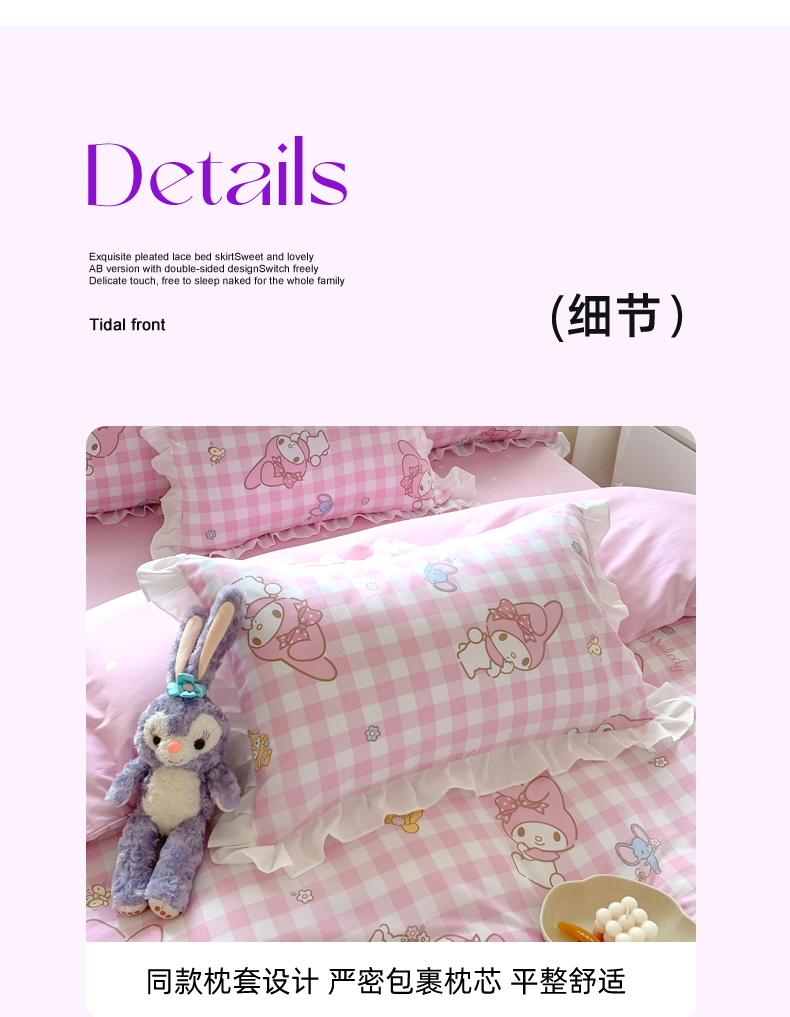 当前位置: 91家纺网 > 商品网购 > 床品套件 > 四件套 > 全棉普通四件套 > 玉元坊 2025新款三丽鸥系列白花边被套纯棉全棉床裙三件套四件套-美乐蒂白花边款式 粉格美乐蒂【花边款】