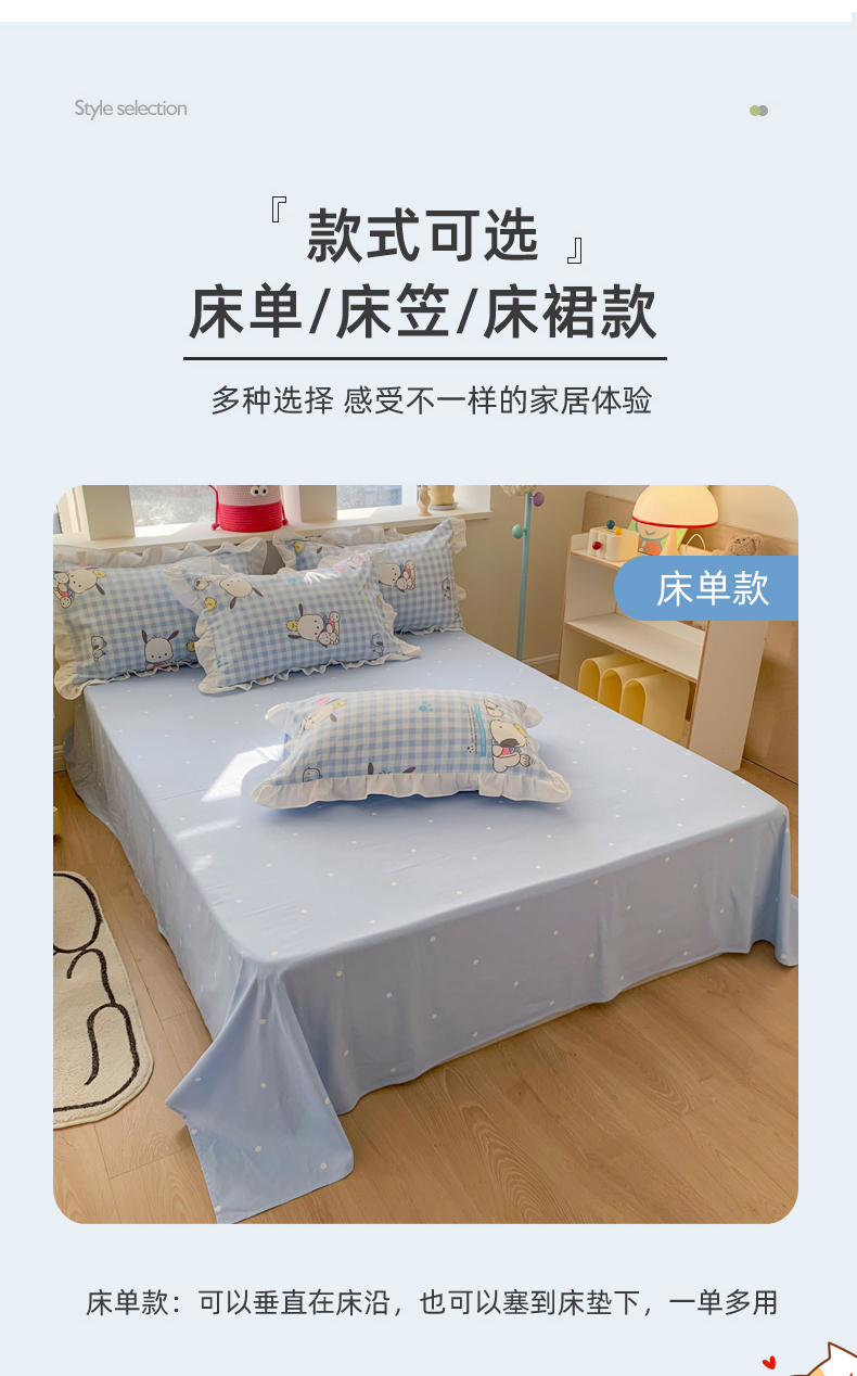 (总)玉元坊 2026新款正版授权三丽鸥系列全棉纯棉床单四件套学生三件套-美乐蒂系列,粉格美乐蒂【简约款】,乖乖美乐蒂【简约款】,蝴蝶结美乐蒂【简约款】,开心美乐蒂【简约款】,可可美乐蒂【简约款】,魔法美乐蒂【简约款】,甜甜美乐蒂【简约款】,小兔美乐蒂【简约款】