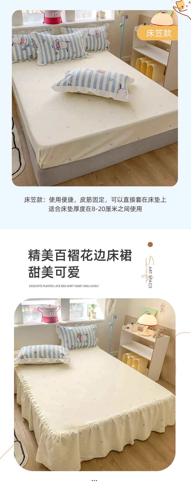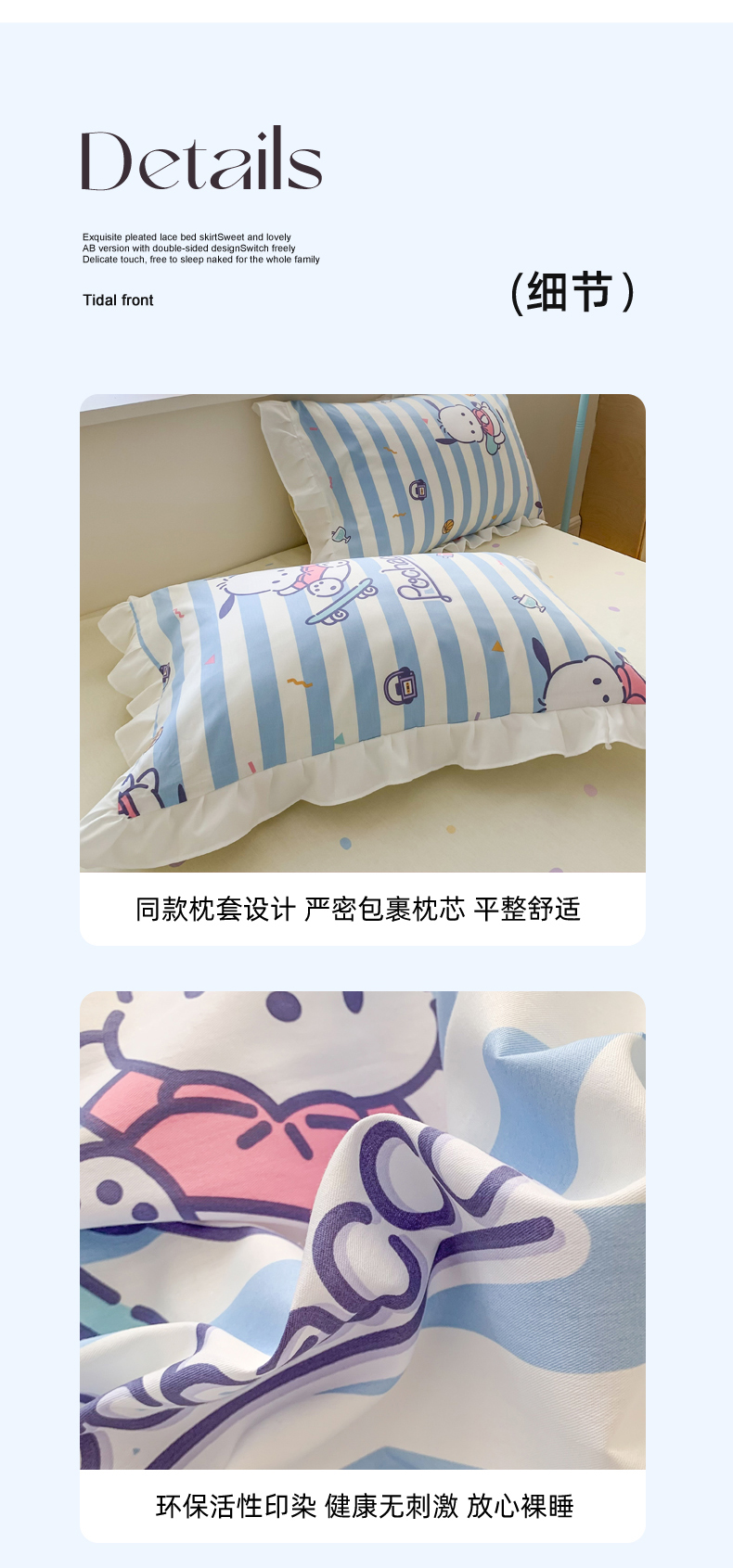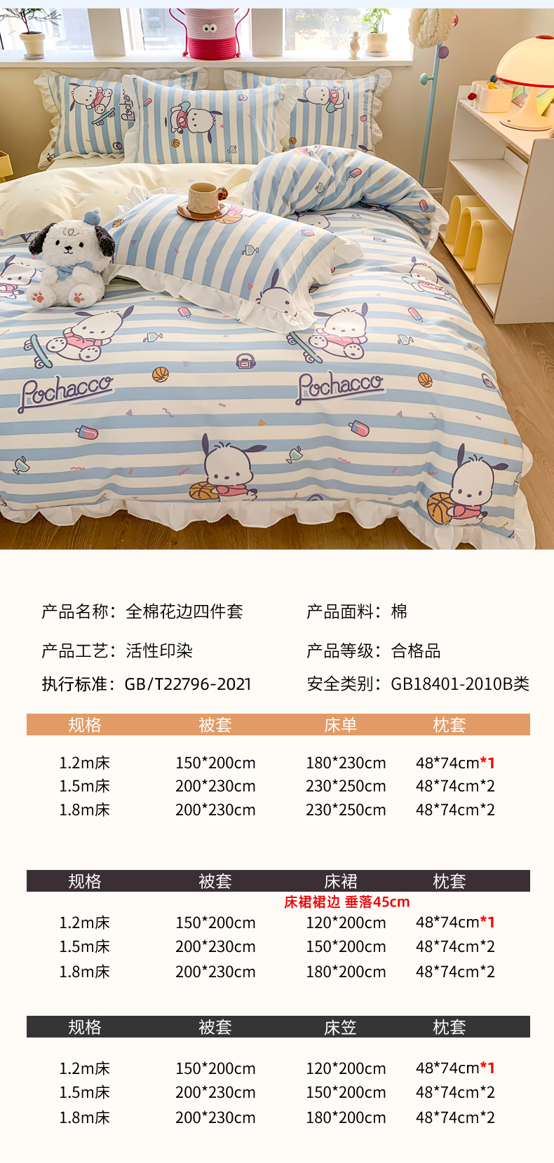 当前位置: 91家纺网 > 商品网购 > 床品套件 > 四件套 > 全棉普通四件套 > 玉元坊 2025新款三丽鸥系列白花边被套纯棉全棉床裙三件套四件套-帕恰狗白花边款式 条纹帕恰狗【花边款式】
