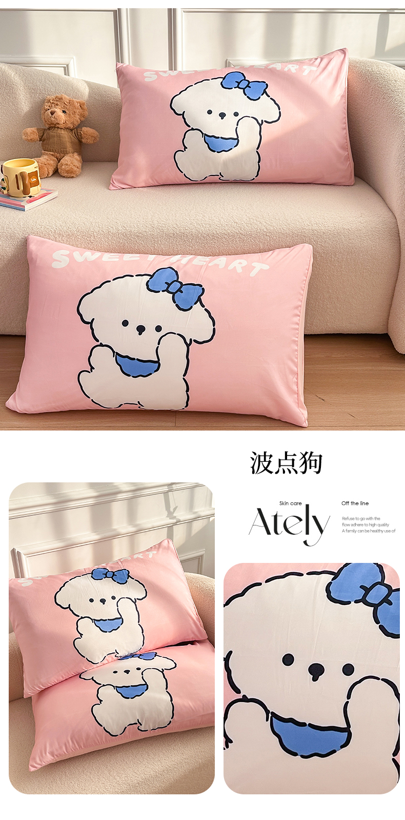 多品家纺 2025新款大版系列超柔水洗棉枕套 大版波点狗
