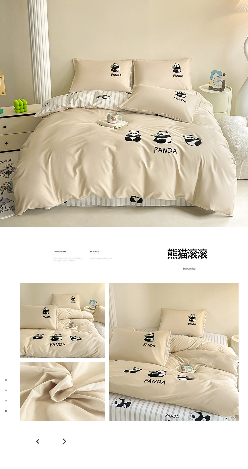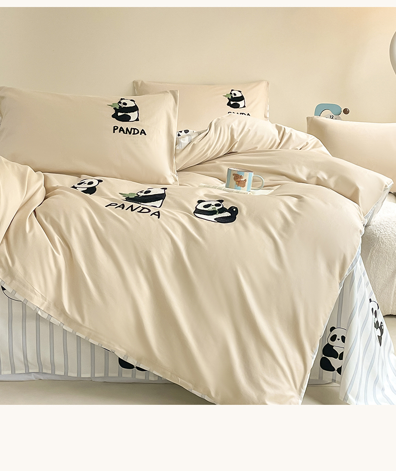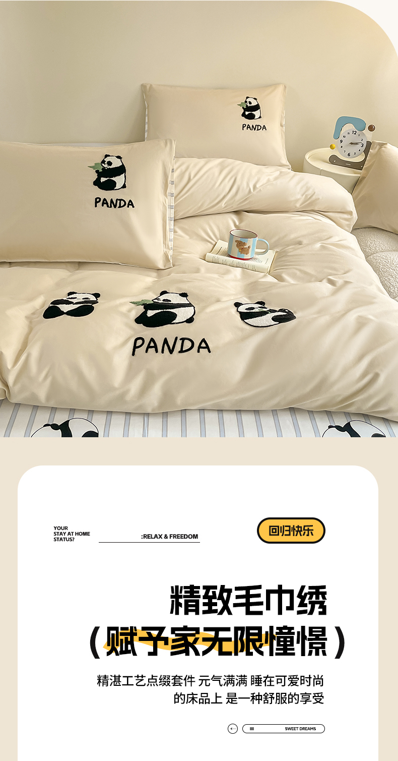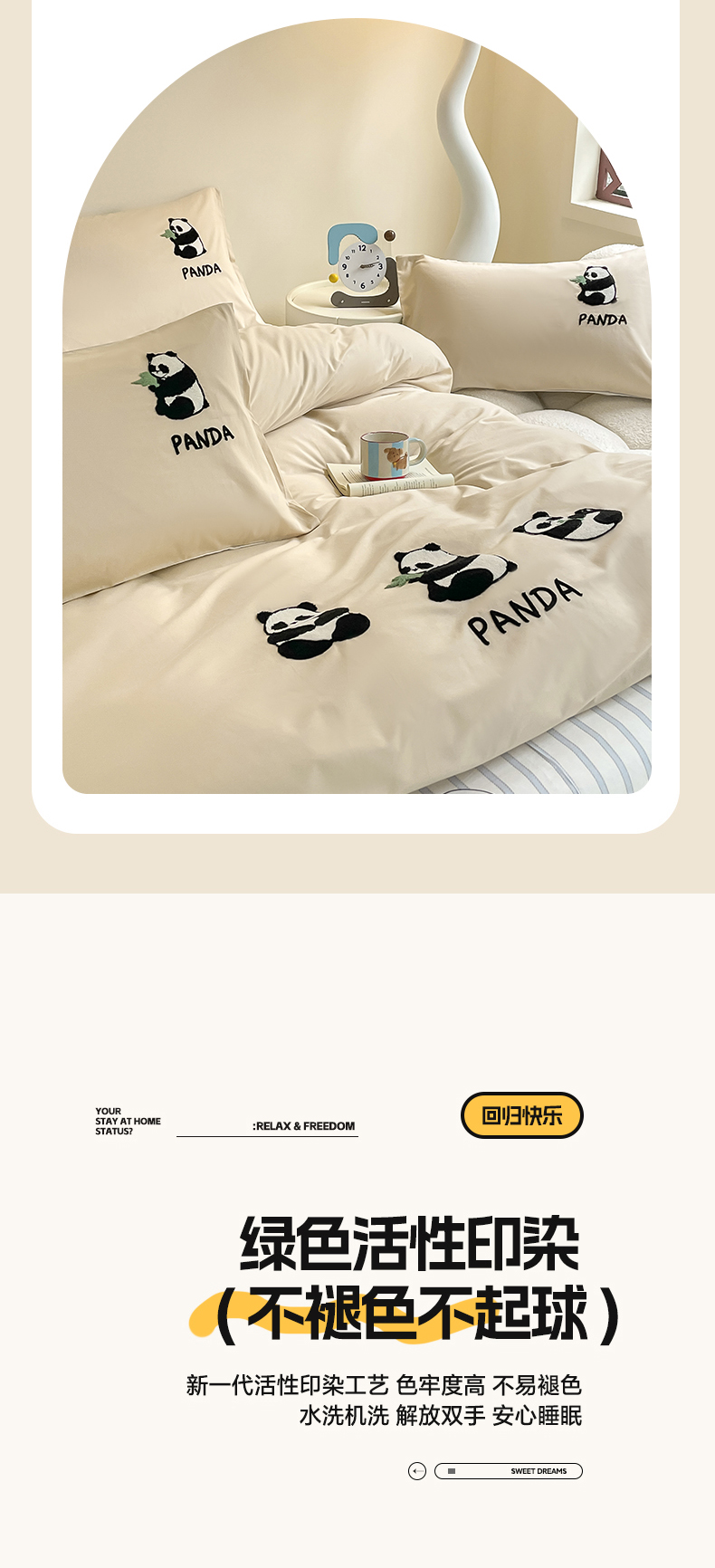沐辰 2025新款全棉13372印加绣四件套 熊猫滚滚