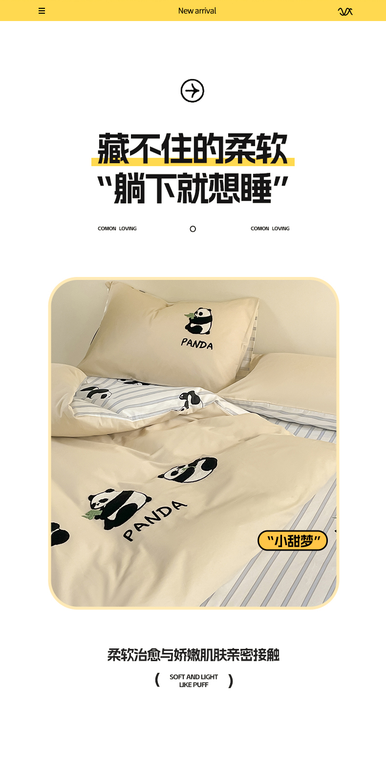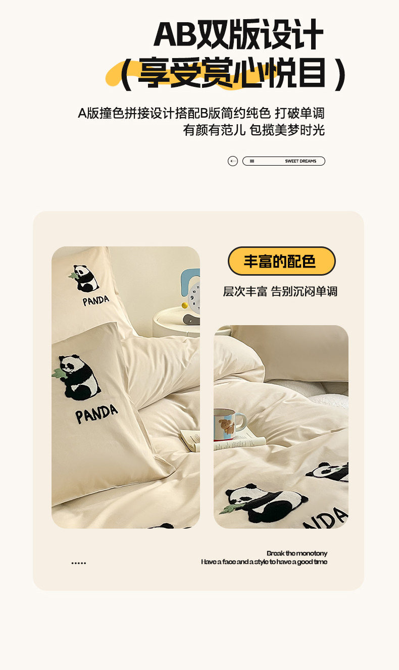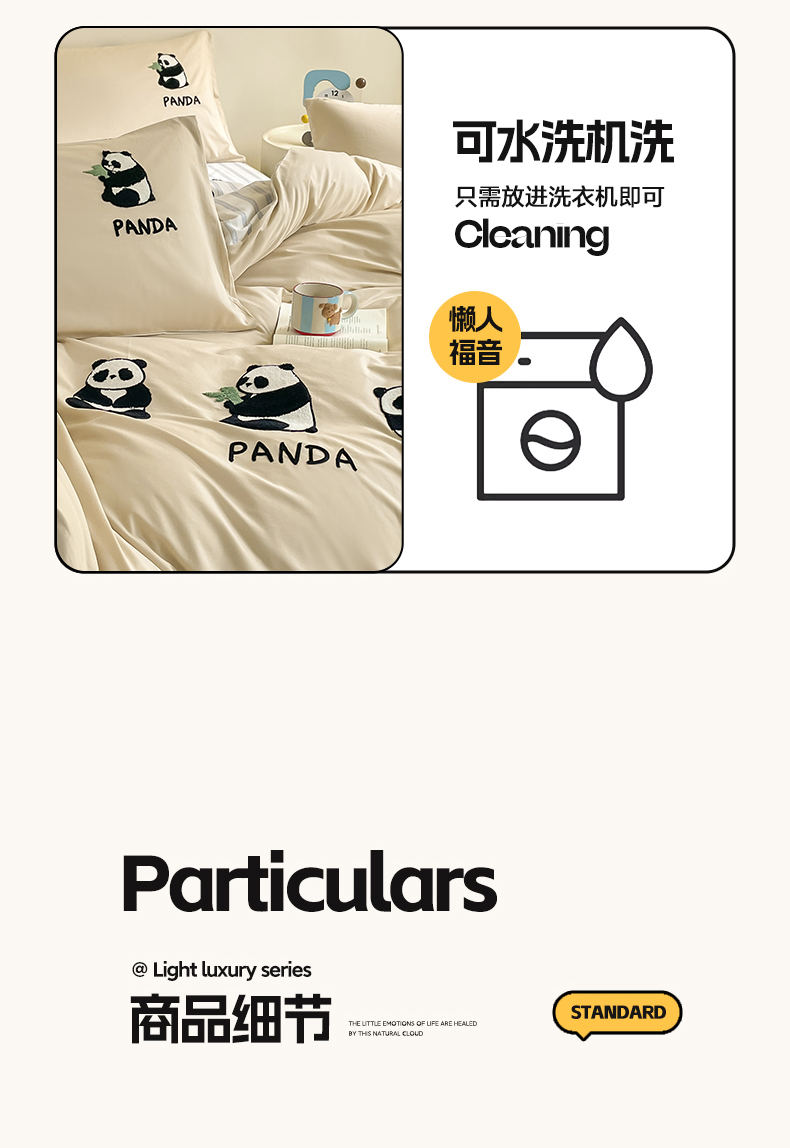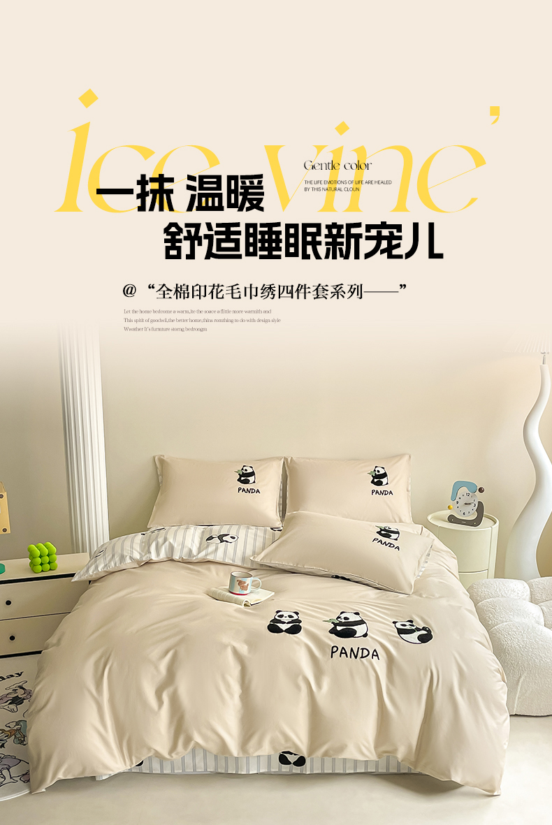 沐辰 2025新款全棉13372印加绣四件套 熊猫滚滚