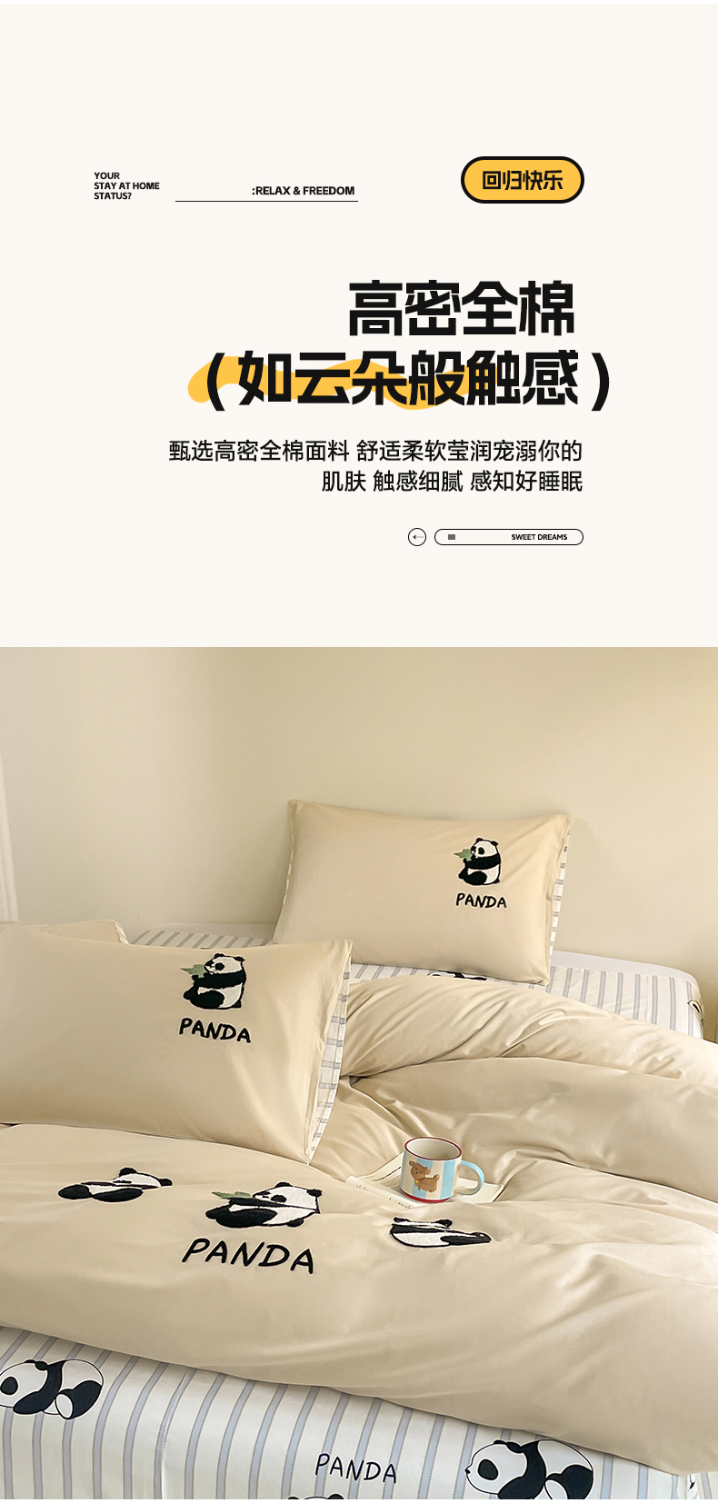 商品名称:沐辰 2025新款全棉13372印加绣四件套 熊猫滚滚