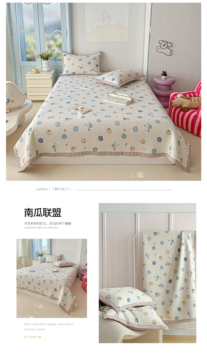 商品名称:源舜家纺 2025新款无弹针织棉床盖三件套 南瓜联盟