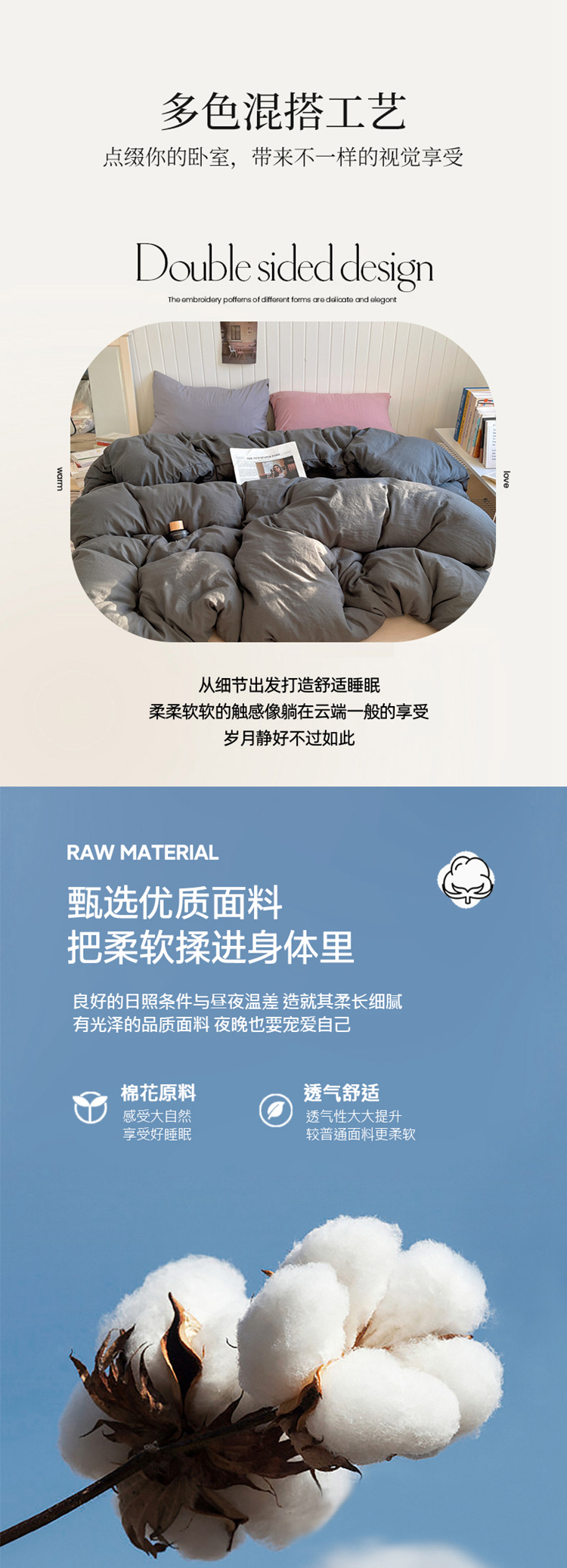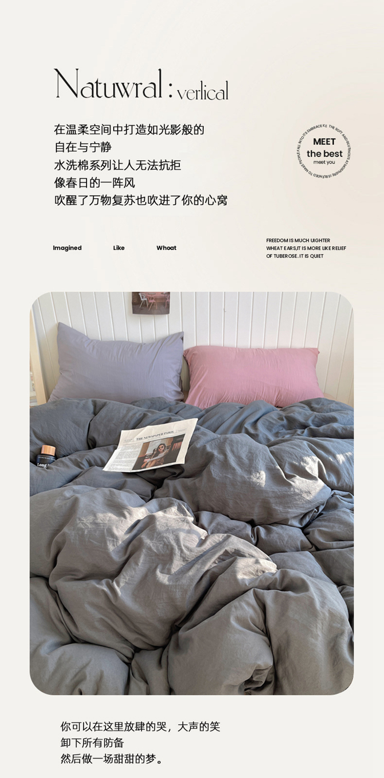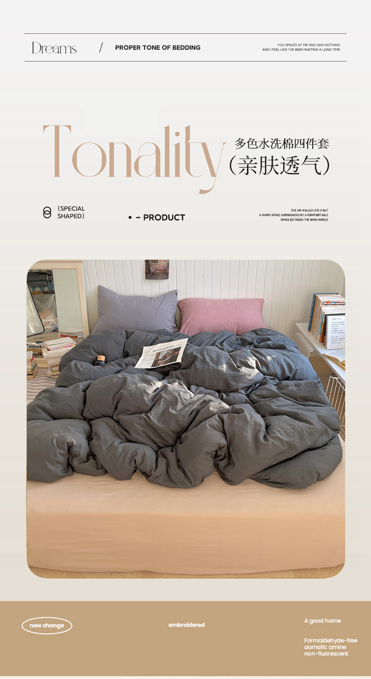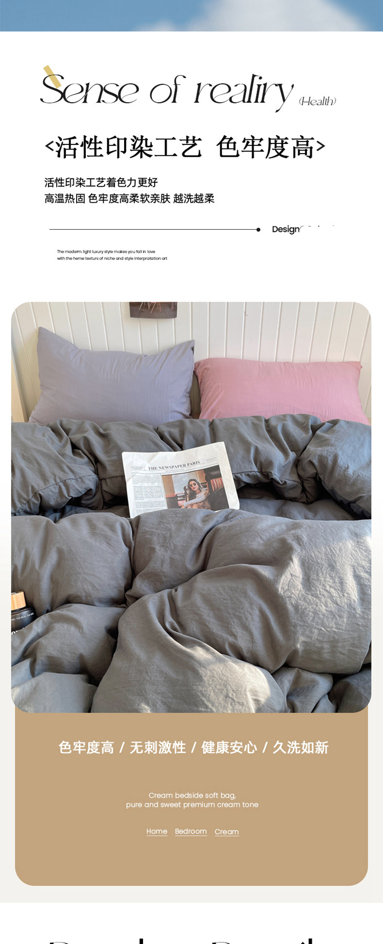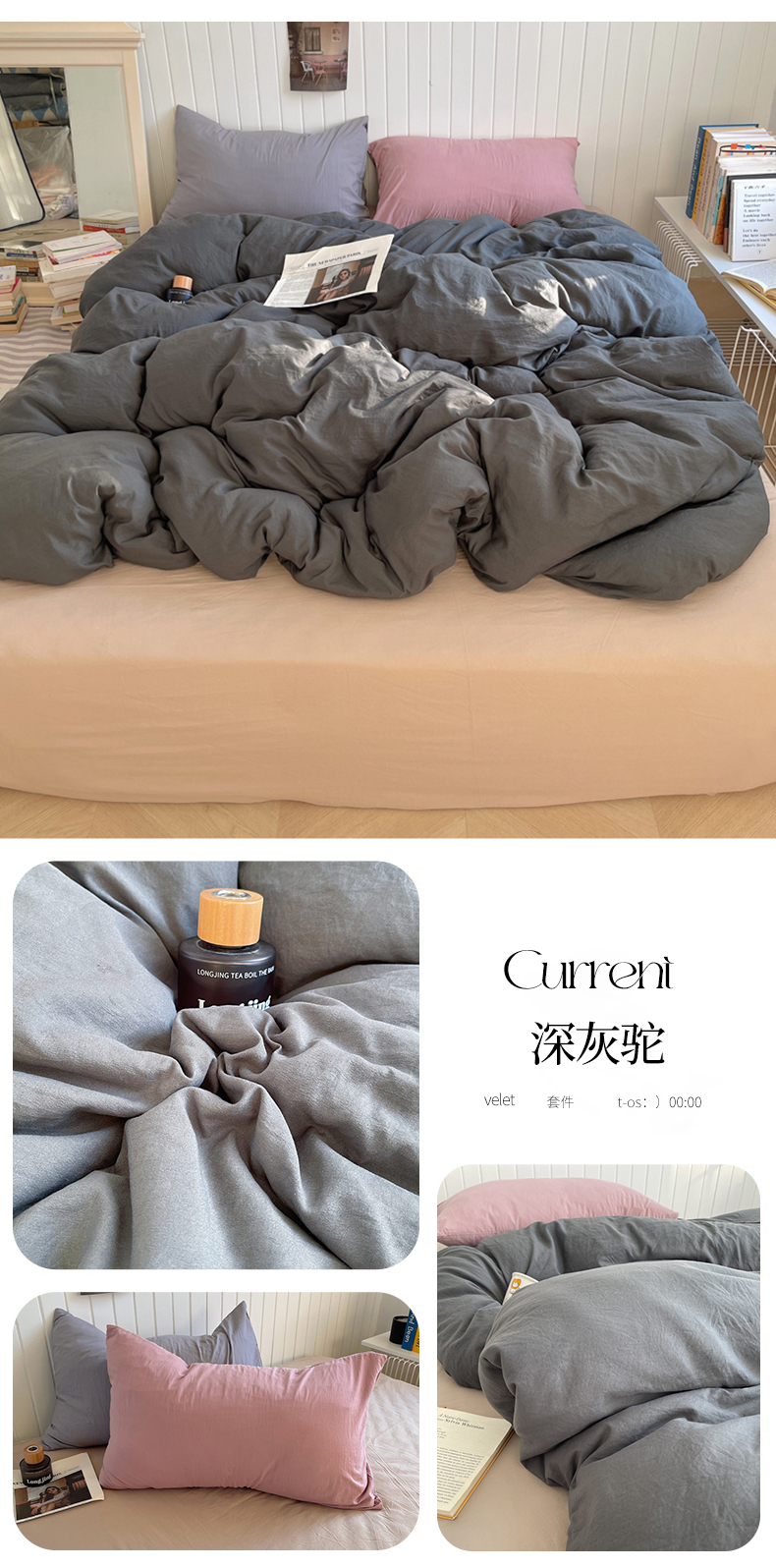 当前位置: 91家纺网 > 商品网购 > 床品套件 > 四件套 > 其它四件套 > 2025新款ins博主风纯色混搭双色水洗m四件套(软糯舒适,非市场普通面料!!!) 多色水洗m-深灰驼