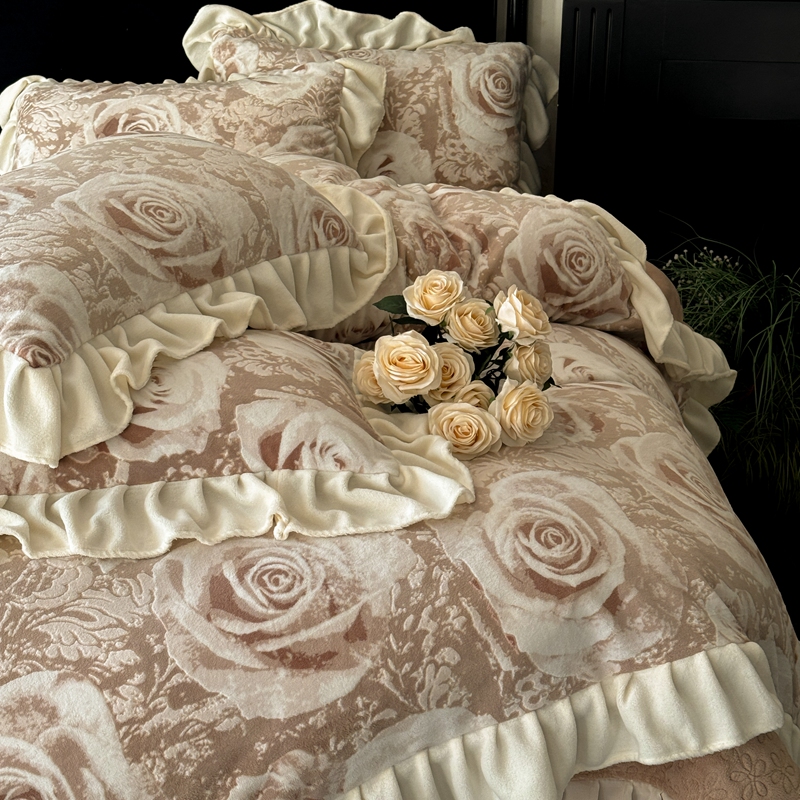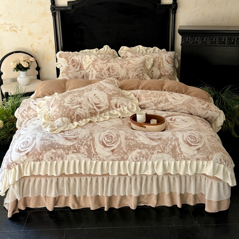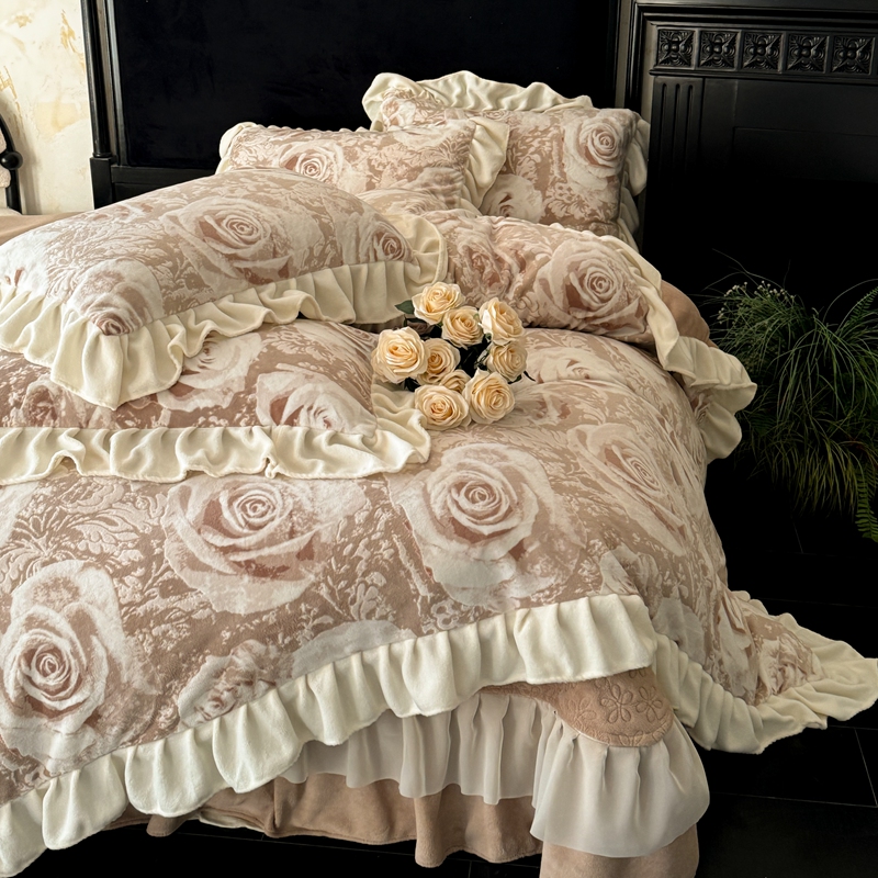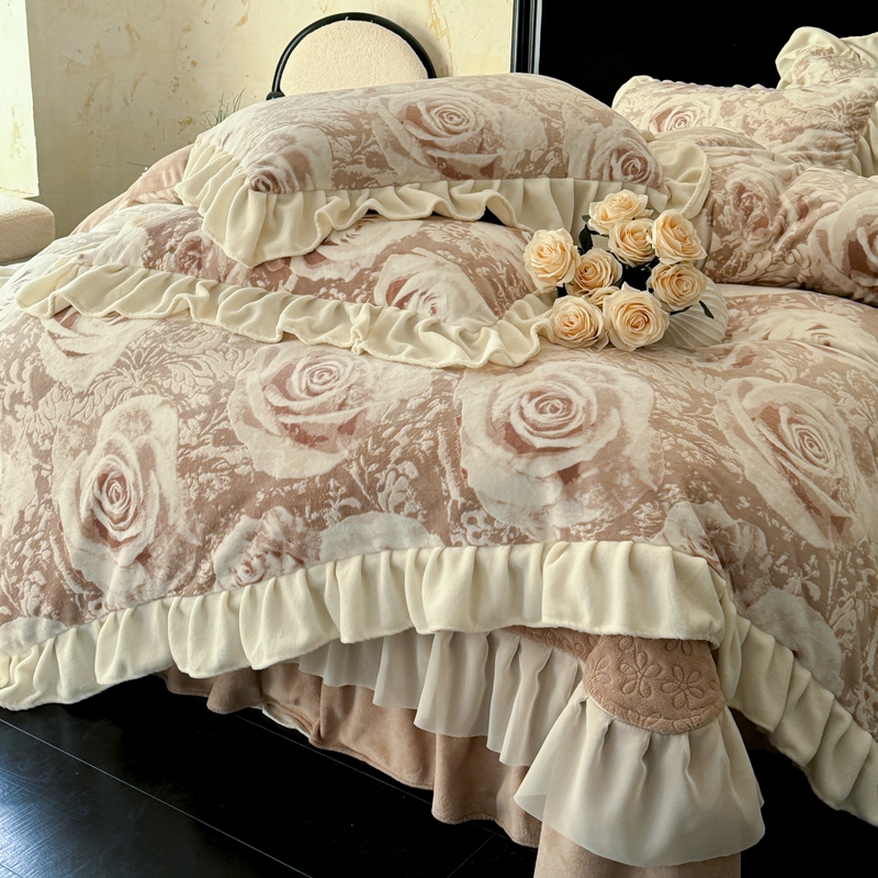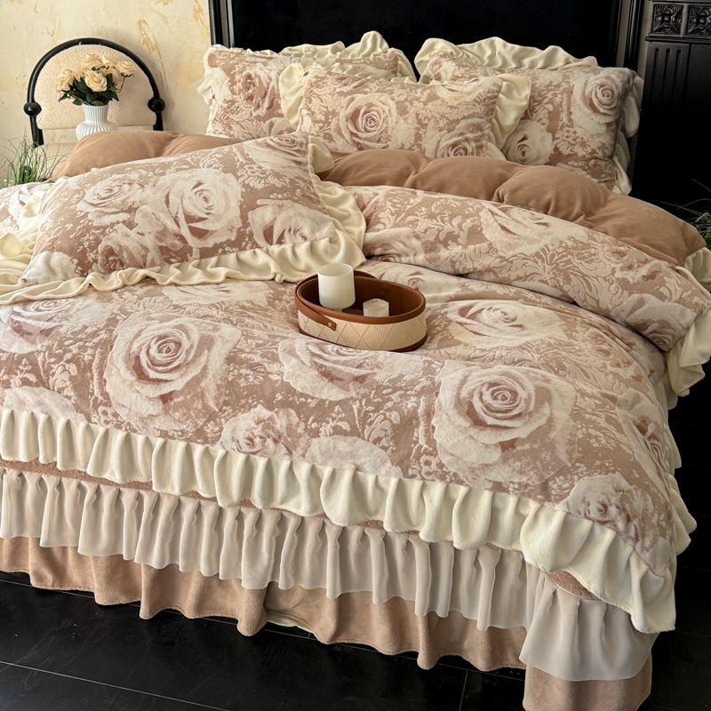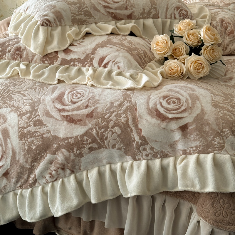 商品名称:大麦家纺 2024新款高克重牛奶绒夹棉床盖四件套 玫瑰咖
