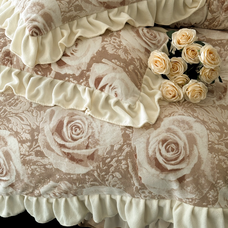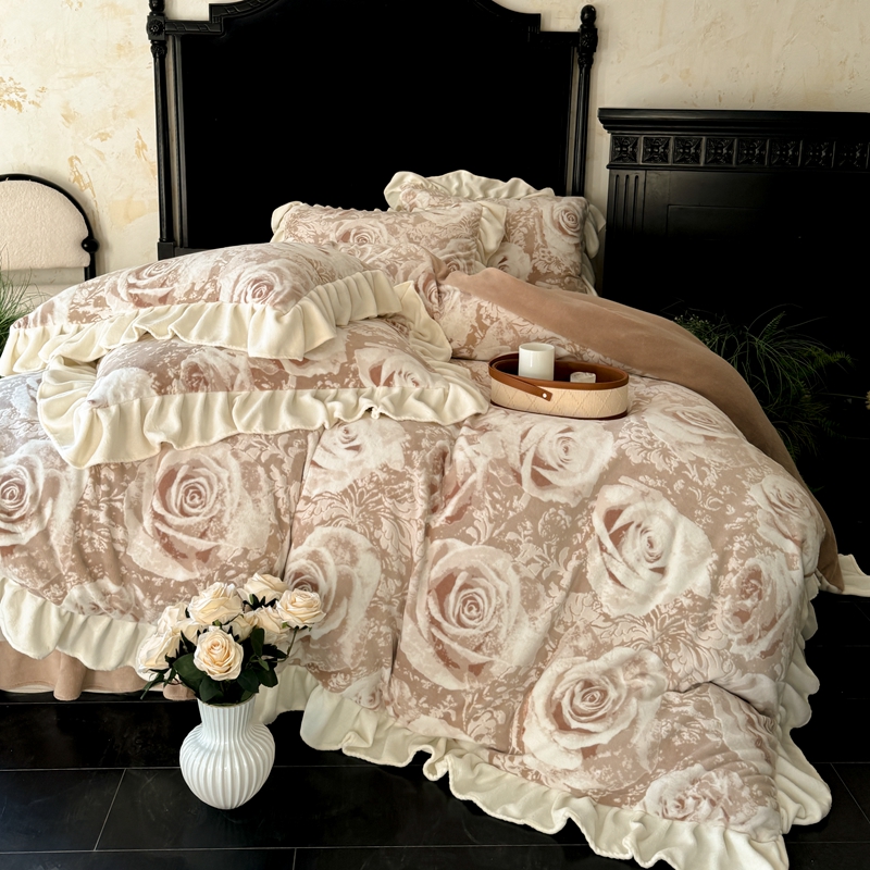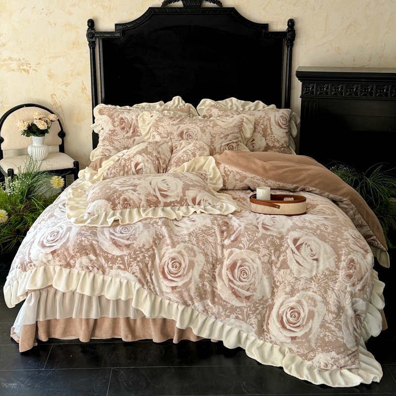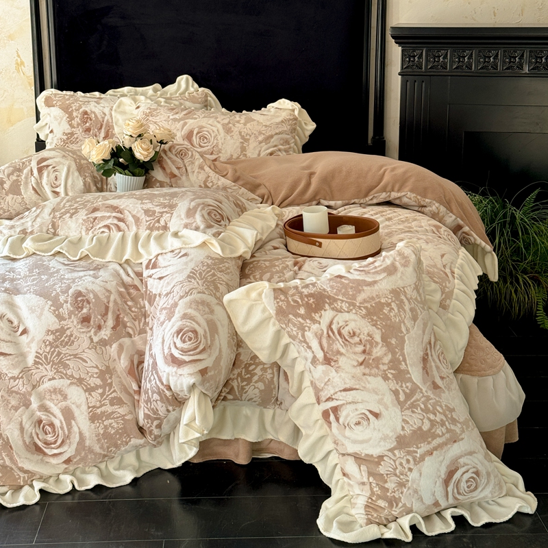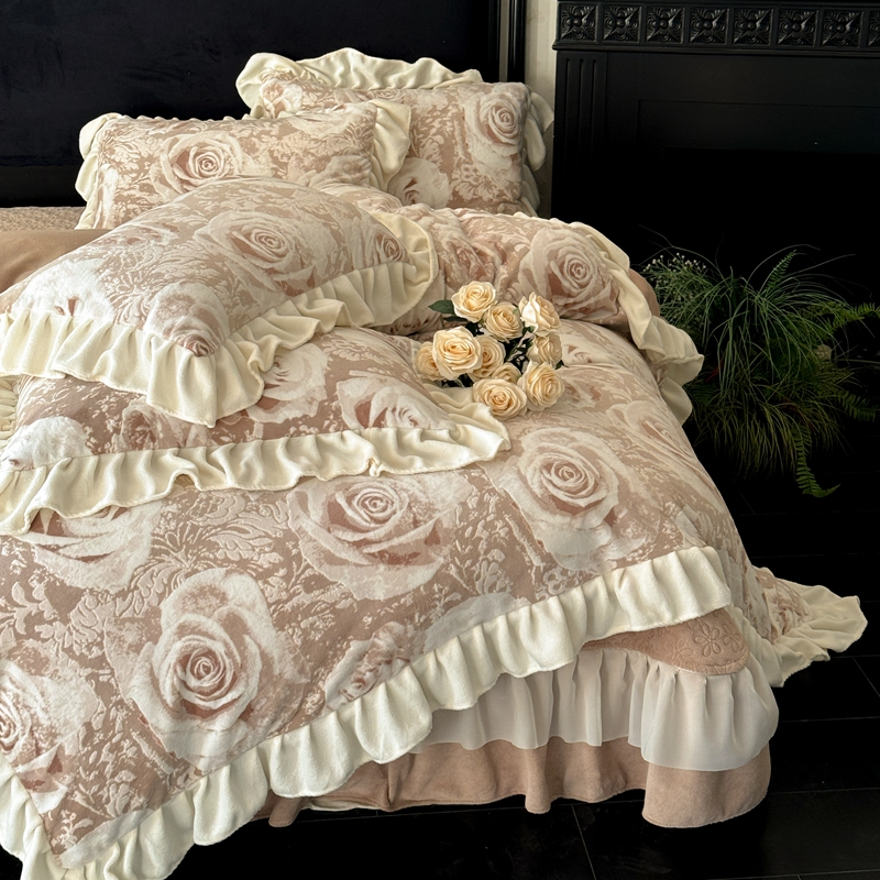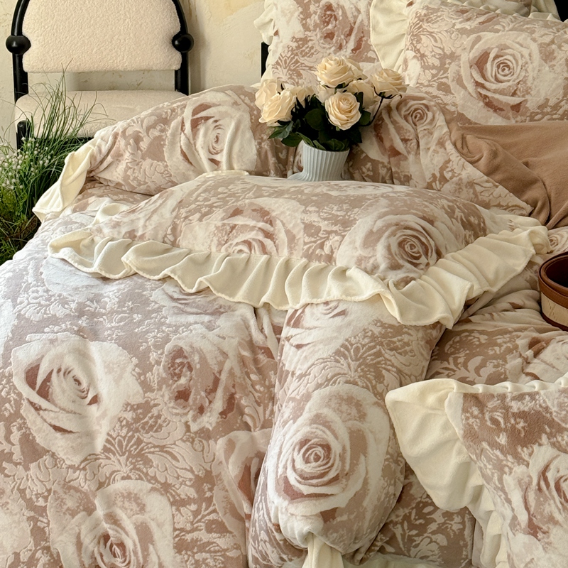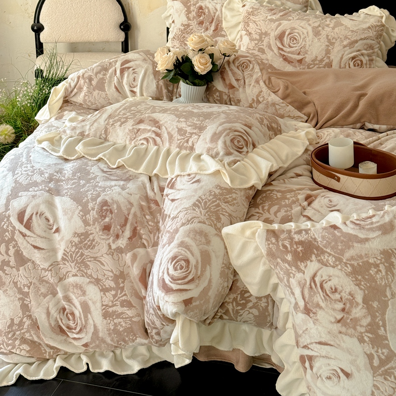 商品名称:大麦家纺 2024新款高克重牛奶绒夹棉床盖四件套 玫瑰咖