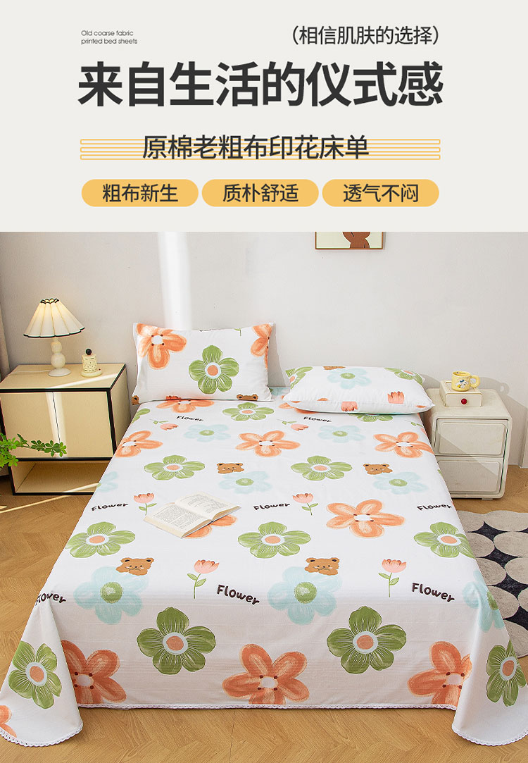 (总)金泰莱 2026新款工艺款原棉印花老粗布床单系列,读书熊,红帽格,法蒂,芬芳,墨晔,木槿,慕斯,南瓜,朋友,柒婳,晴栀,瑞香,条纹狗,玉兰,圆圈,波西米亚,格子樱桃,花朵熊,蓝格,梦幻小鹿,浅灰,热恋,温馨,紫罗兰