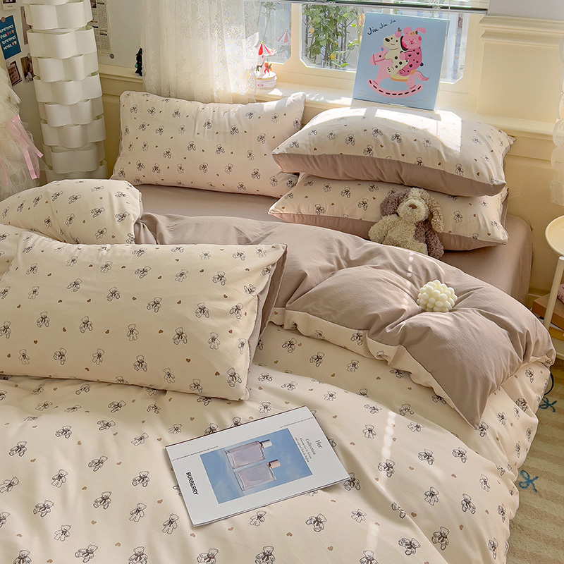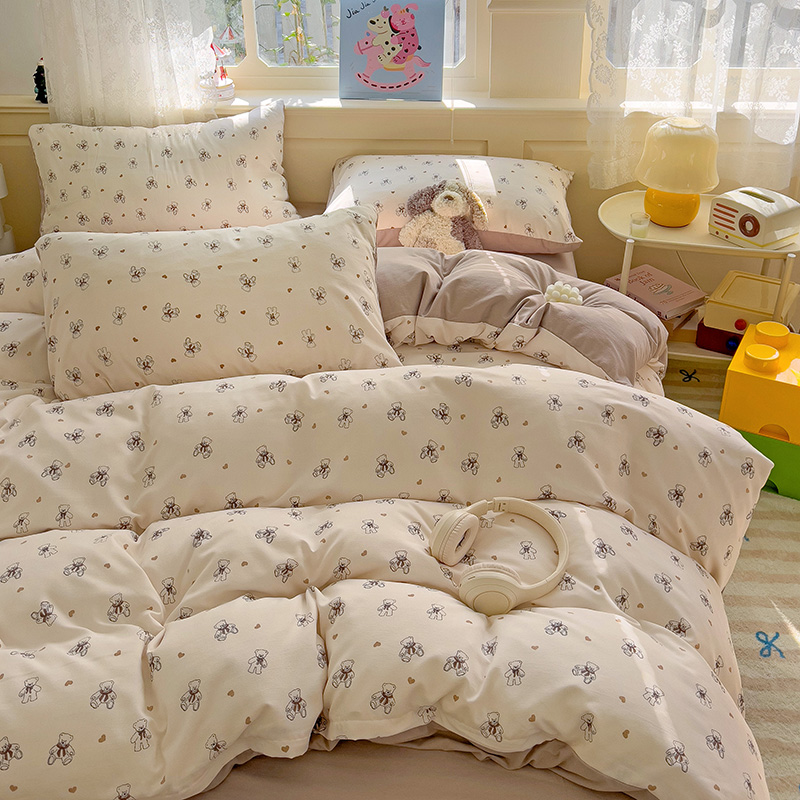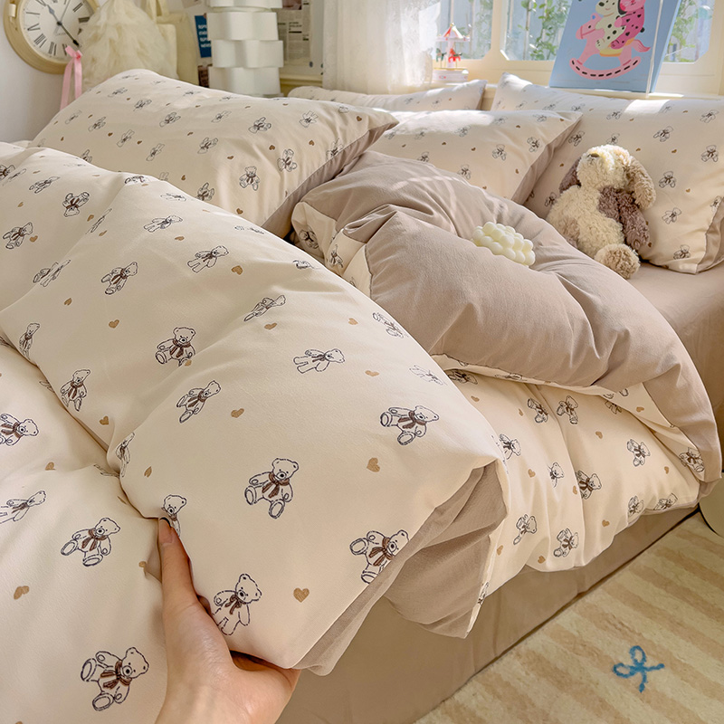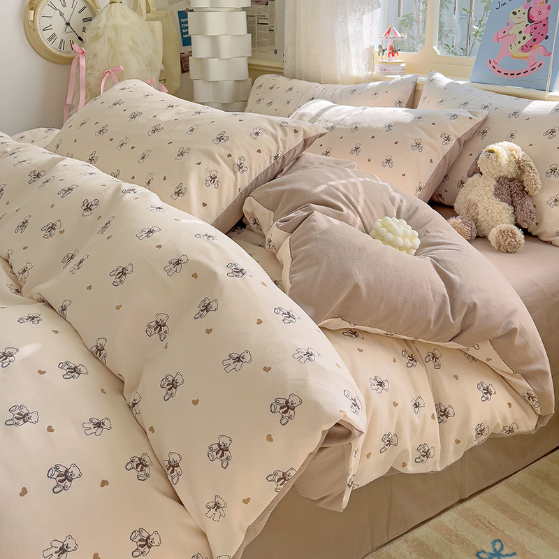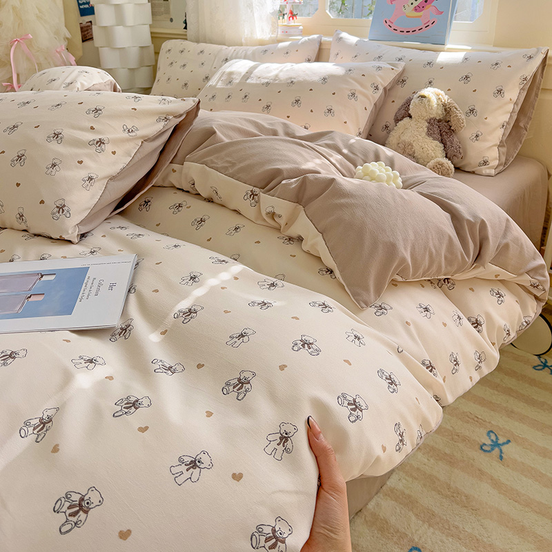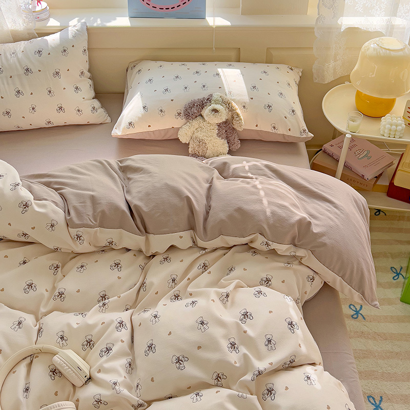 当前位置: 91家纺网 > 商品网购 > 床品套件 > 四件套 > 其它四件套 > 名品家纺 2025新款针织棉双层纱四件套-风格二 爱心熊