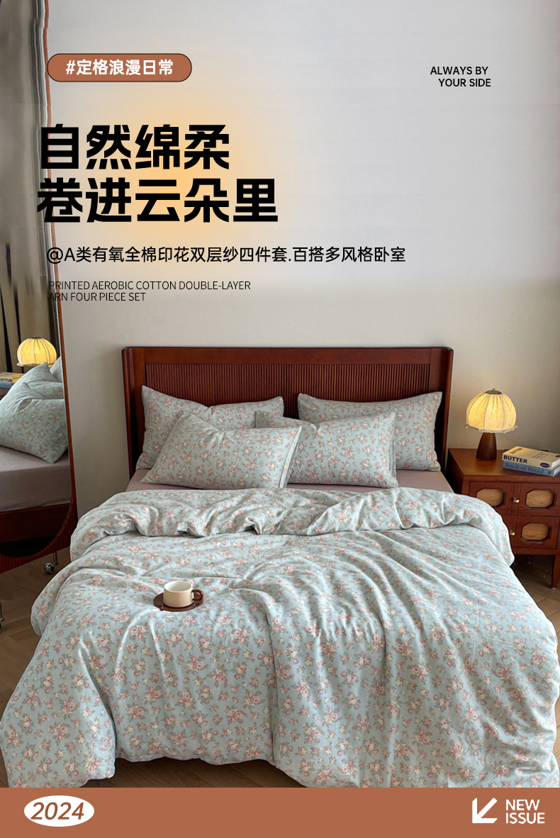 仟网汇 2025新款有氧全棉双层纱四件套 美玲小姐