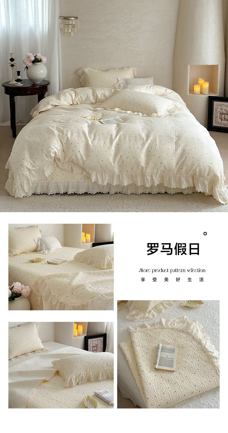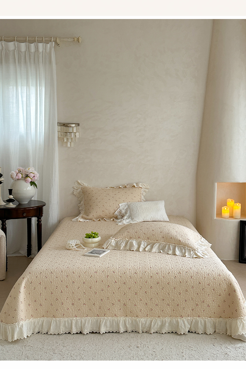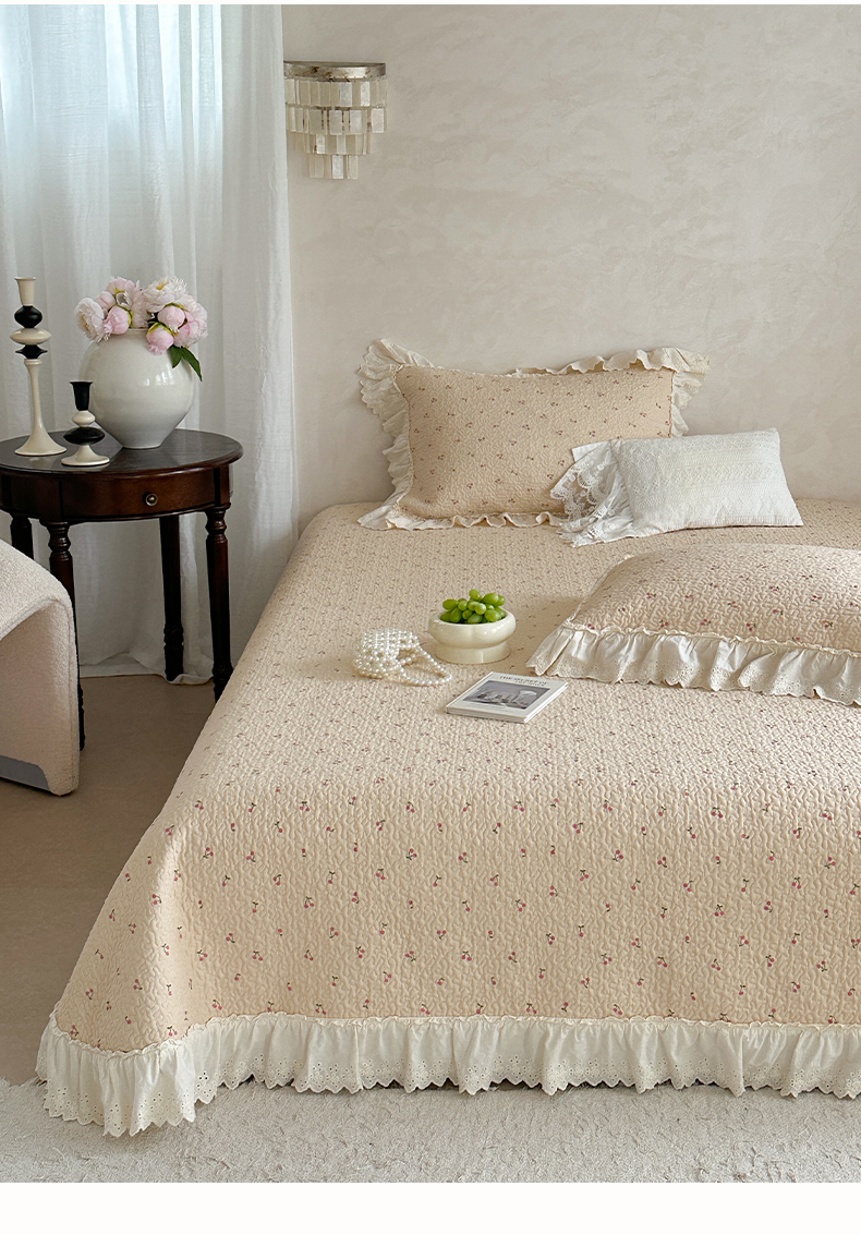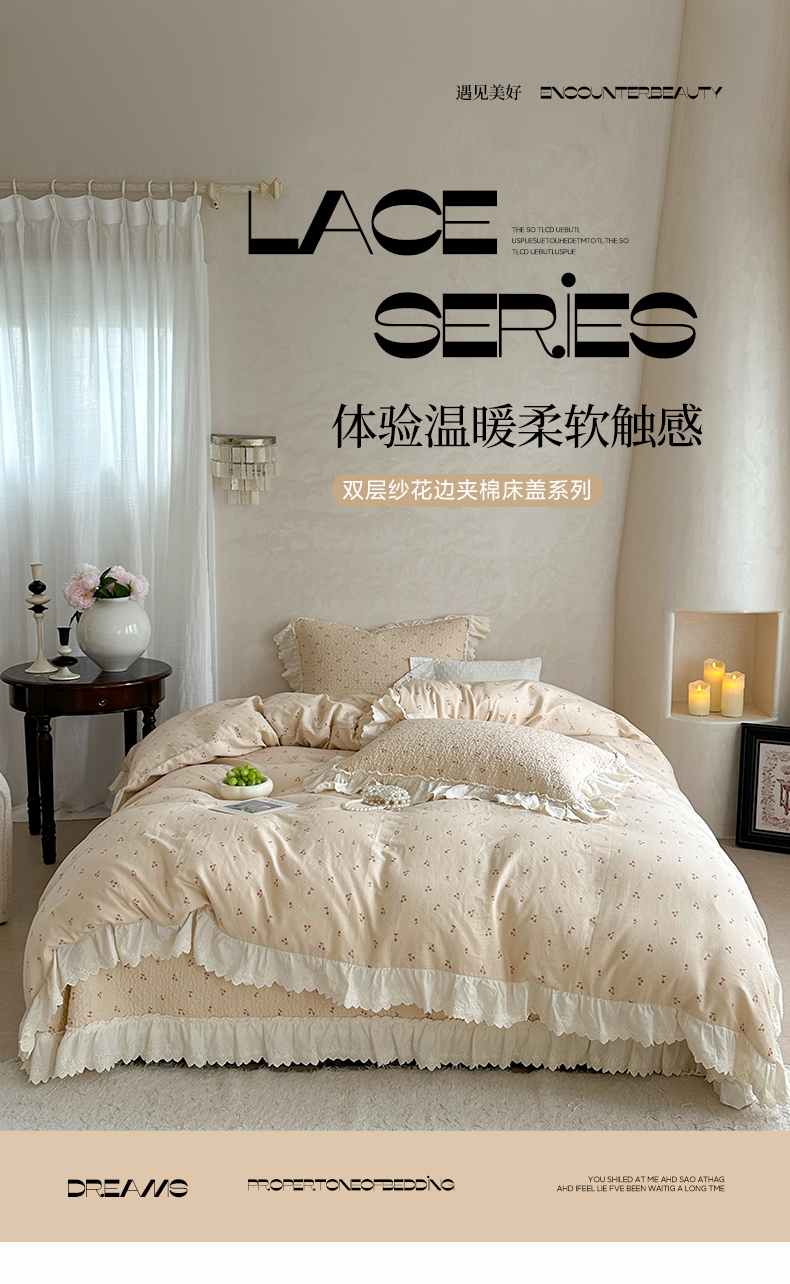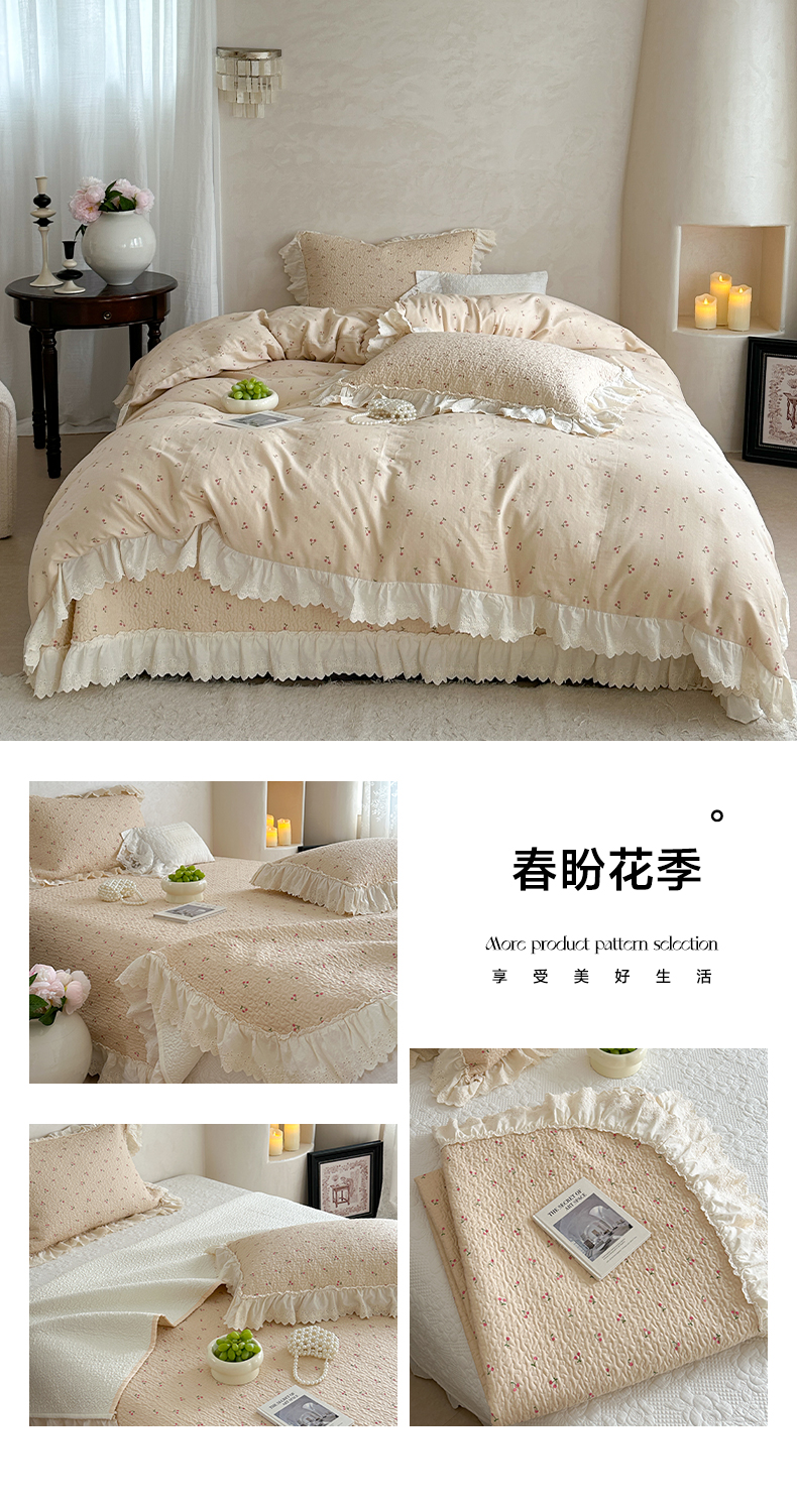 (总)琳可家居 2026新款60S长绒棉花边床盖A类双面全棉高温水洗-蝶恋系列,蝶恋-暖白,蝶恋-卡其,蝶恋-雾粉,组合