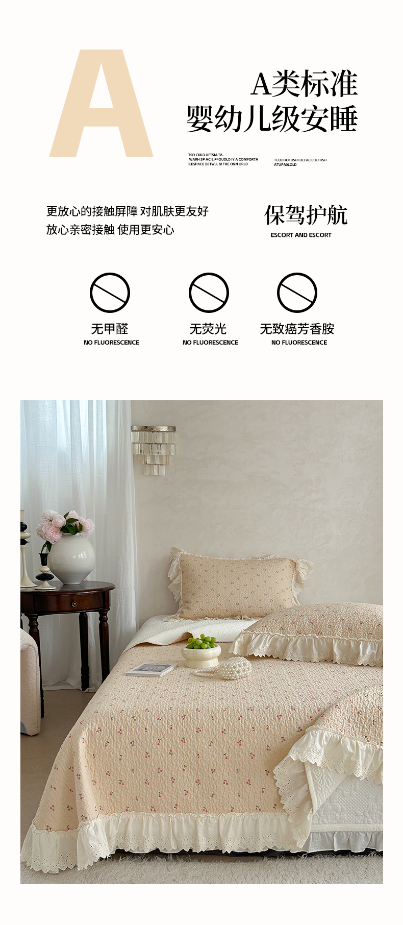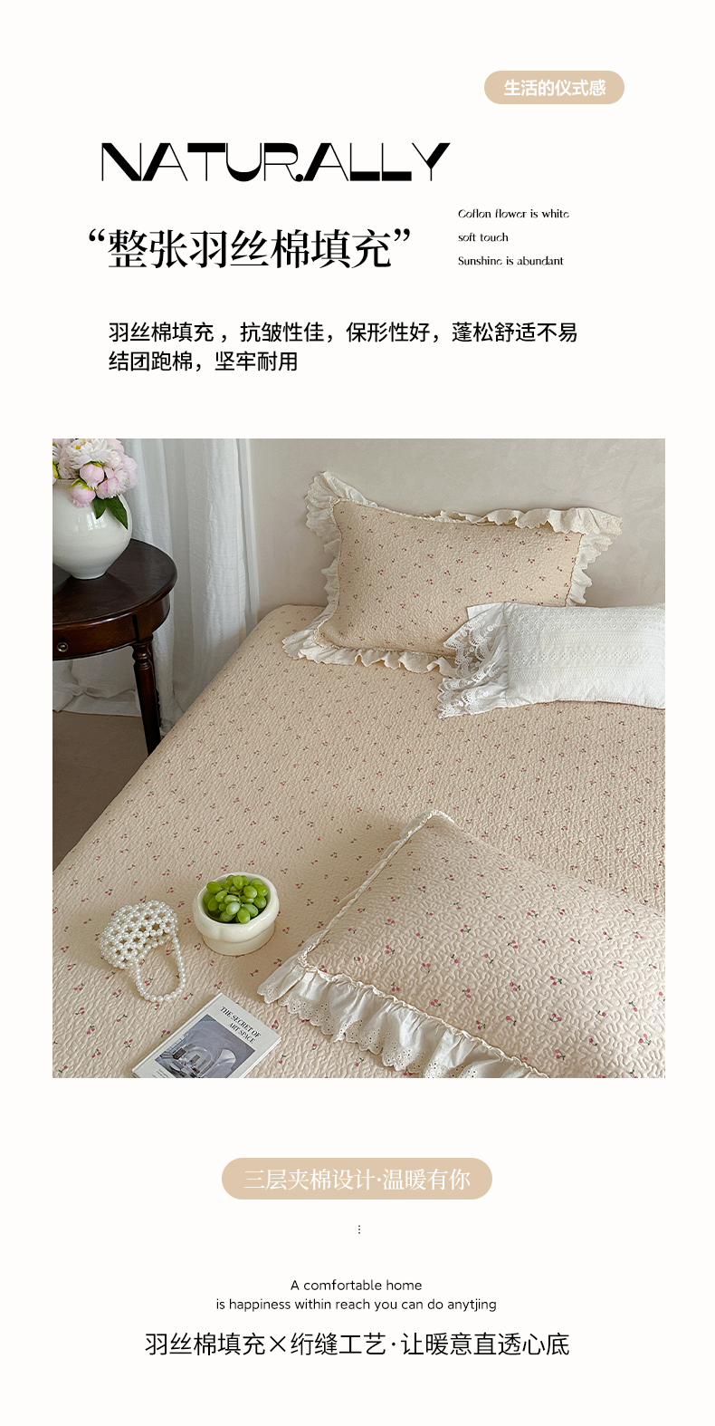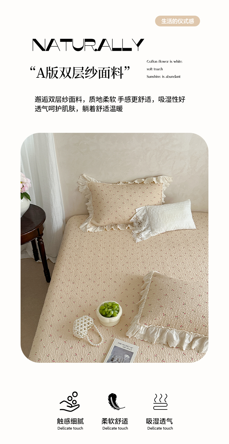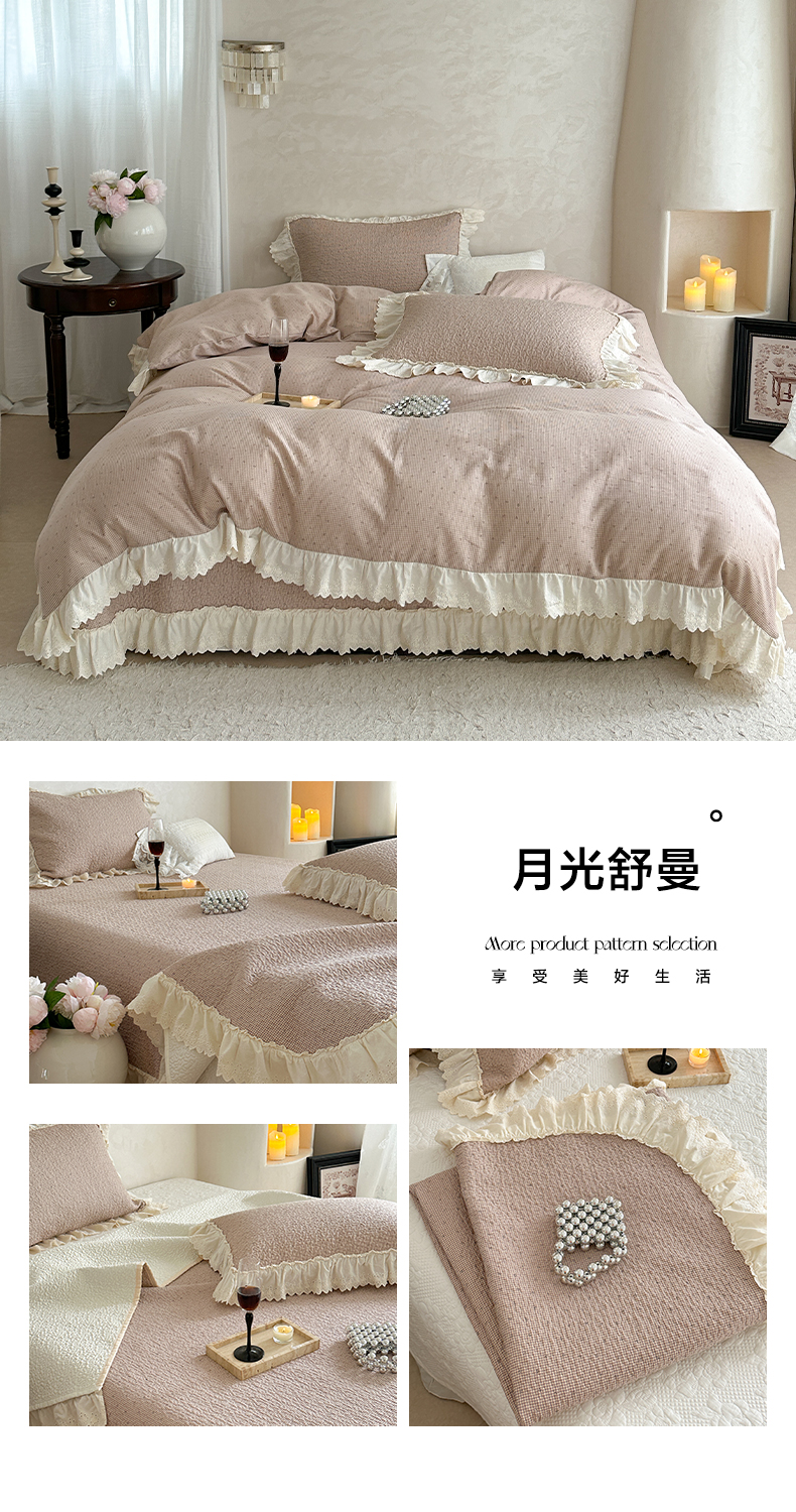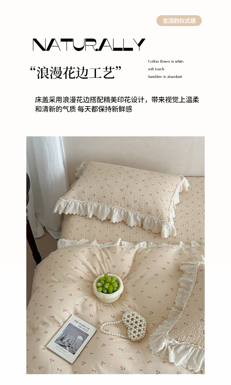 (总)琳可家居 2026新款60S长绒棉花边床盖A类双面全棉高温水洗-蝶恋系列,蝶恋-暖白,蝶恋-卡其,蝶恋-雾粉,组合