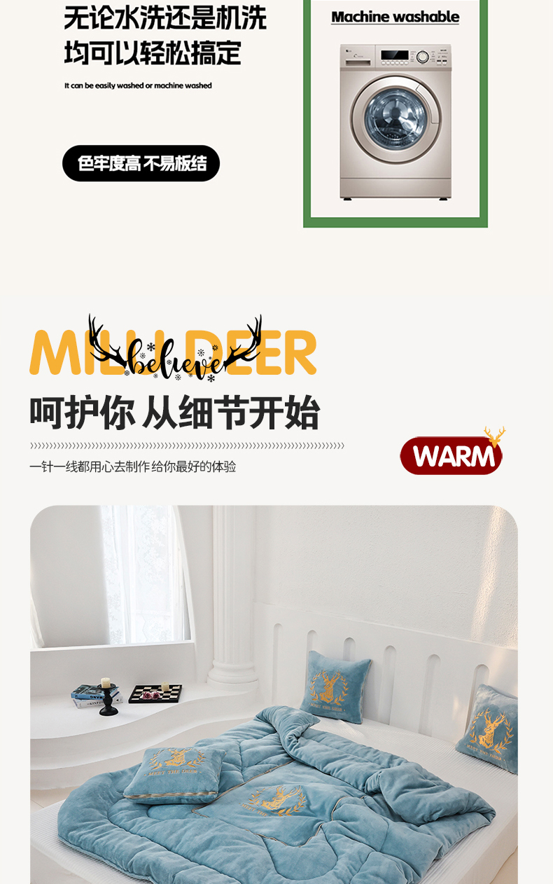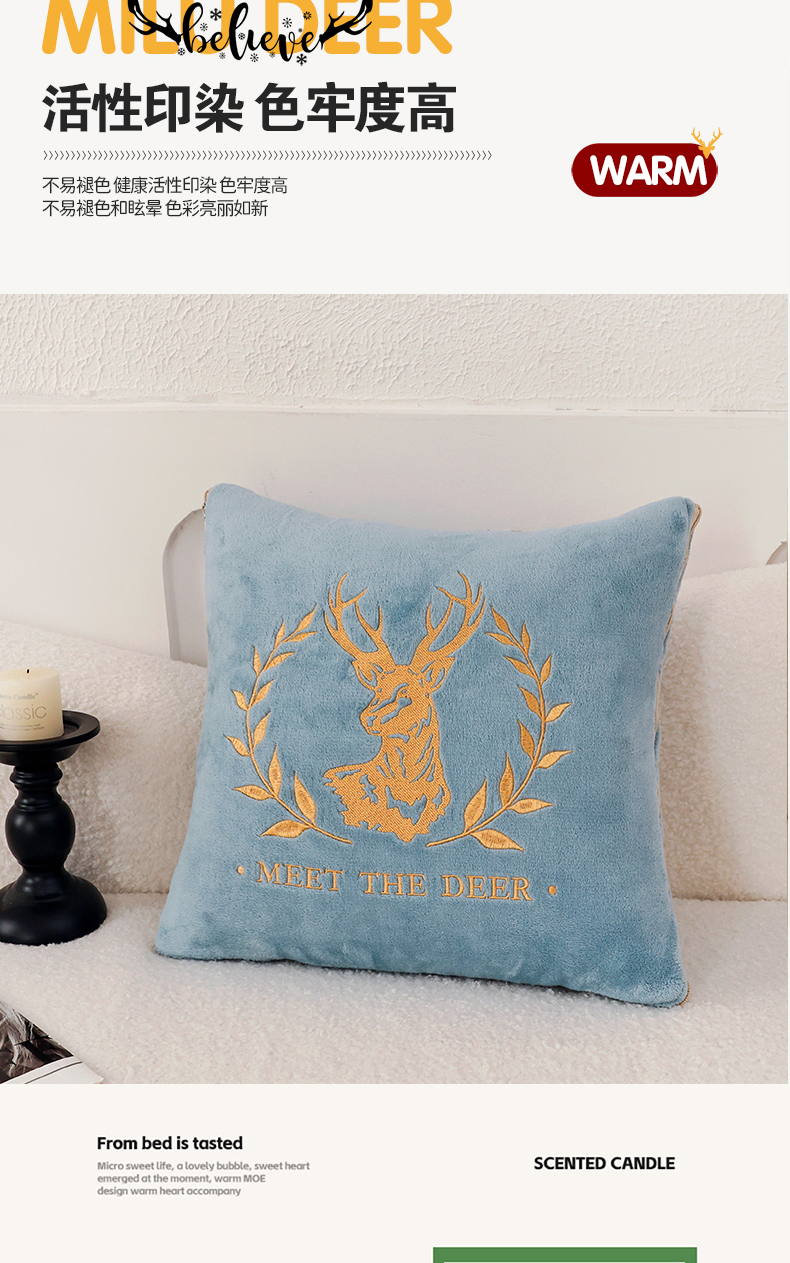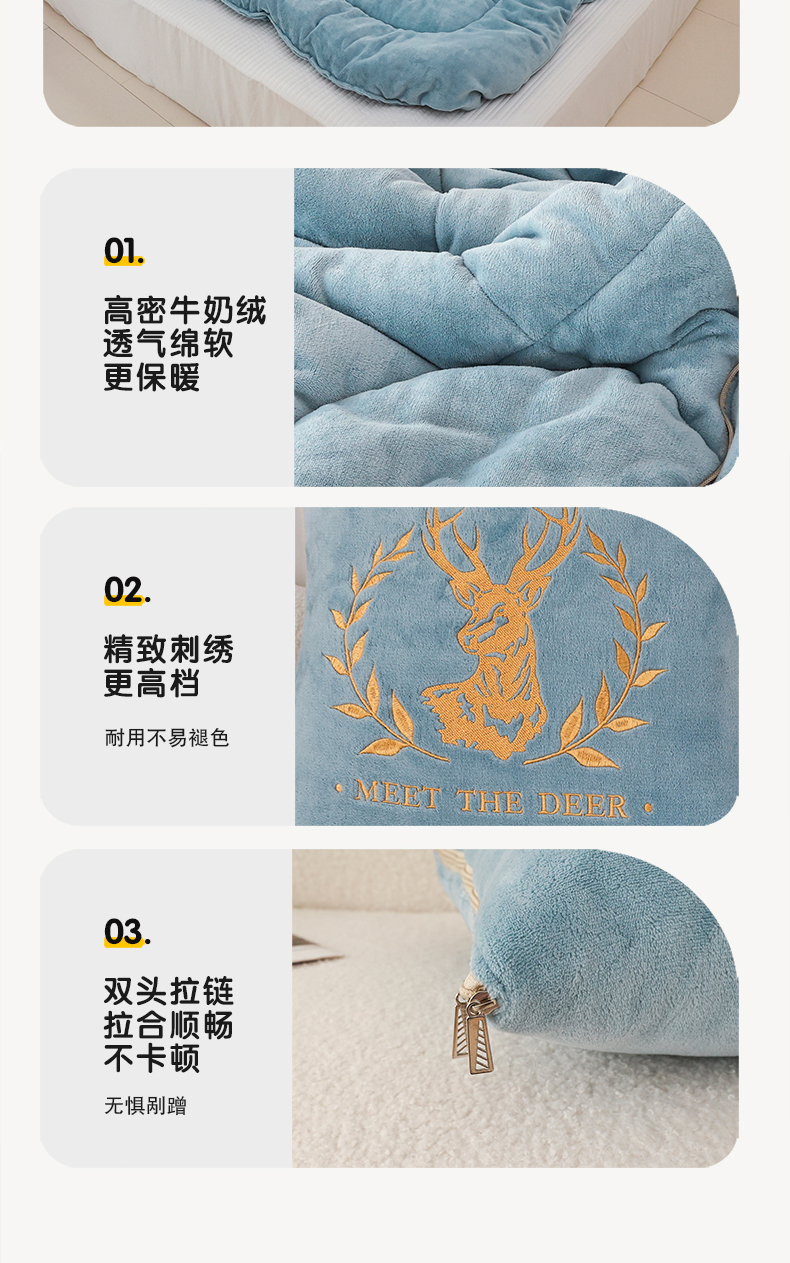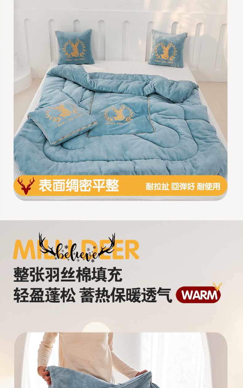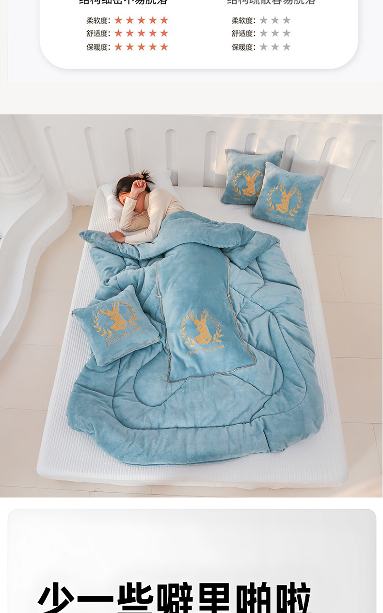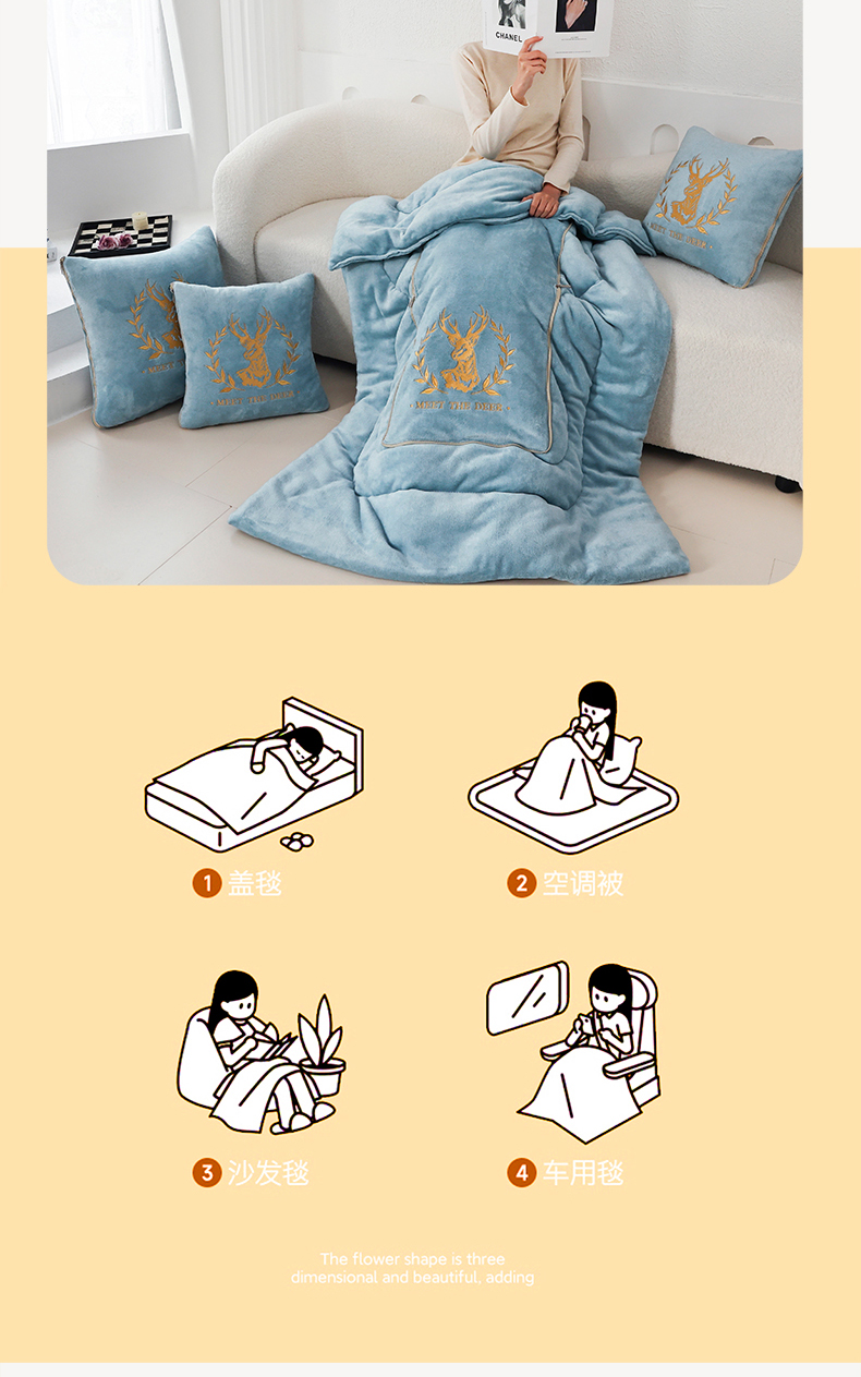 商品名称:番茄+ 2025新款牛奶绒抱枕被-有鹿亦有路系列 晴山蓝