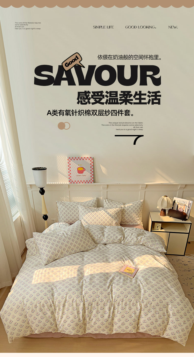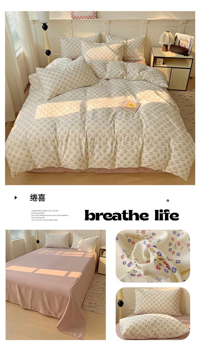 当前位置: 91家纺网 > 商品网购 > 床品套件 > 四件套 > 针织棉四件套 > 妖妖家纺 2025新款有氧针织棉双层纱四件套 绻喜