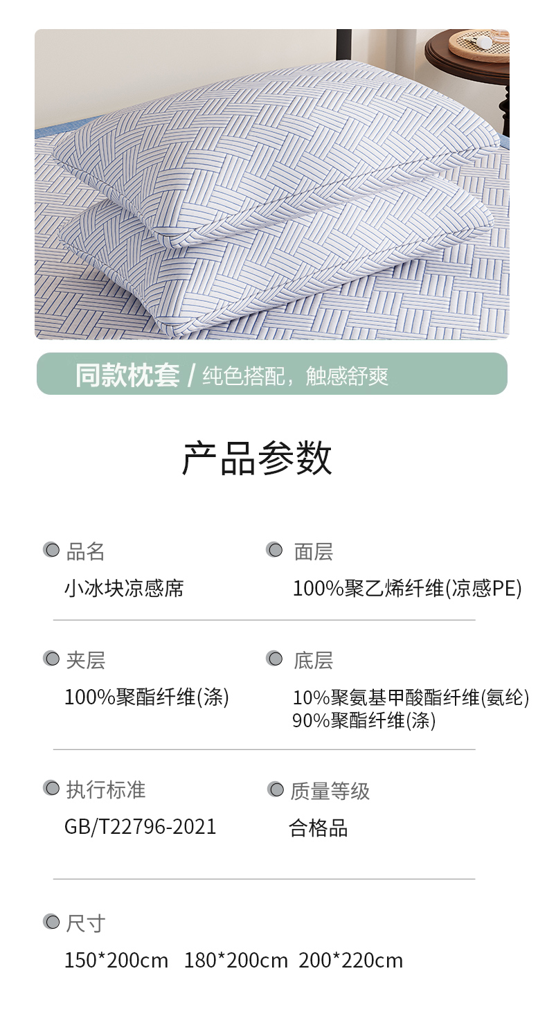 (总)野马寝具跨境电商专供 2025新款高分子冰感垫软凉席,斜方格,正方格
