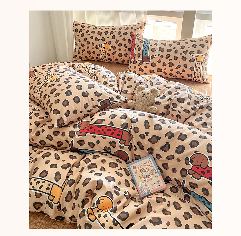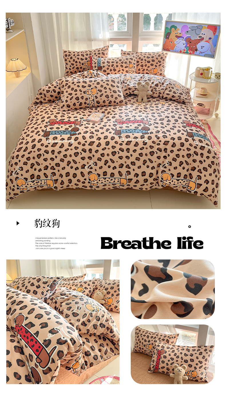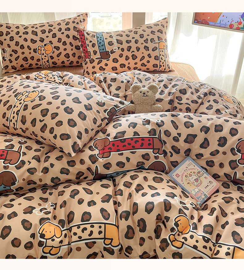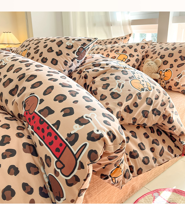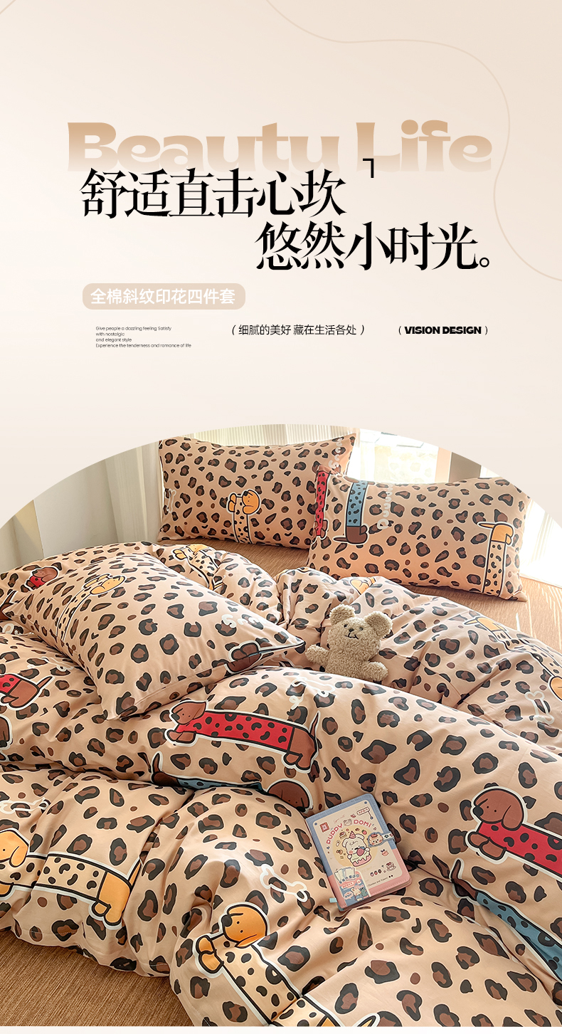 吉象家纺 2025新款全棉斜纹印花四件套 豹纹狗