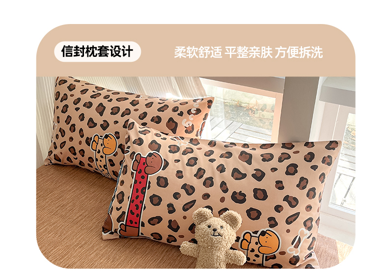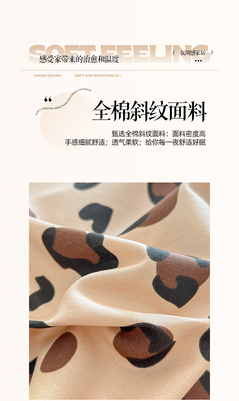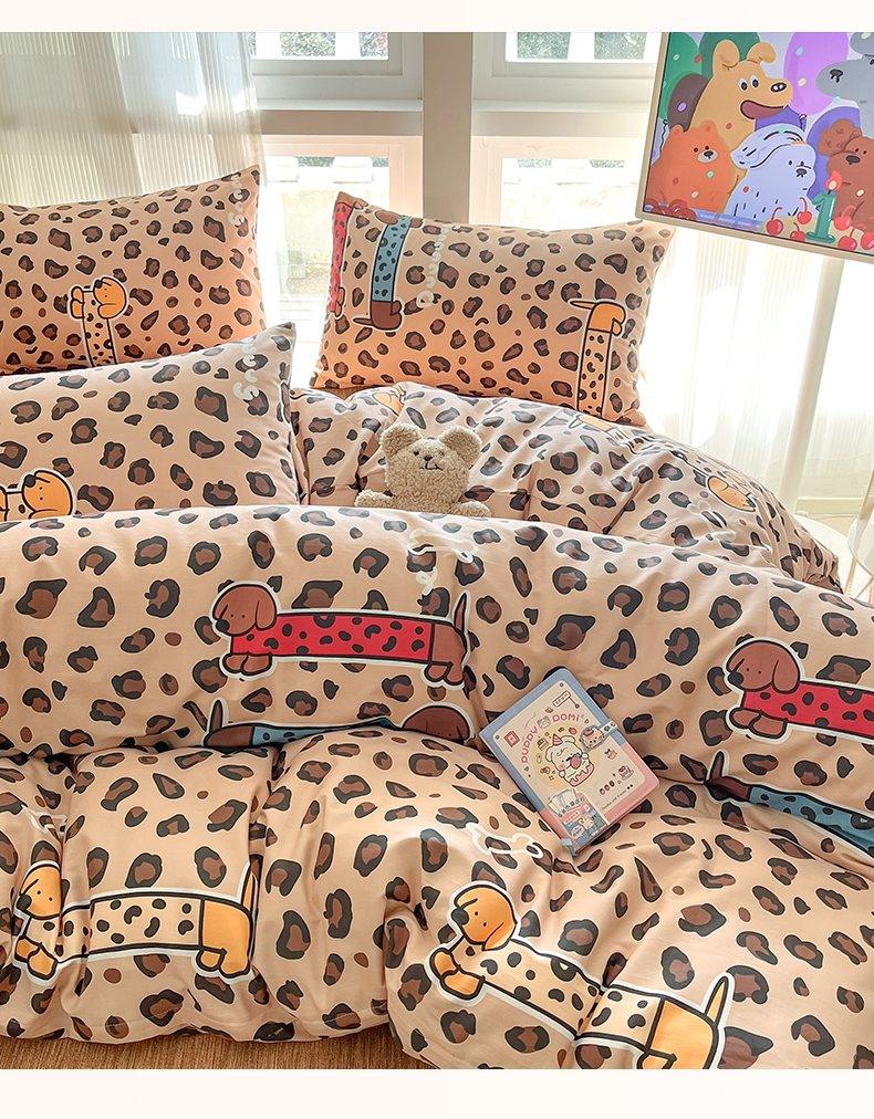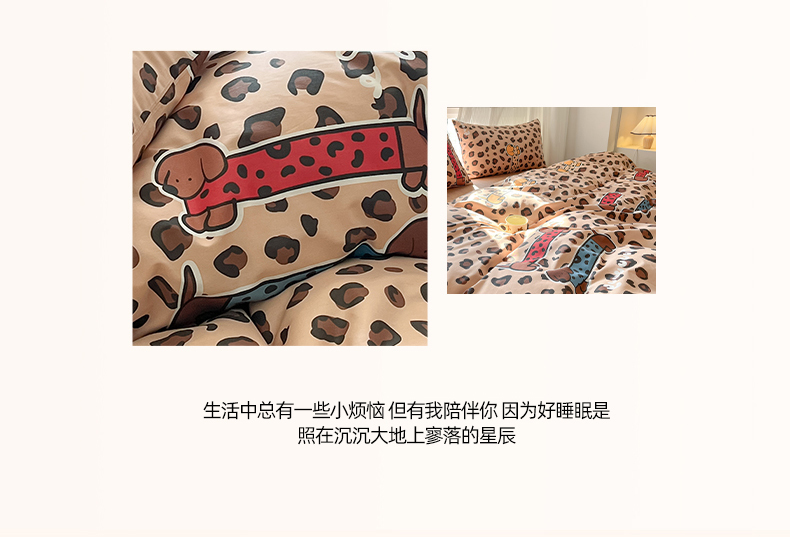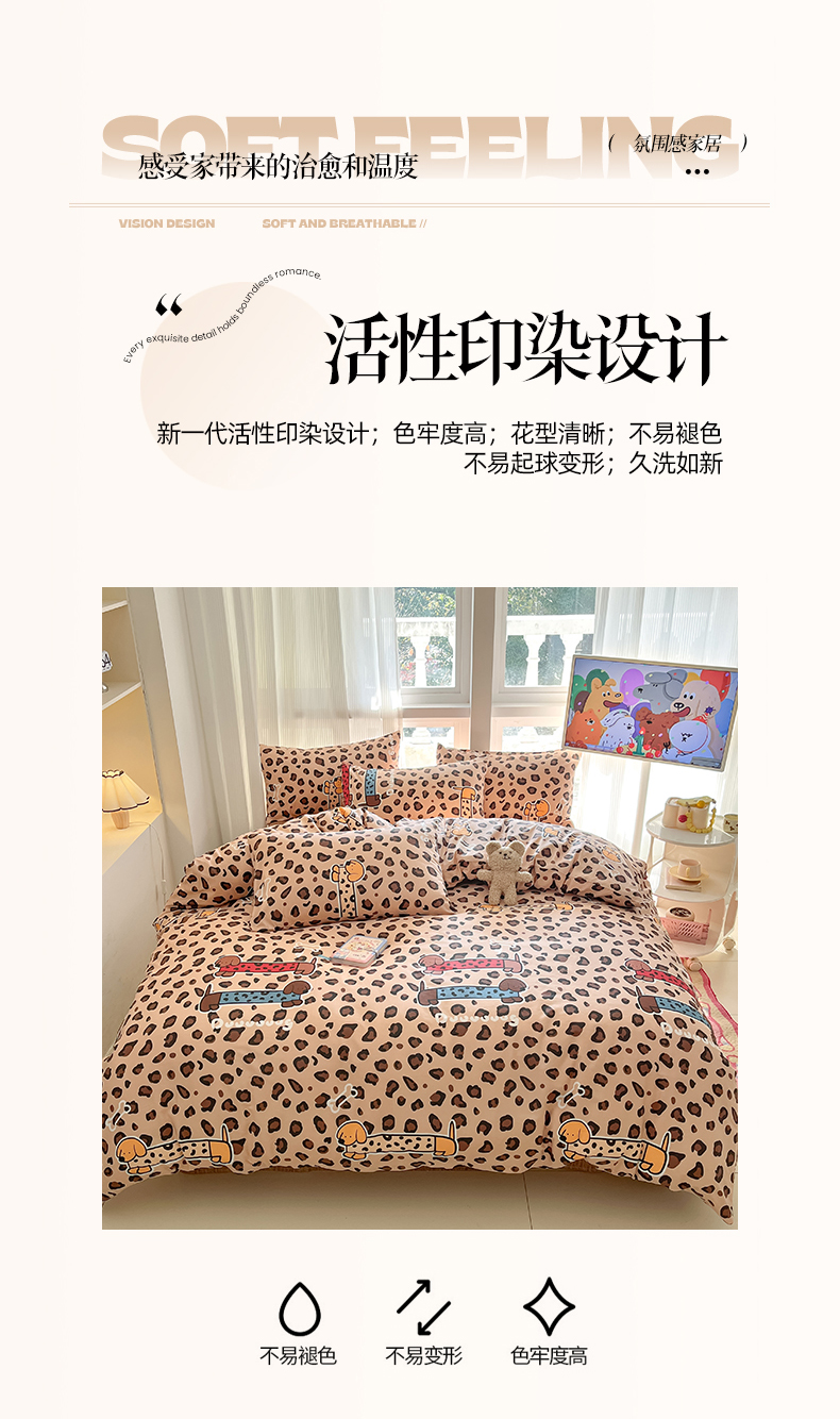 吉象家纺 2025新款全棉斜纹印花四件套 豹纹狗