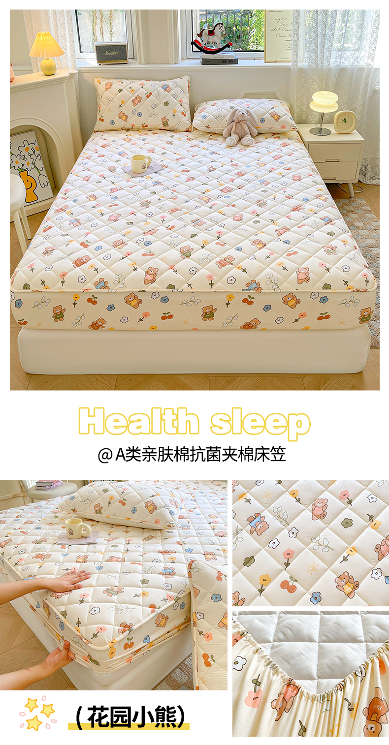 (总)居眠 2025新款A类水洗棉印花夹棉床笠,爱心小熊,波点南瓜,搞怪派对,花园小熊,快乐小汪,萌宠小兔,奇幻兔兔,情系花兔,郁金香紫,字母小狗