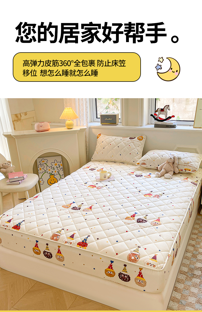 商品名称:(总)居眠 2025新款A类亲肤棉抗菌印花夹棉床笠