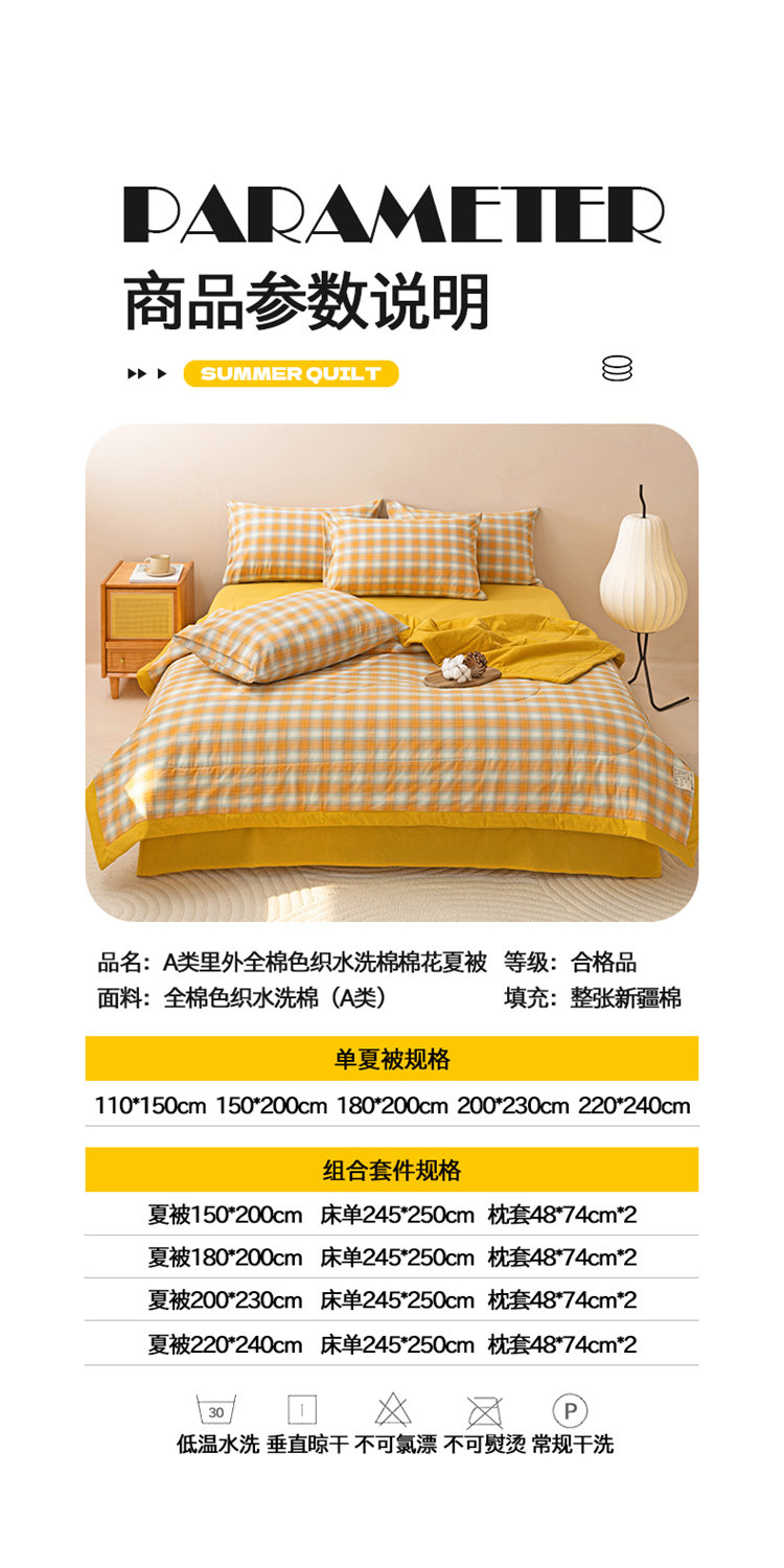 2025新款a类里外全棉色织水洗棉棉花夏被 被子被芯 沐夏
