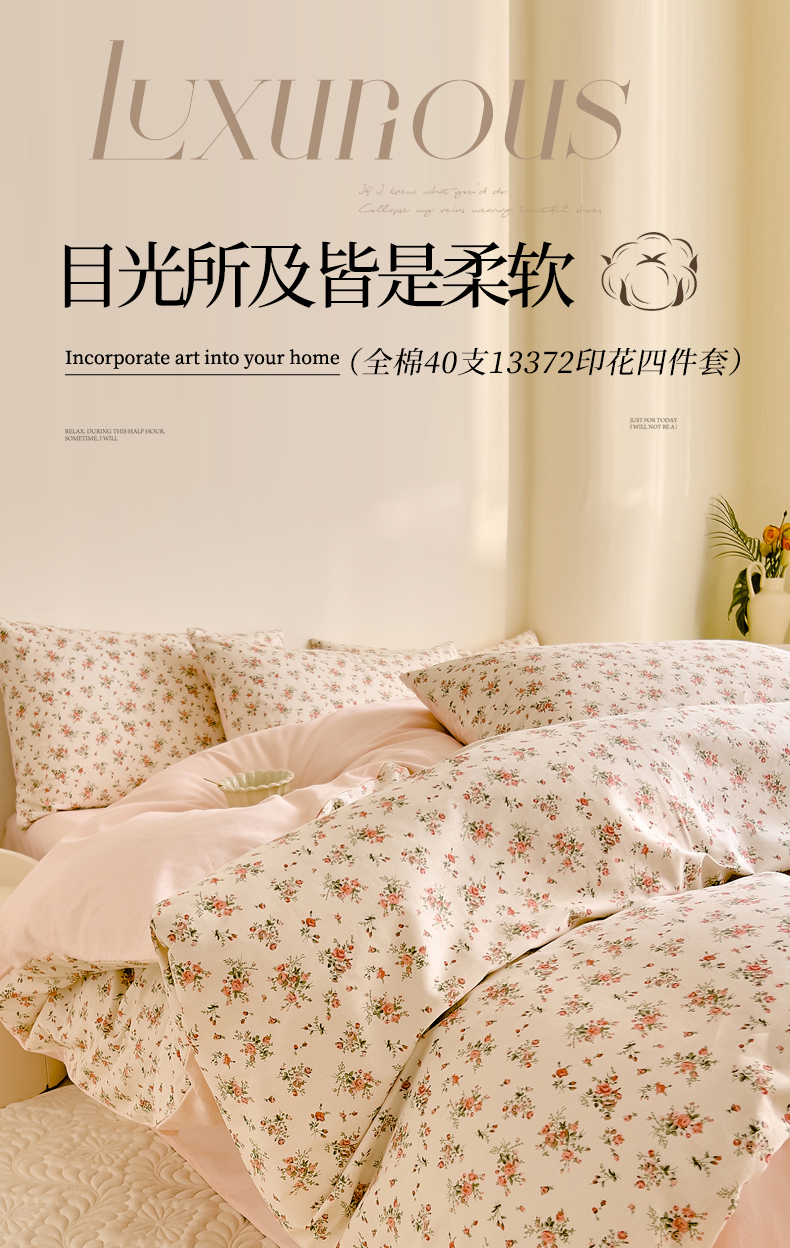 当前位置: 91家纺网 > 商品网购 > 床品套件 > 四件套 > 全棉普通四件套 > DoDo 兜兜 【 可定制尺寸】2025新款全棉40支13372印花四件套 桃夭