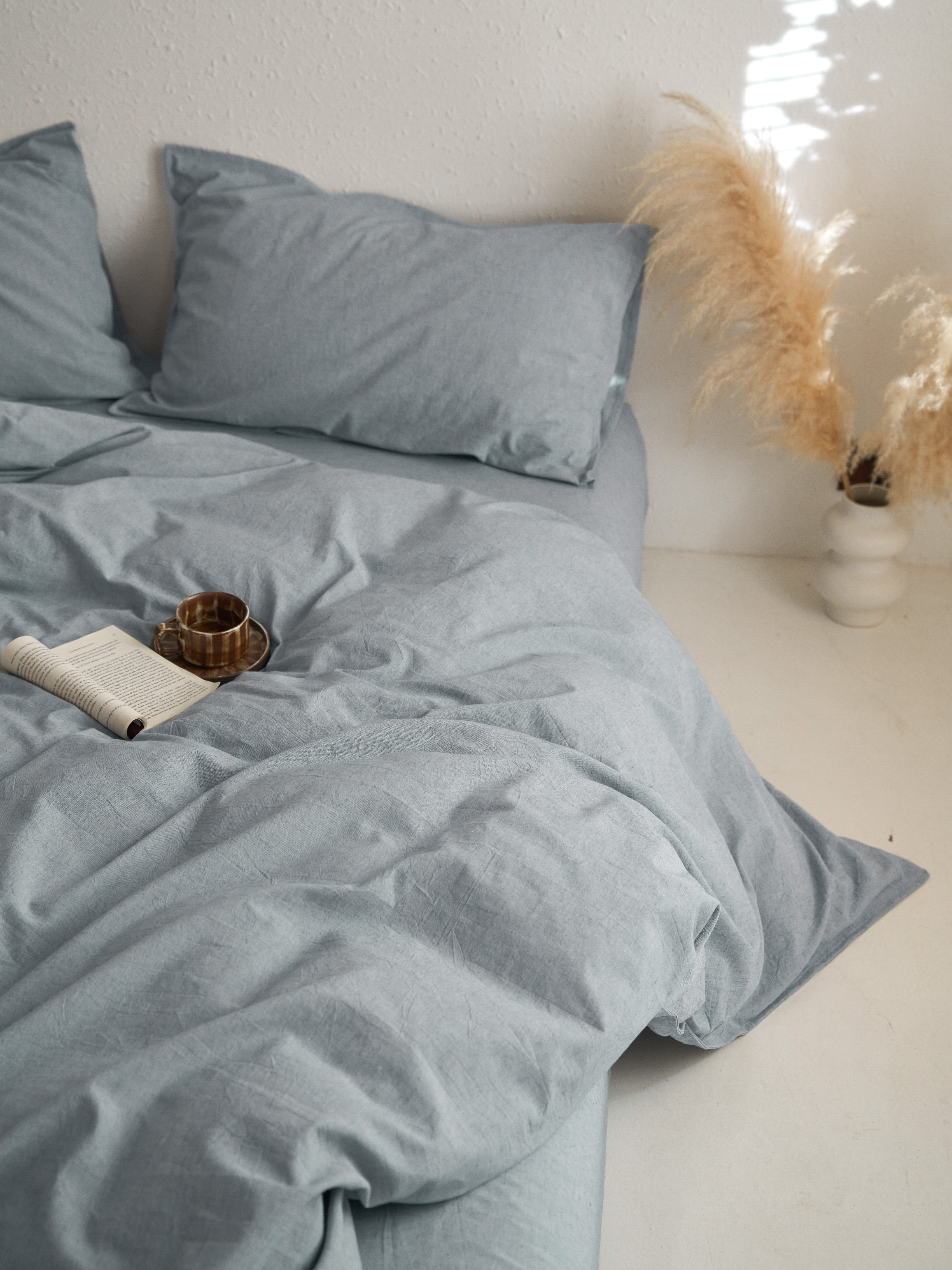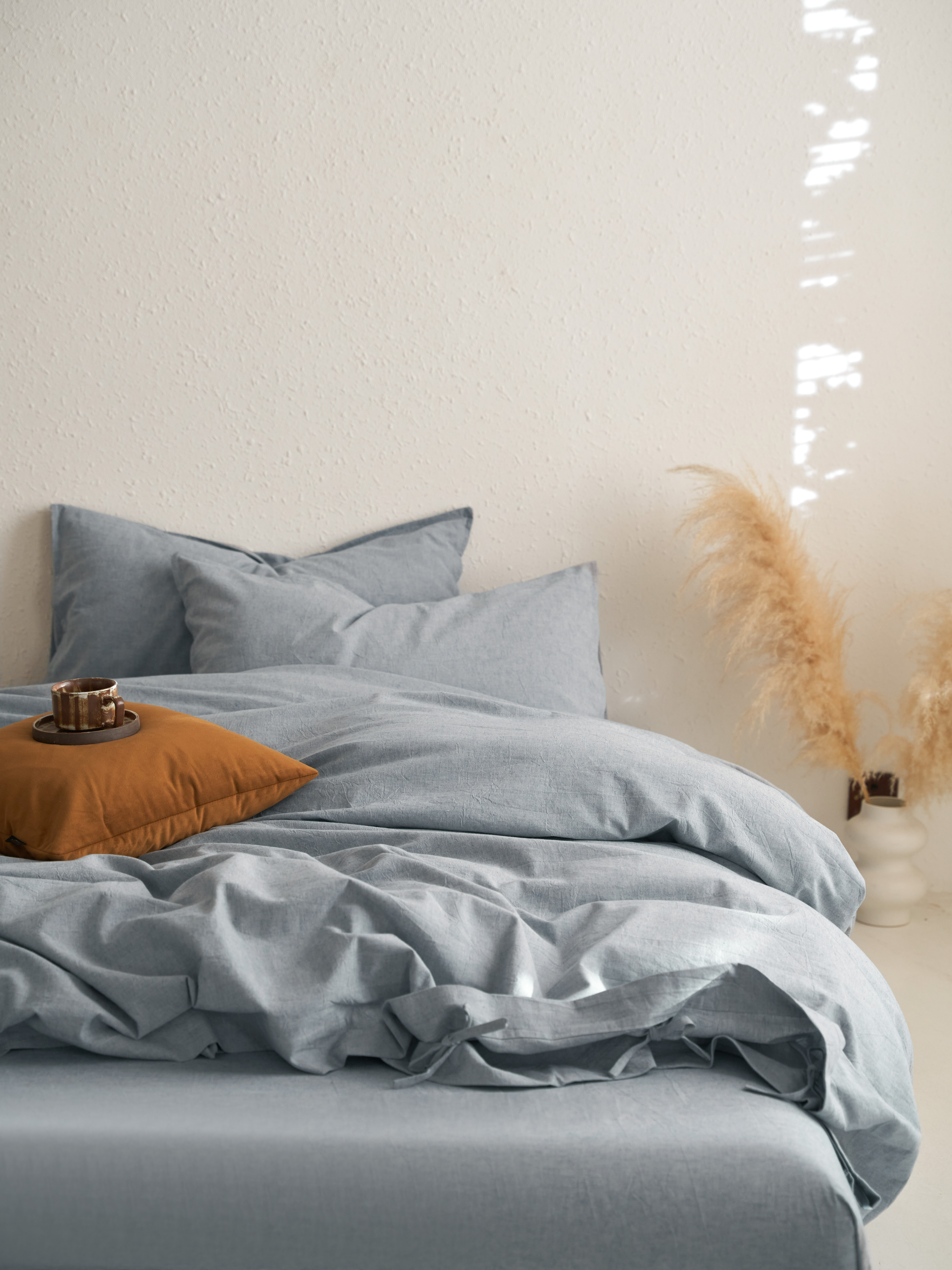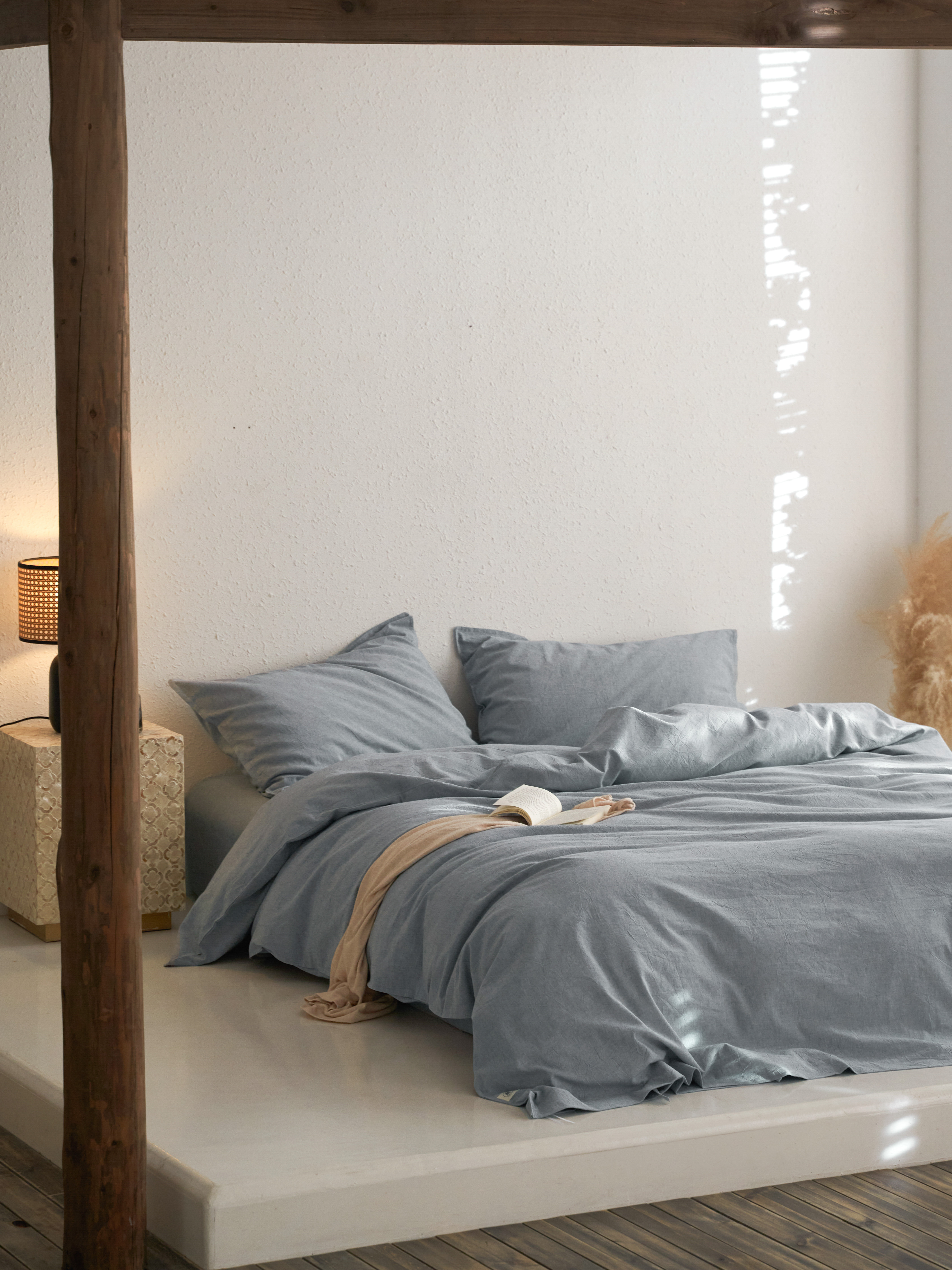 简家居2025新款20%亚麻80%棉混纺四件套-无味 谧蓝