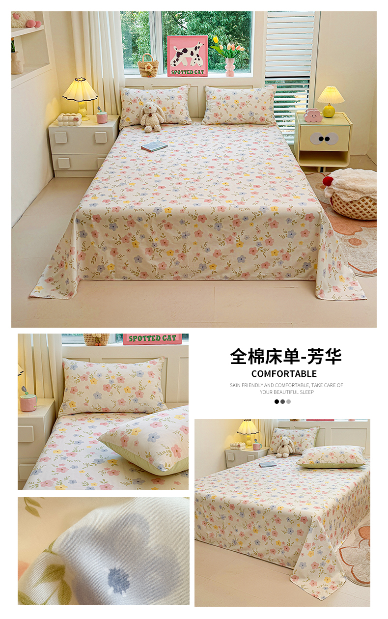 • 91家纺网 家纺一手货源 找家纺 雯豆2025春夏新款全棉床单三件套纯棉床罩小清新印花床单 全棉床单-芳华