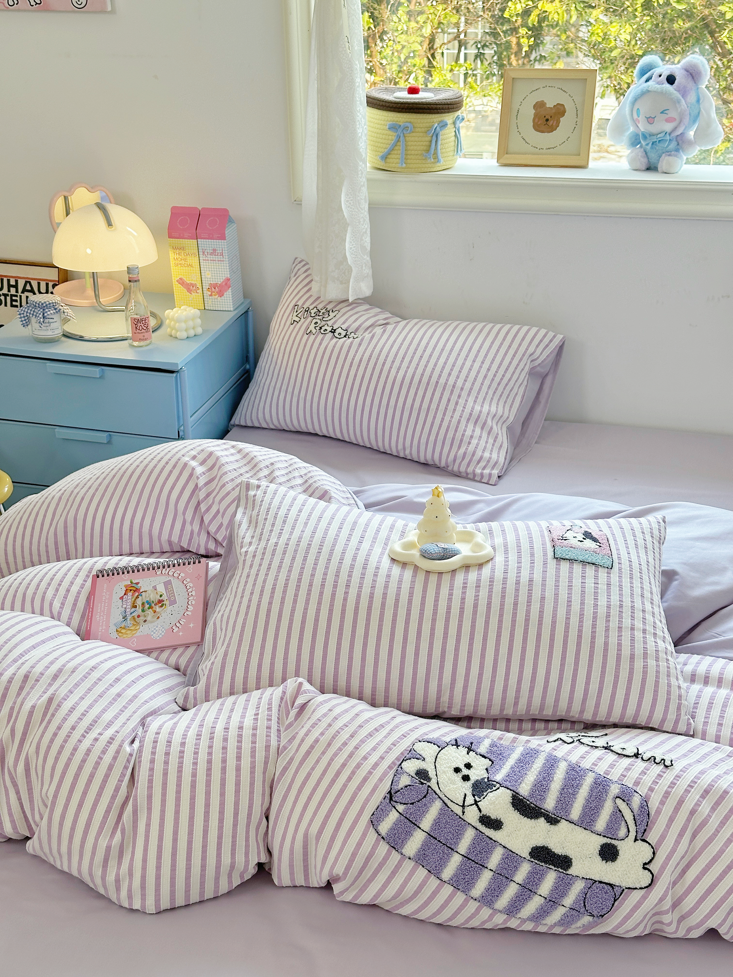商品名称:珺柔家纺 2025新款全棉水洗棉提花毛巾绣四件套 百变小猫